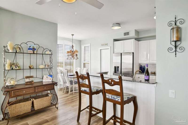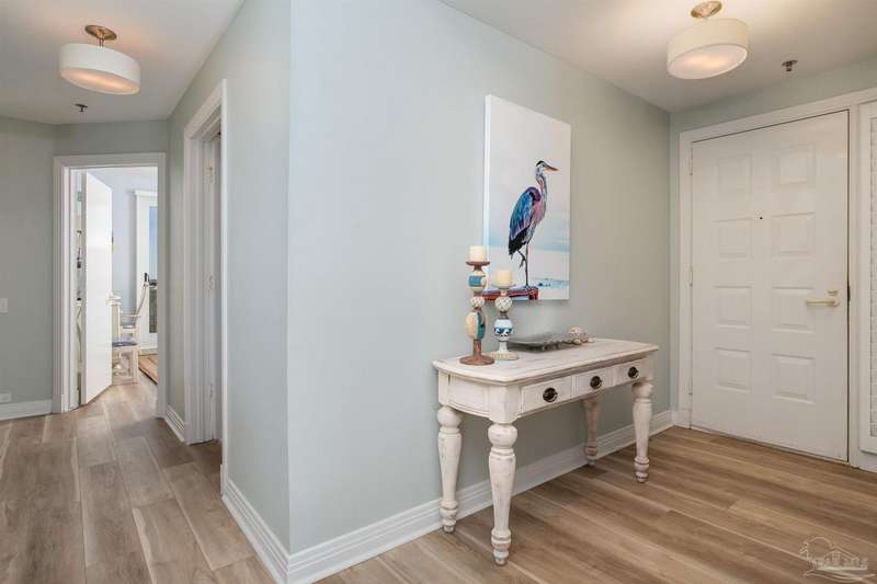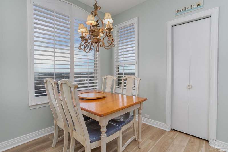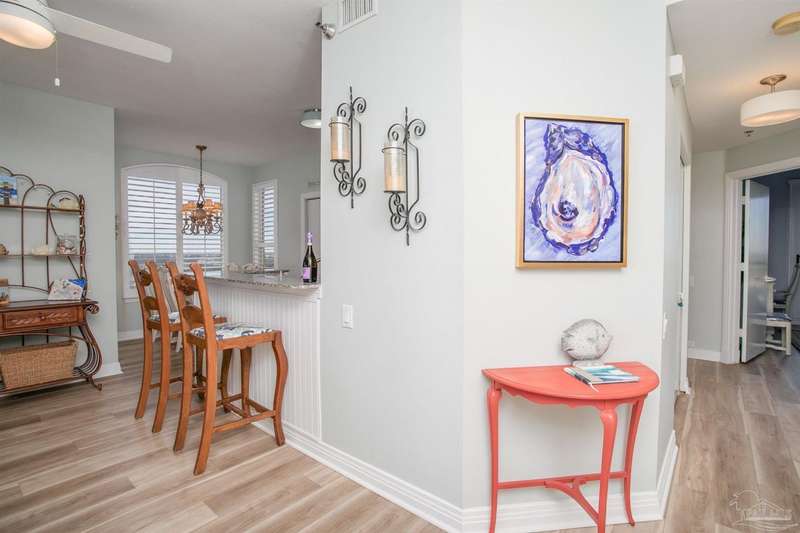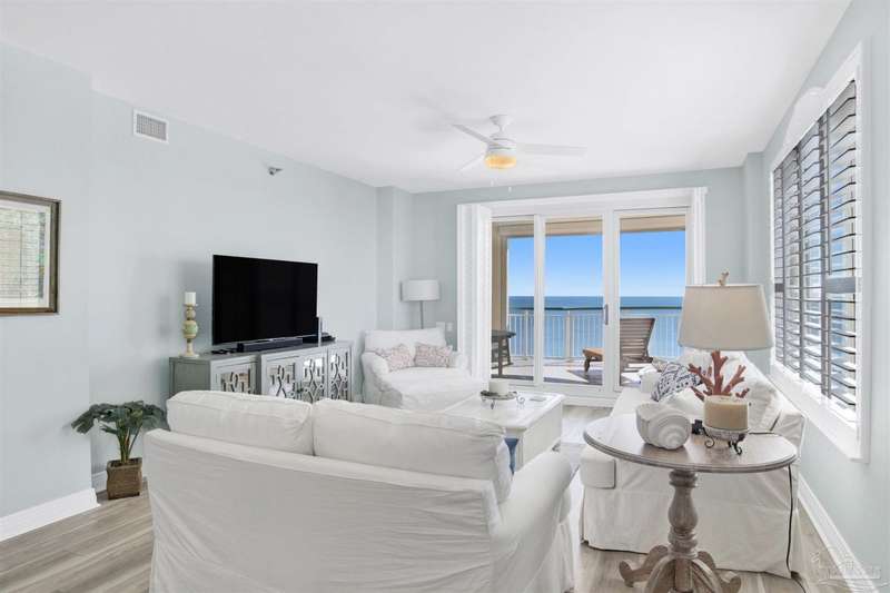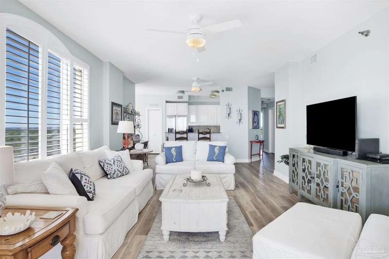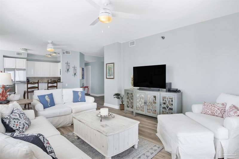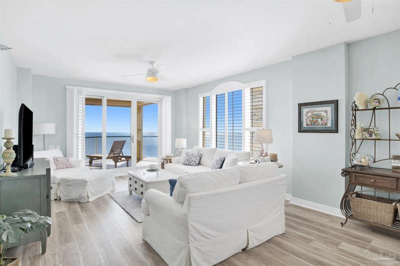 HIGHLY SOUGHT-AFTER 3-BEDROOM RESIDENCE IN BEACH COLONY TOWER WITH CURVED BALCONY AND SWEEPING GULF VIEWS! The Tower building is situated forward of the East Tower offering spectacular Gulf Views! This immaculate 1 OWNER 3 bedroom residence on the 10th floor is move-in ready! Features include beautiful wood look luxury vinyl plank flooring throughout, freshly painted in modern coastal/neutral tones and decorated in on-trend coastal furnishings. This 1,756 sf. floor plan has a fabulous open design with plenty of room for the whole family. Enjoy panoramic views from the eat-in breakfast nook in the kitchen as well as additional seating at the breakfast bar. The large Gulf-front primary bedroom has sliding doors leading to the covered balcony as well as a large primary bathroom with double vanity, walk-in shower and amazing views from the picture window above the soaking tub! Fabulous floor plan has guest bedrooms away from the primary living areas allowing for extra privacy! Enjoy conveniences like full laundry room and spacious owner storage closet to store all your beach chairs, fishing gear, and more. This is a perfect vacation home, investment property or primary residence. All residences in the tower building have hurricane shutters on the balcony plus heavy duty sliding glass doors in the living room and primary bedroom to protect your investment. BEACH COLONY IS A GATED COMMUNITY WITH EXCEPTIONAL ON-SITE MANAGEMENT AND ONE OF THE BEST AMENITY PACKAGES ON THE ISLAND WITH INDOOR HEATED POOL, 2 OUTDOOR POOLS, TENNIS COURTS, STATE-OF-THE-ART FITNESS CENTER, SECURITY-CODED ELEVATORS, COMMUNITY ROOMS AND AMPLE PARKING FOR OWNERS AND GUESTS. THIS GEM WON'T LAST LONG!