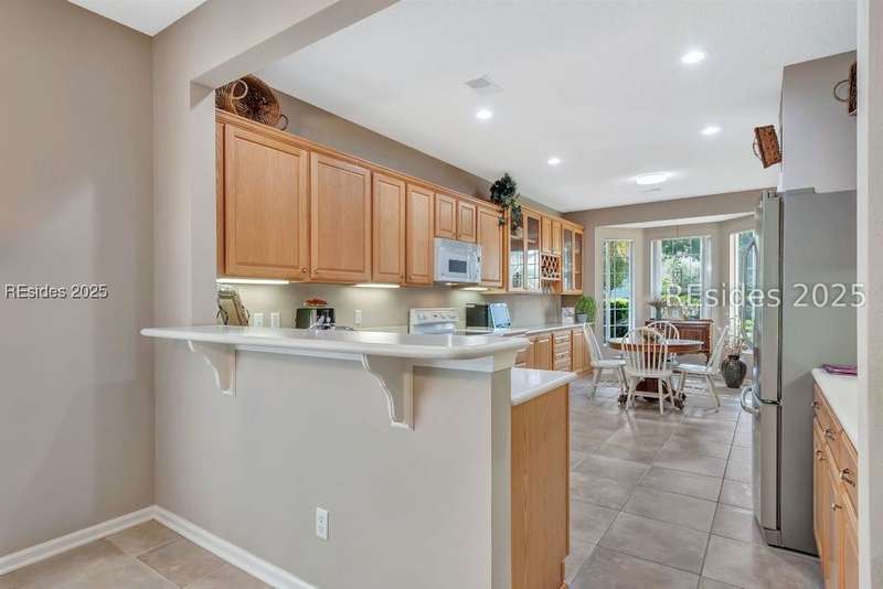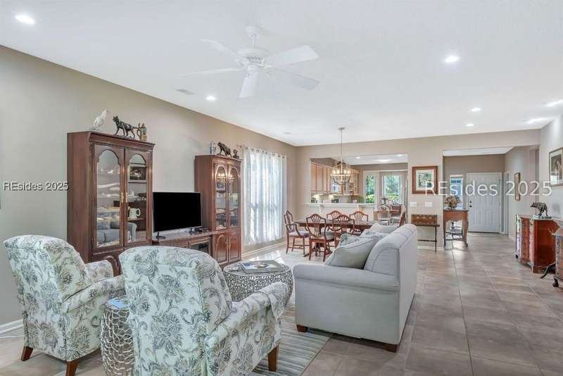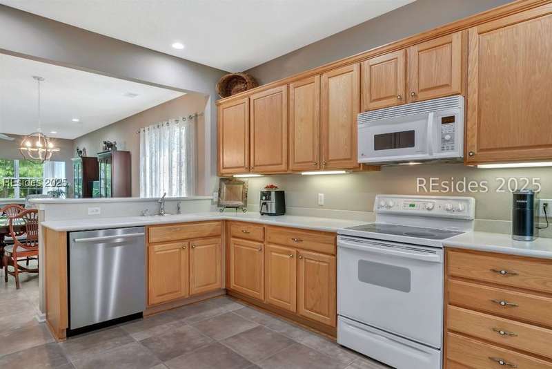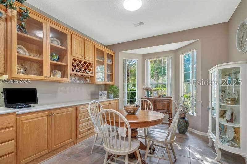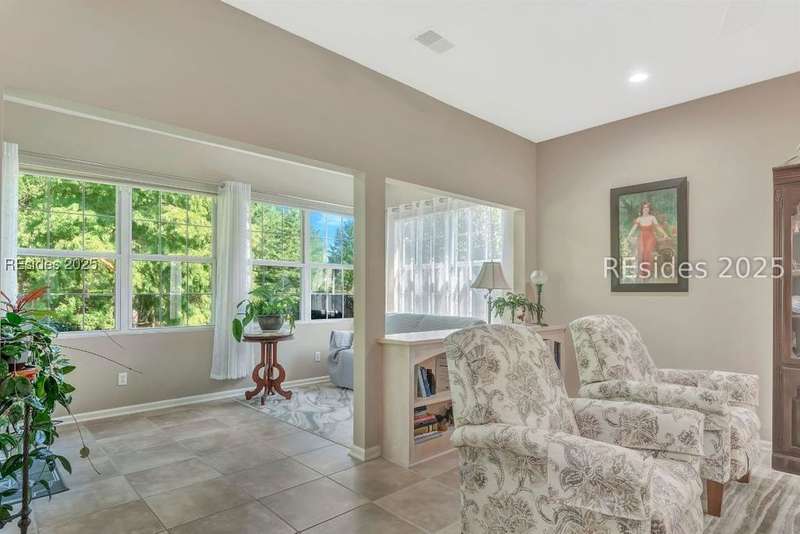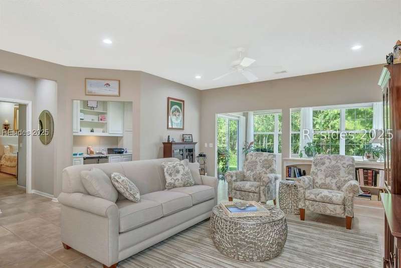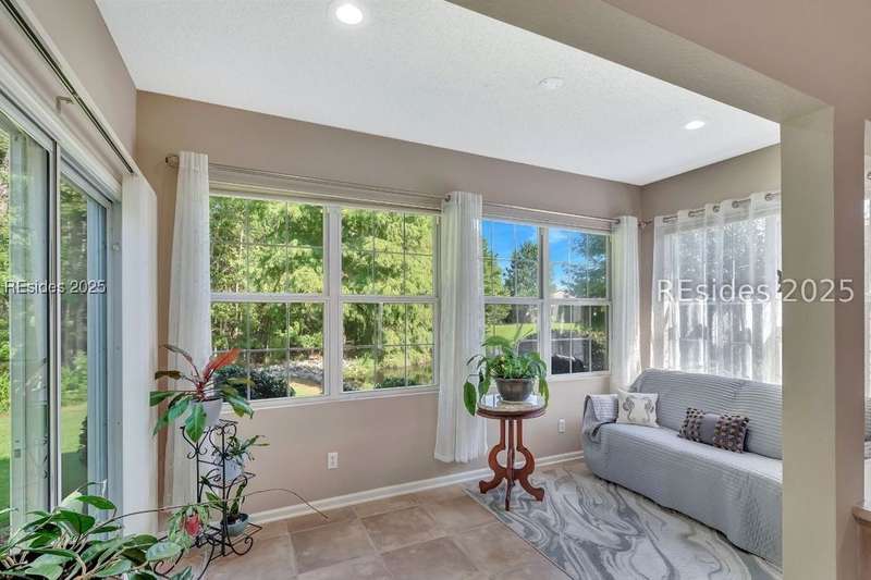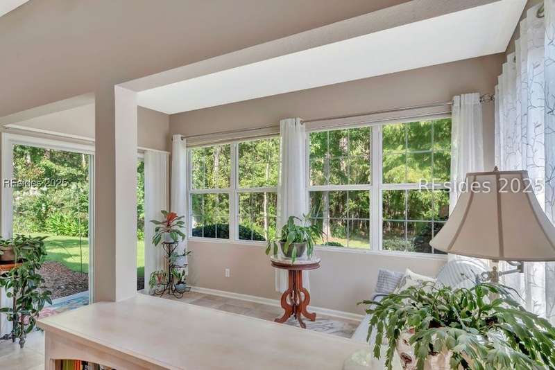 Serene, private, tranquil describes the view from the Carolina room, Primary bedroom and den plus patio. This 2-bedroom, 2 bath Pelican not only offers space but peaceful surroundings. The large eat in kitchen boasts of extra cabinets not often found for all the platters and dishes plus a wire rack. The bay window in the eating area is a bonus. The great room features a bank of bookshelves adding a touch of home. The den also features many built-in including desks and shelves. A charming window seat is also featured. The primary bedroom has a bonus of an extra-large closet. Its a must see. The extended garage is another bonus. This is perfect for anyone wanting the in Sun City lifestyle with the numerous events and amenities offer. A wonderful house to call home!