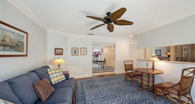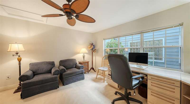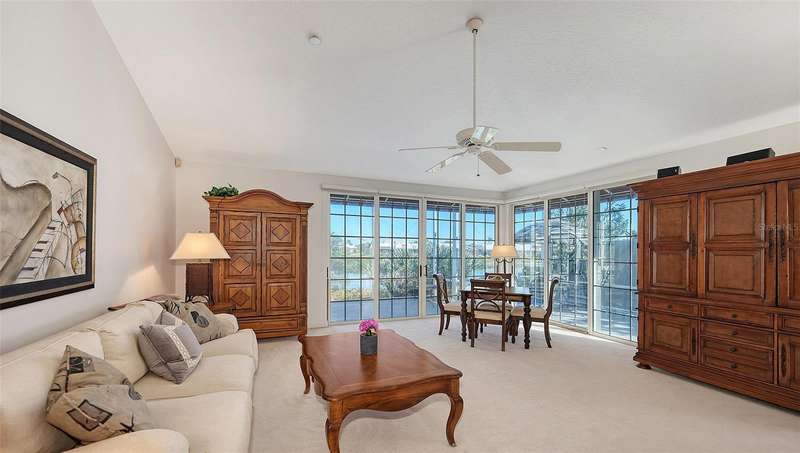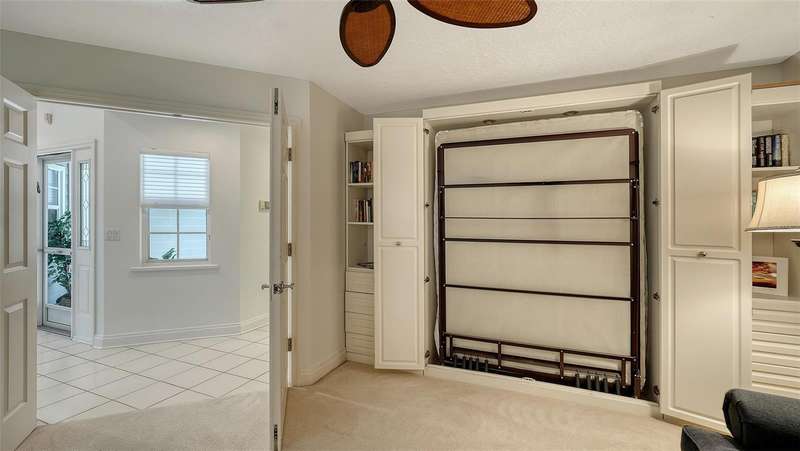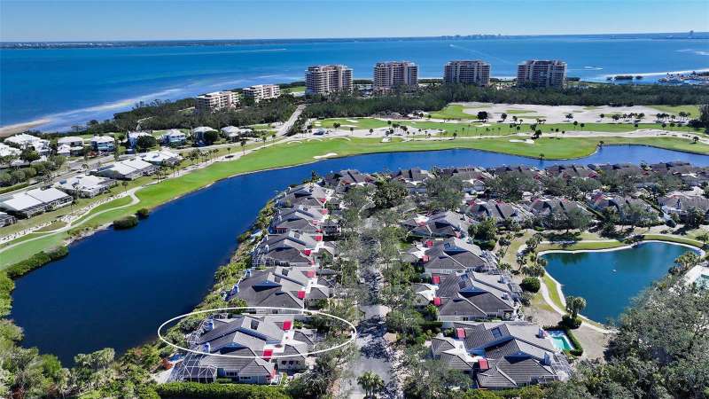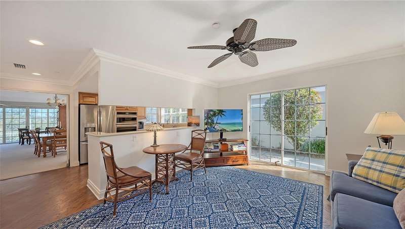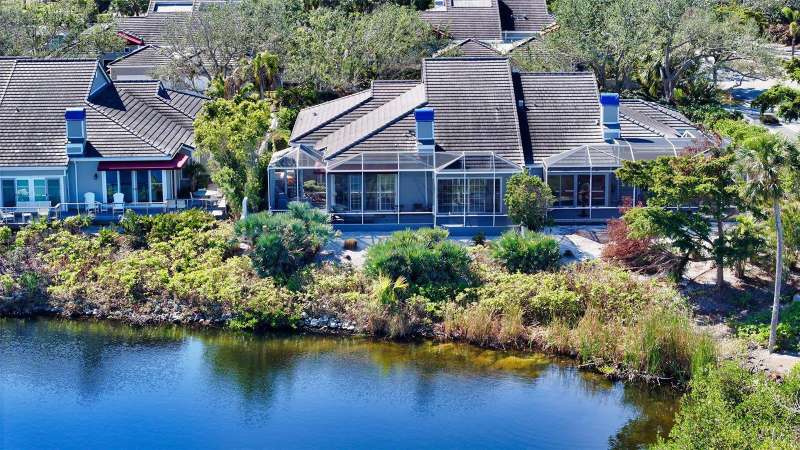 This stunning three-bedroom, three-bath villa offers a serene waterfront retreat in the desirable Winding Oaks community of Longboat Key Club. With a spacious open floor plan spanning 2,608 Sf, the maintenance-free home is bathed in natural light and features vaulted ceilings that enhance its airy feel. The inviting living/dining room combo seamlessly connects to a screened-in back deck, perfect for enjoying picturesque water views. The kitchen is a chef’s dream, equipped with a gas range, large refrigerator with ice maker, built-in oven, custom wood cabinetry, and ample counter space for culinary creations. A cozy den adjacent to the kitchen provides a perfect gathering spot for family and friends. The thoughtfully designed layout ensures privacy among the three bedrooms, with one versatile space featuring a Murphy bed ideal for an office or guest room. Residents enjoy exclusive access to the Bay Isles Beach Club and 24-hour security, all while being conveniently located near shopping, dining, and the luxurious St. Regis Longboat Key Resort. Importantly, the villa at Winding Oaks has proven resilient, having not sustained any damage from recent hurricanes.