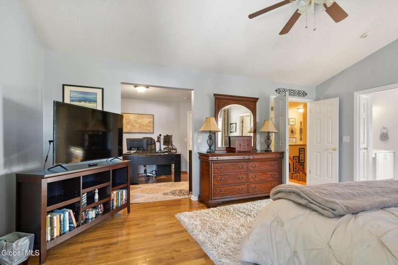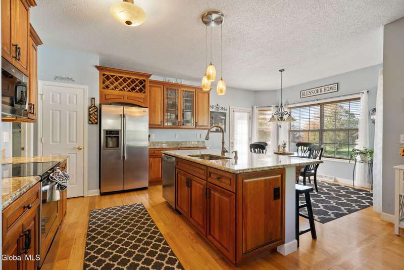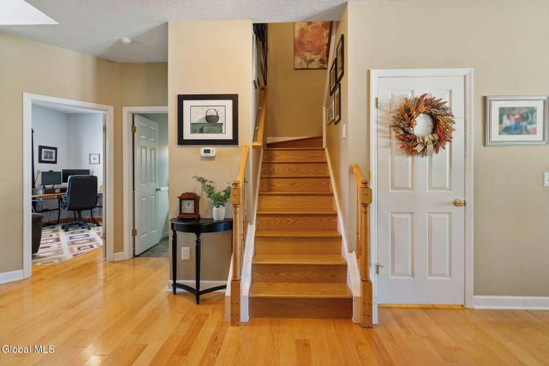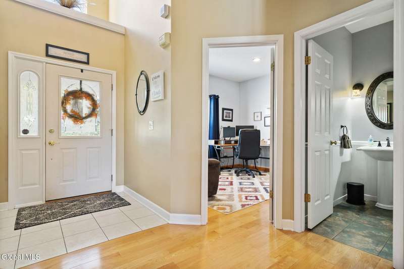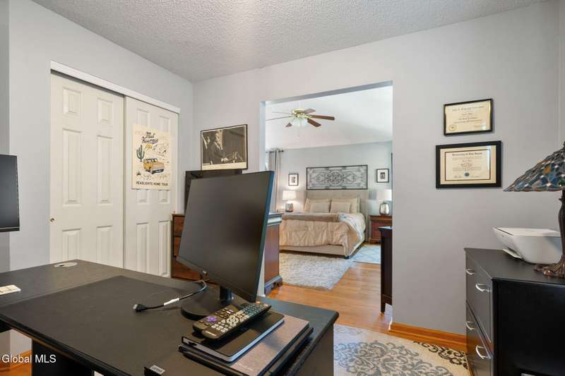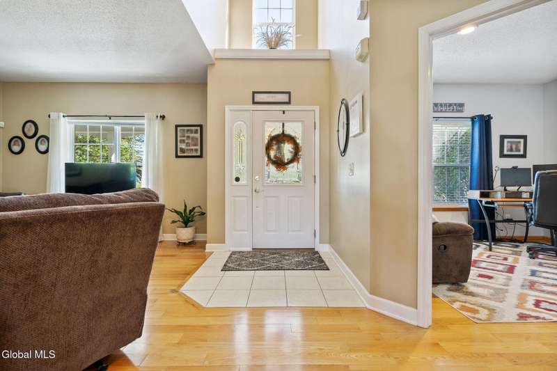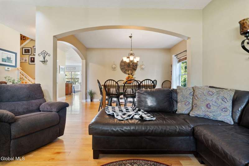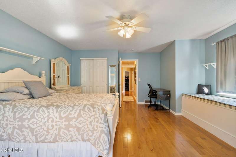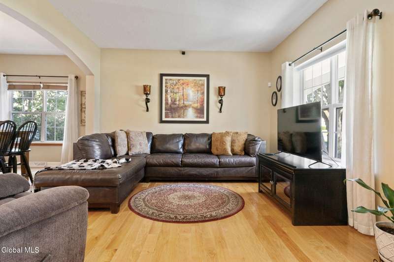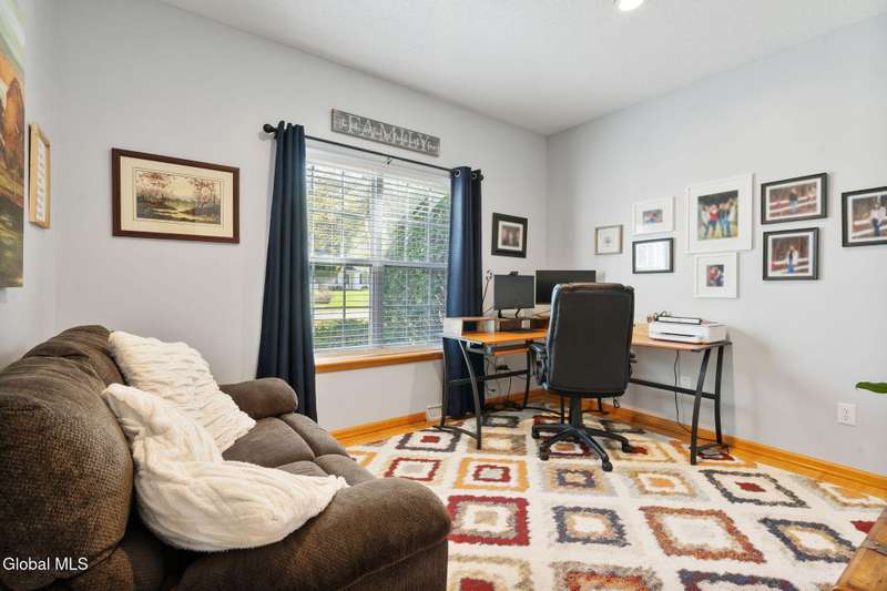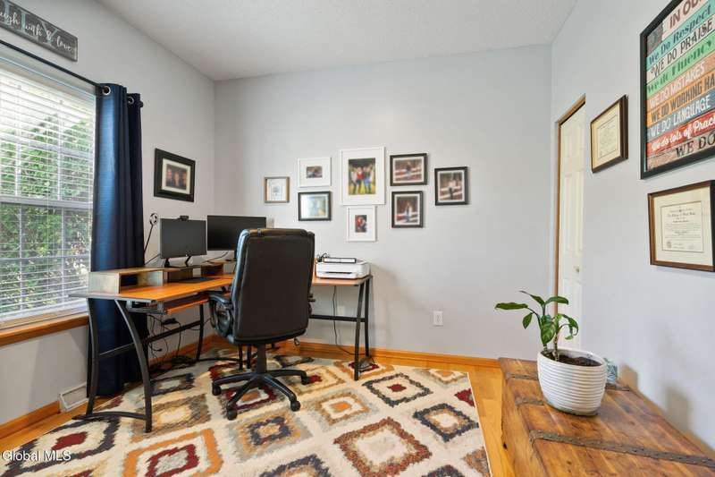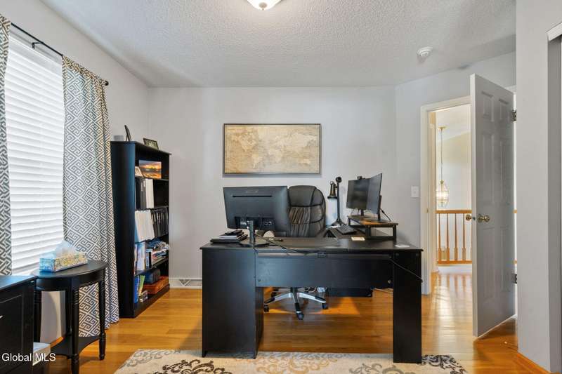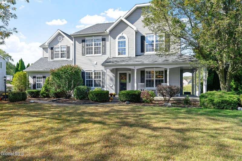 Situated in the highly desirable Somerset Neighborhood is this meticulously maintained 5 bedrooms, 2.5 bath Colonial. The spacious and versatile floor plan features a family room with gas fireplace, updated eat-in kitchen, all bathrooms, and hardwood floors throughout. The first-floor bedroom is currently used as a home office, offering a private and quiet workspace. Upstairs, the primary bedroom features an adjoining area currently used as an office that could easily be used as a cozy sitting room or home gym. One of the standout features is the large 5th bedroom, a true bonus space with endless potential as a guest room, media room, etc. Enjoy relaxing or entertaining on the wrap around porch or on the deck overlooking the backyard. Conveniently located to stores, restaurants and I-87 on ramps. Don't miss this opportunity to own this beautifully maintained home with plenty of room to live and work!