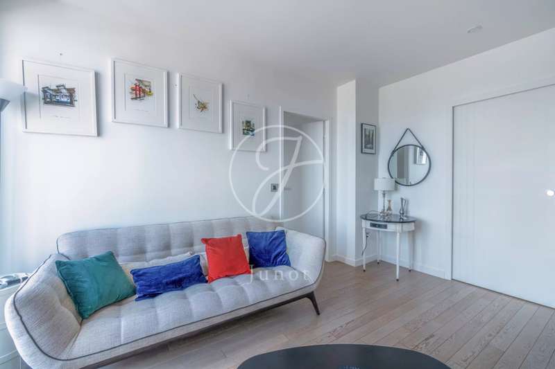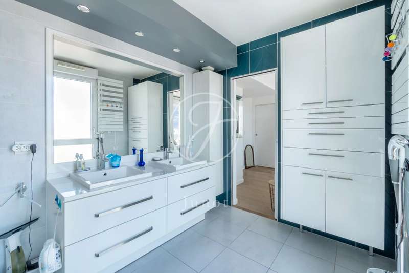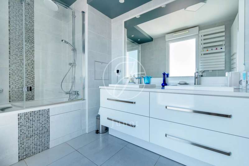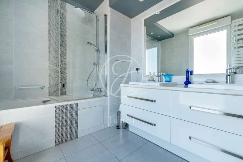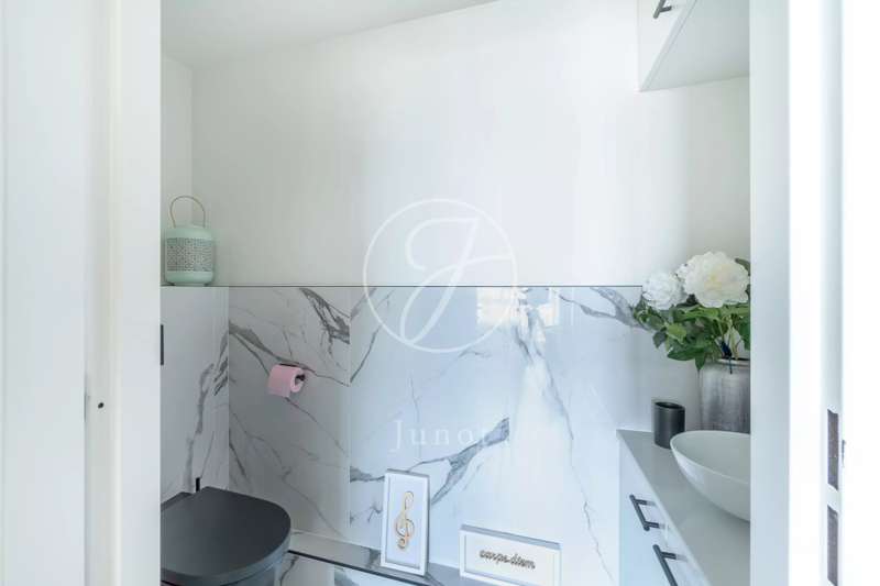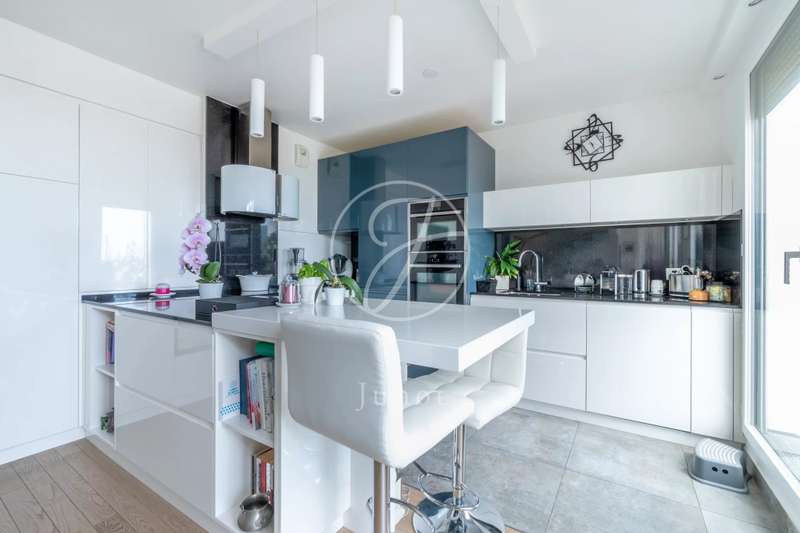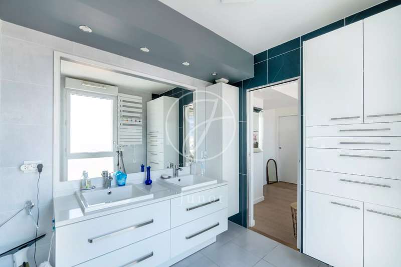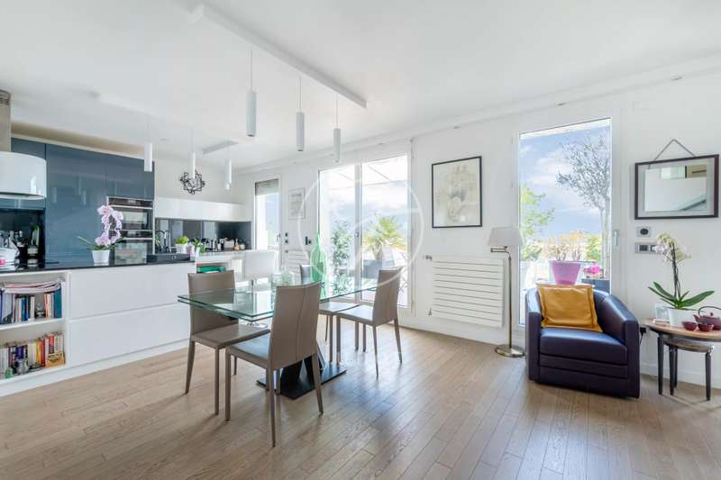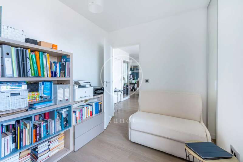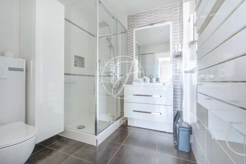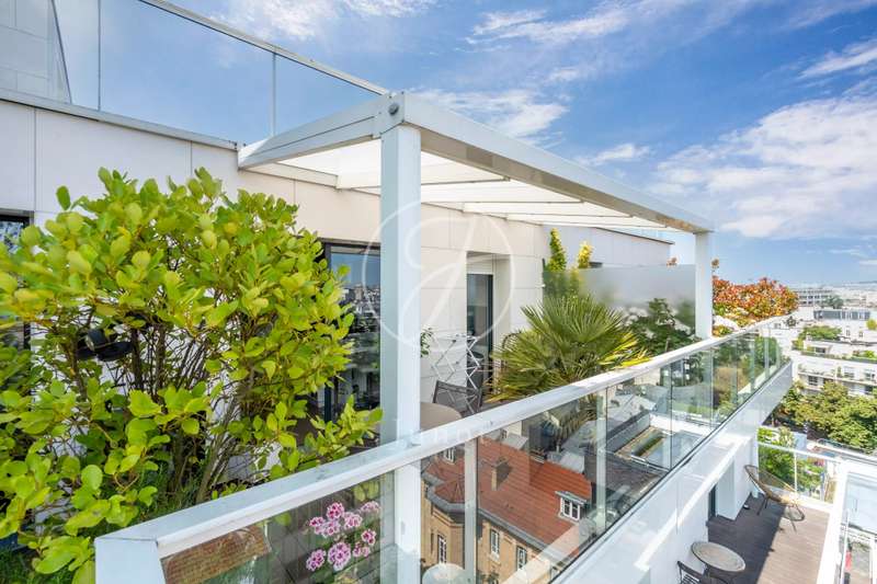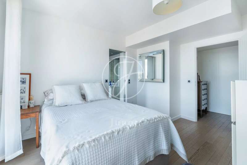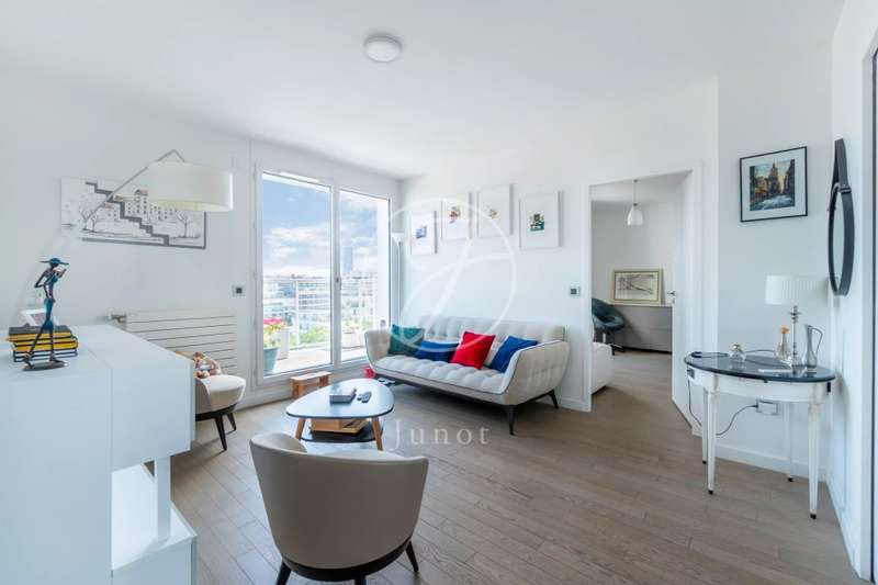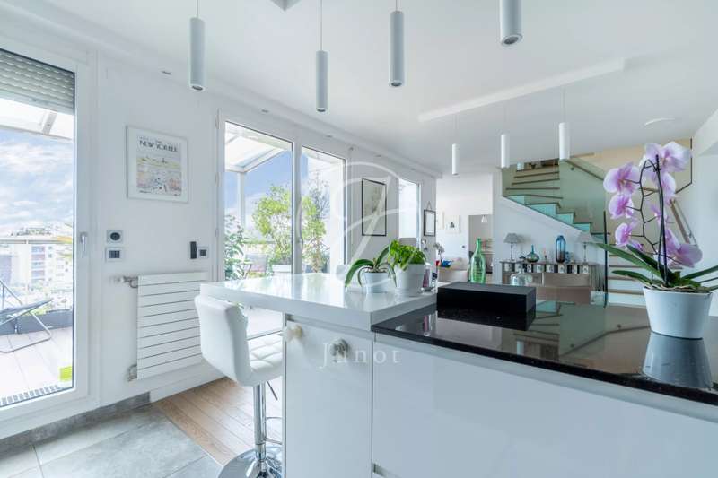 On the top two floors (7th and 8th), accessible by elevator, of a very recent building, lies a beautiful apartment with a terrace and open views. On the 7th floor, the reception area includes a living room and a fully fitted open-plan kitchen. A bedroom with its own shower room and toilet. The entire level opens directly onto a large 28sqm terrace offering breathtaking views of several iconic landmarks, such as the Eiffel Tower, Sacré-Cœur, Arc de Triomphe, and Les Invalides. On the 8th floor, accessible via an elegant interior staircase, there is a master suite with bathroom and walk-in closet. The property is in perfect condition and enjoys excellent natural light. A double parking space is available at an additional cost.