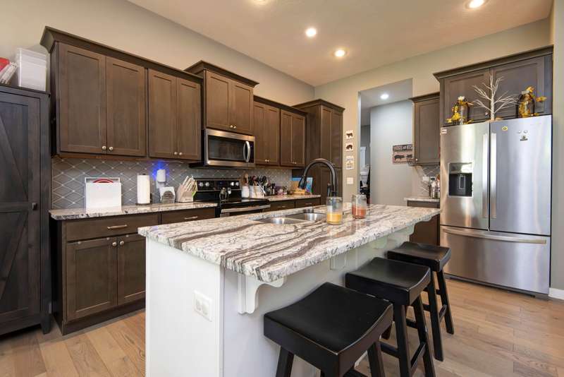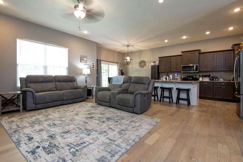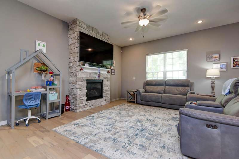 This stunning family home offers 4 spacious bedrooms and 2 full baths, all set on a desirable split floor plan that provides comfort and privacy. The open-concept living area features a cozy fireplace, perfect for relaxing or entertaining. The kitchen is a chef's dream with granite countertops, a large island, and plenty of cabinet space. Built in 2018, the home includes modern finishes and thoughtful design throughout.Situated on a corner lot with immaculate landscaping, the fenced backyard offers both beauty and privacy--ideal for outdoor living. A 3-car garage provides ample space for vehicles, storage, or hobbies.Don't miss this move-in ready gem in a sought-after neighborhood!