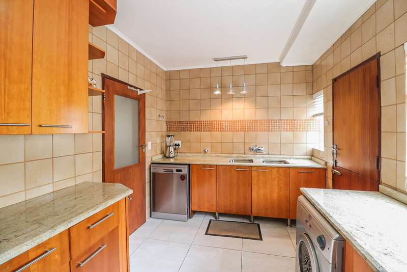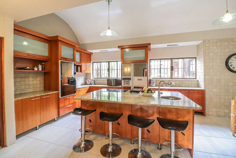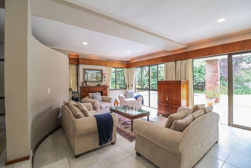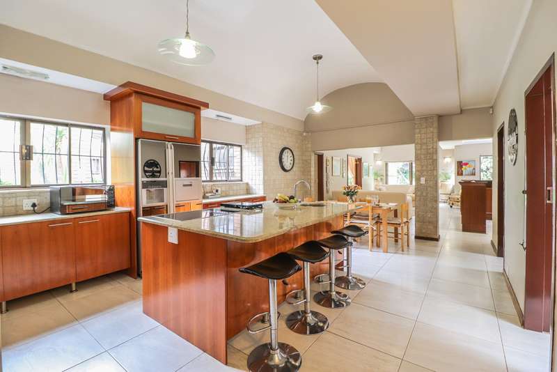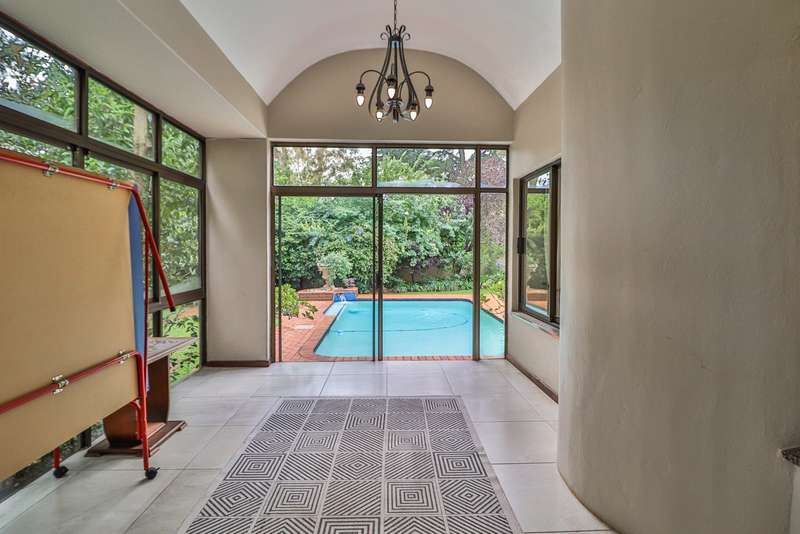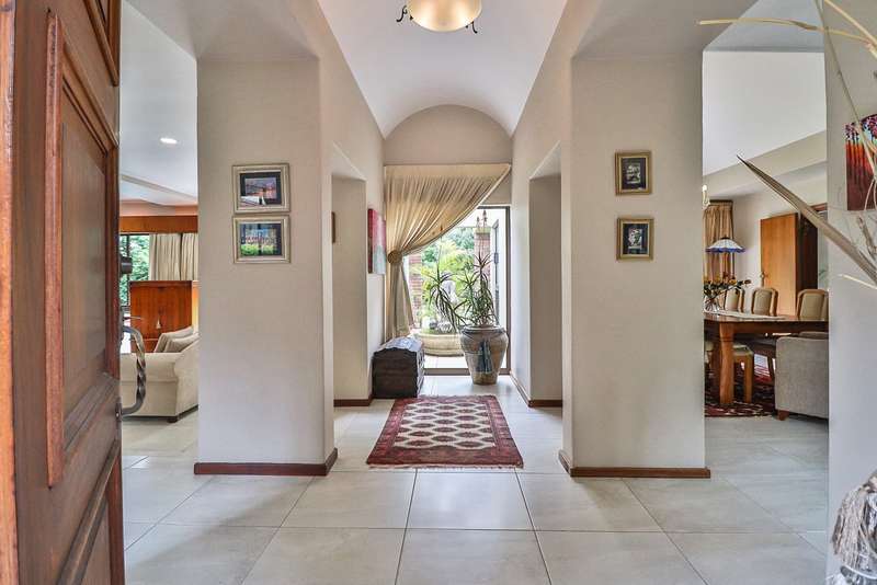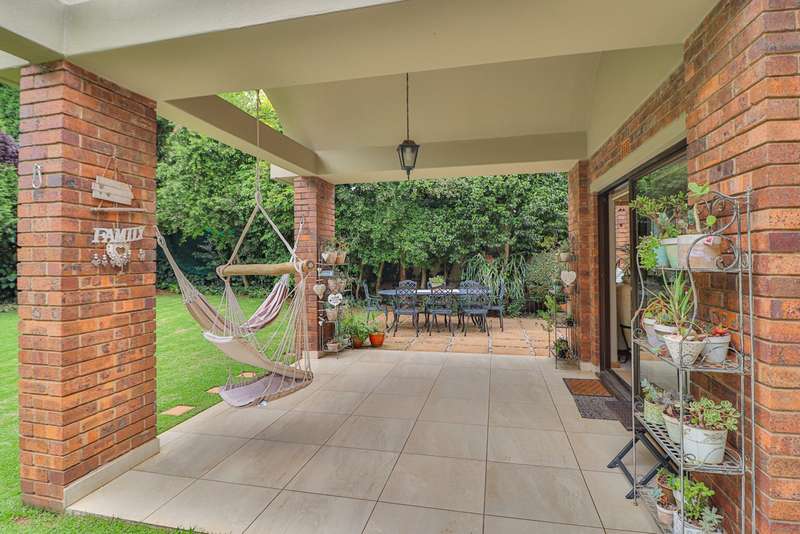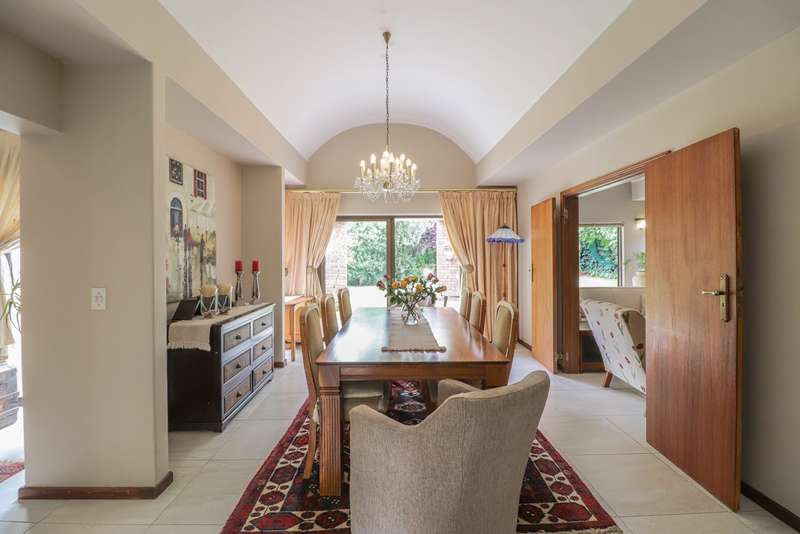 Nestled within the secured boomed-off street, tucked away in a cul-de-sac, this single-level family haven offers privacy, elegance, and warmth. Free-standing in its private oasis, the property is distinguished by its established garden that creates a serene backdrop to the sparkling pool, promising endless days of relaxation and outdoor enjoyment. As you step into the sunlit entrance hall, you are welcomed into a realm of sophistication and comfort. The guest toilet, and formal dining room, with a tasteful style and functionality, seamlessly flow into the upmarket BEAUTIFUL kitchen, designed with modern finishes, granite countertops, equipped with Gas and electric stove and an abundance of space for appliances tucked away in the separate scullery. The kitchen's open-plan layout extends into a second living room, creating an inviting space for family gatherings and casual entertaining. The formal lounge, offers a cozy fireplace complemented by the modern elegance of aluminum-framed windows, framing views of the expansive garden and infusing the space with natural light. Accommodation within this splendid home comprises four generously sized bedrooms, each a tranquil retreat promising rest and privacy. The residence boasts four well-appointed bathrooms, with two en-suite, featuring modern renovations and sophistication. Beyond the interior comforts, the outdoor spaces of this property are equally impressive. Two patios with spots for alfresco dining or quiet contemplation, surrounded by the lush, sun-kissed lawns that embrace the home. A wine cellar, automated garaging for three vehicles, ample additional secure parking, staff quarters, a mini-workshop, and more, complete the extensive list of amenities this exceptional property offers. Tucked away in a cul-de-sac, this home not only ensures a peaceful living environment but also stands as a testament to refined living, ready to welcome a modern family looking to create lasting memories in a setting of unparalleled beauty and security.