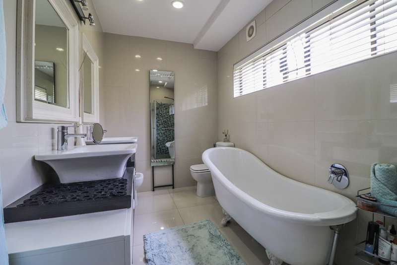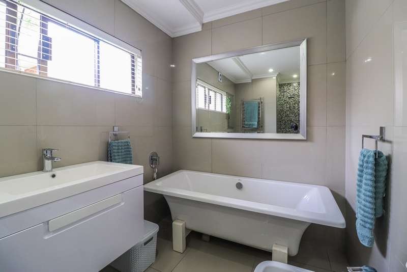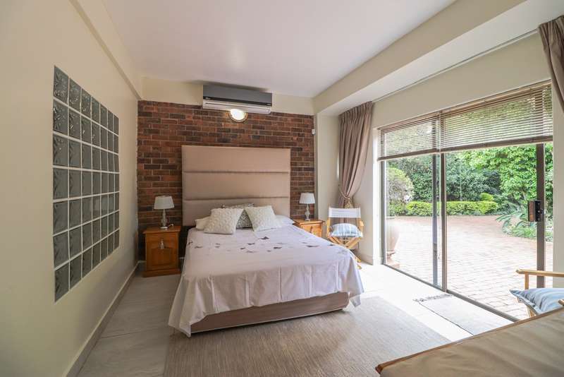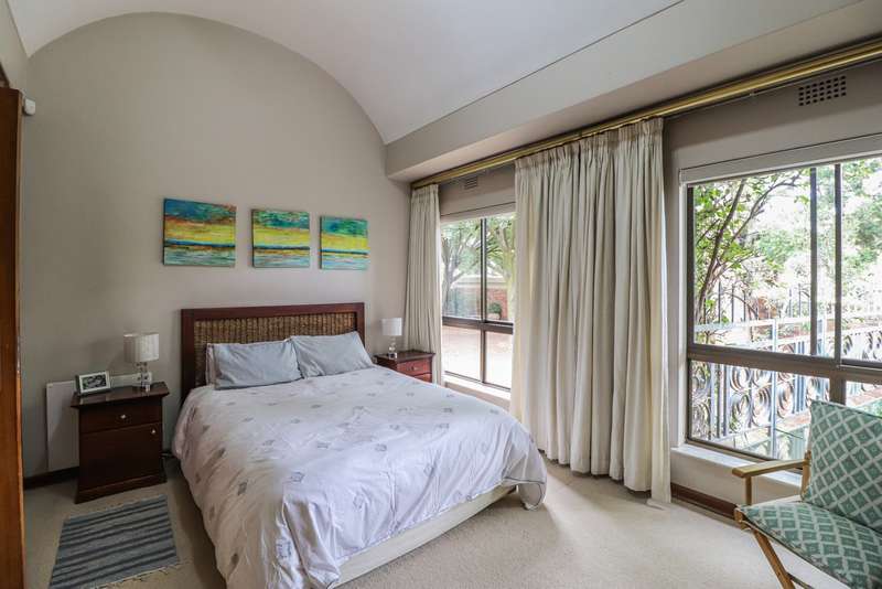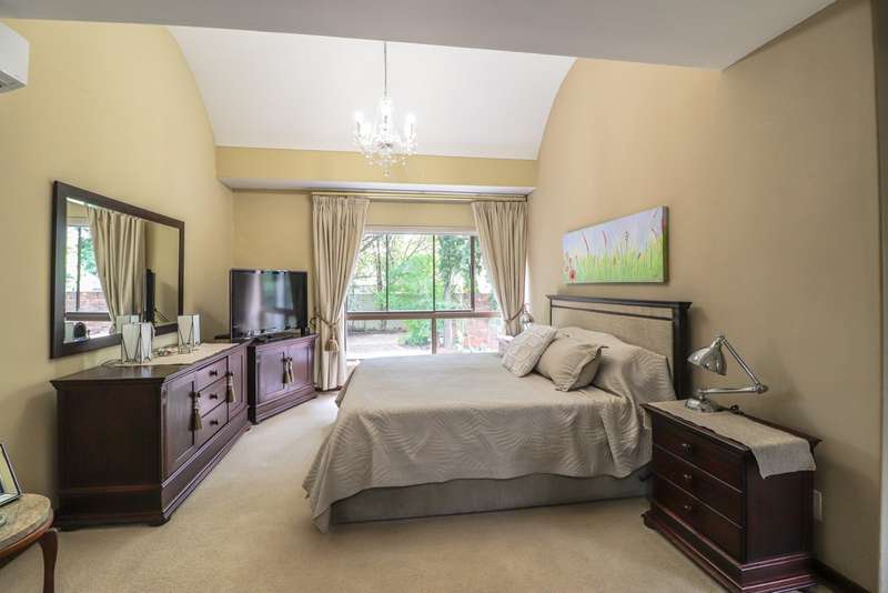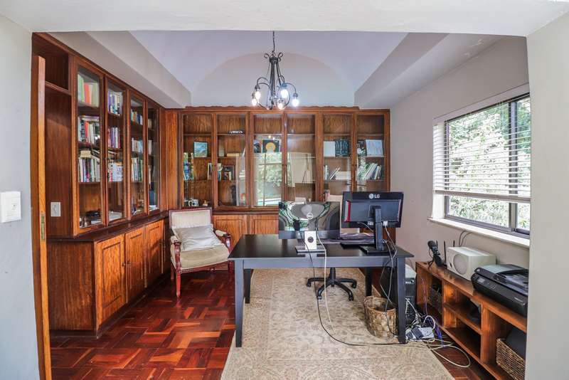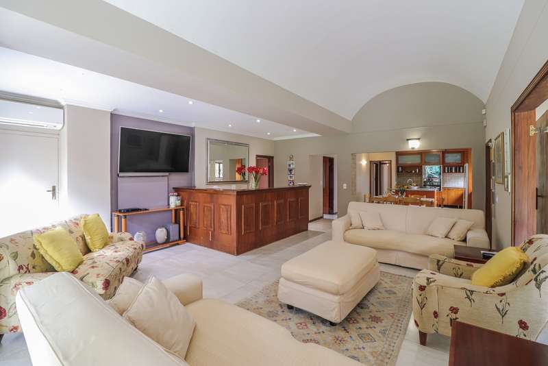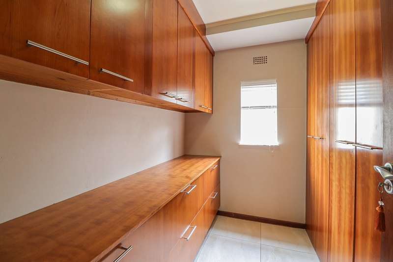 Nestled within the secured boomed-off street, tucked away in a cul-de-sac, this single-level family haven offers privacy, elegance, and warmth. Free-standing in its private oasis, the property is distinguished by its established garden that creates a serene backdrop to the sparkling pool, promising endless days of relaxation and outdoor enjoyment. As you step into the sunlit entrance hall, you are welcomed into a realm of sophistication and comfort. The guest toilet, and formal dining room, with a tasteful style and functionality, seamlessly flow into the upmarket BEAUTIFUL kitchen, designed with modern finishes, granite countertops, equipped with Gas and electric stove and an abundance of space for appliances tucked away in the separate scullery. The kitchen's open-plan layout extends into a second living room, creating an inviting space for family gatherings and casual entertaining. The formal lounge, offers a cozy fireplace complemented by the modern elegance of aluminum-framed windows, framing views of the expansive garden and infusing the space with natural light. Accommodation within this splendid home comprises four generously sized bedrooms, each a tranquil retreat promising rest and privacy. The residence boasts four well-appointed bathrooms, with two en-suite, featuring modern renovations and sophistication. Beyond the interior comforts, the outdoor spaces of this property are equally impressive. Two patios with spots for alfresco dining or quiet contemplation, surrounded by the lush, sun-kissed lawns that embrace the home. A wine cellar, automated garaging for three vehicles, ample additional secure parking, staff quarters, a mini-workshop, and more, complete the extensive list of amenities this exceptional property offers. Tucked away in a cul-de-sac, this home not only ensures a peaceful living environment but also stands as a testament to refined living, ready to welcome a modern family looking to create lasting memories in a setting of unparalleled beauty and security.