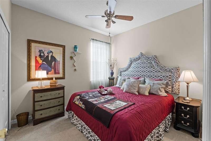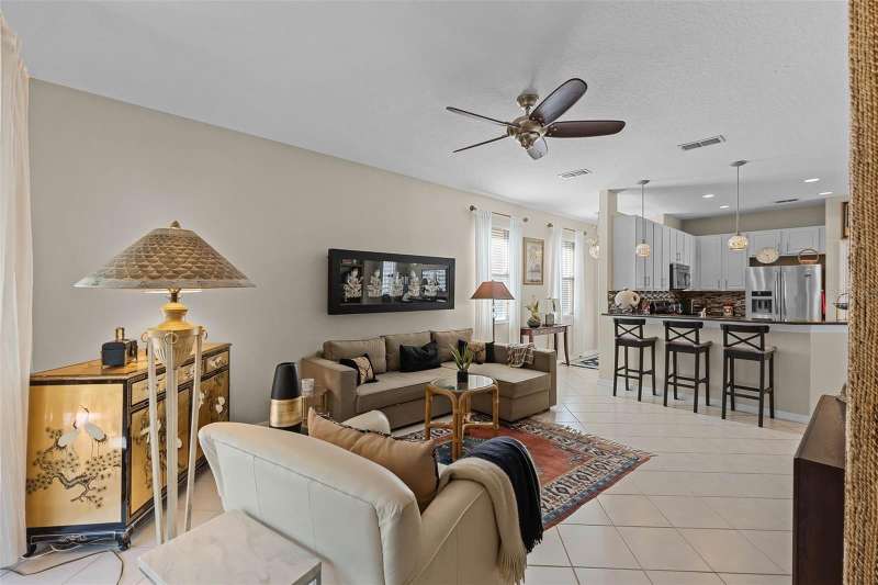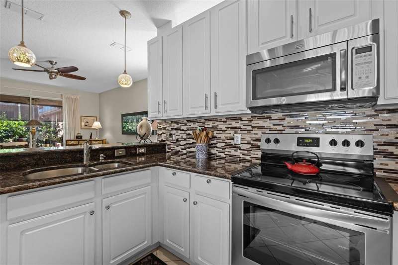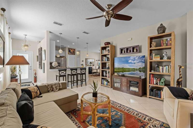 This residence offers an inviting lifestyle in the Saint Andrews area of the Country Club of Mount Dora. The home features ceramic tile flooring throughout, with the exception of laminate in the primary bedroom and carpeting in the second and third bedrooms. The primary bedroom is generously sized at 17x14, and the primary bathroom underwent a renovation in 2024, which included the addition of a double shower with seamless glass doors and new tile flooring, resulting in a stunning space. Additional enhancements include a new air conditioning system, hot water heater, and range, all installed in 2021, along with a fresh exterior paint job completed the same year. The open floor plan, combined with split bedroom arrangements, makes it ideal for entertaining. A charming screened back porch provides a perfect spot to relax during cooler evenings, surrounded by hedges for added privacy. The kitchen and both bathrooms boast granite countertops. The kitchen has a closet pantry, and all appliances are stainless steel, while the adjacent dining area features a lovely window that allows for a flood of light into the kitchen as well. Residents can also take advantage of community amenities such as a pool, exercise equipment, and a private clubhouse. The property includes a two-car garage, a ceramic tile roof, sidewalks, and street lighting. If you are considering a home in Florida, this could be an excellent choice for homeownership.