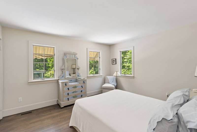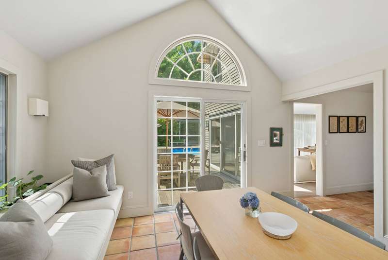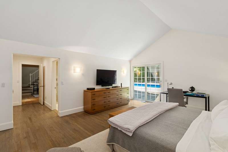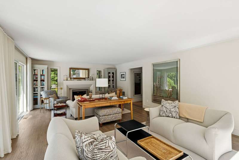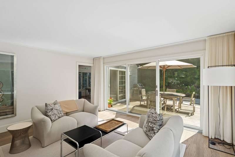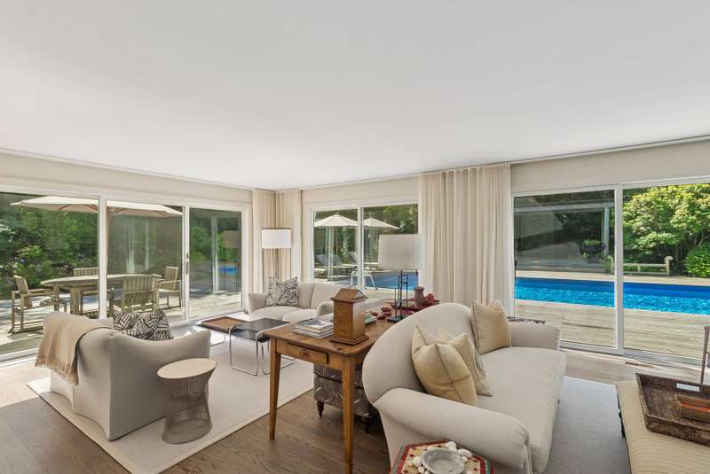Set on 2.26+\- private acres close to both East Hampton and Sag Harbor Villages, this three-bedroom traditional offers the perfect blend of comfort, style, and indoor-outdoor living across 2,100+\- sf of living space. Thoughtfully designed for entertaining and relaxation, the home features a spacious living room with two sitting areas and a wood-burning fireplace. Multiple sets of glass sliders flood the space with natural light and lead to an expansive deck, where lounge and dining areas surround the pool, creating a true outdoor oasis. The kitchen is equipped with integrated refrigeration and modern updates, making it as functional as it is attractive. With three bedrooms and two and a half bathrooms currently, there's potential to expand the existing 1st and 2nd levels to 7,000 sf in addition to finishing the lower level. A detached two-car garage offers additional convenience, while the peaceful setting ensures privacy without sacrificing proximity to the best of the Hamptons.