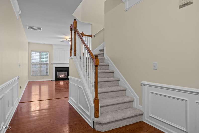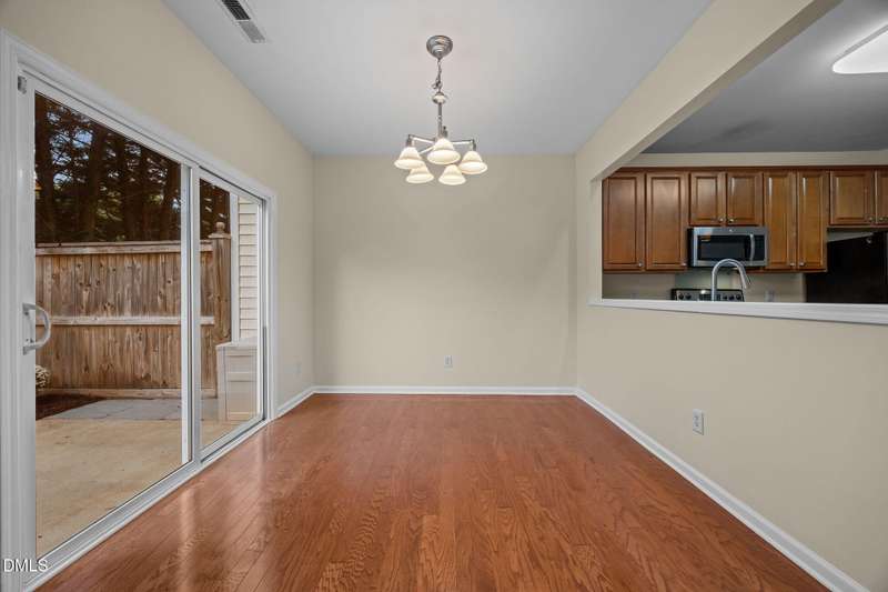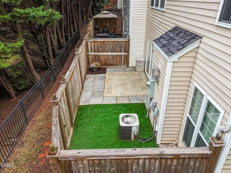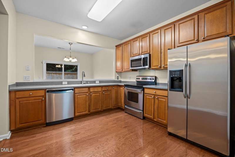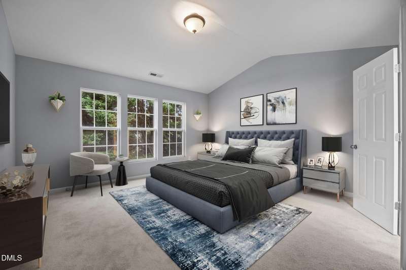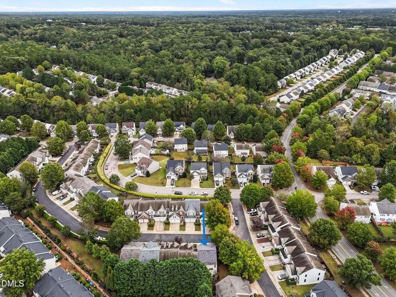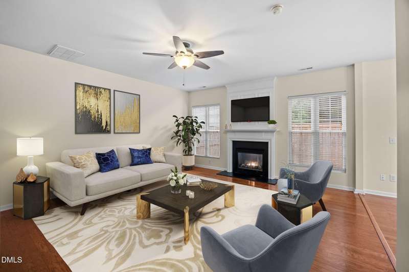 Welcome to this beautifully maintained end-unit townhouse in the highly sought-after Long Lake Community! Situated on a desirable corner lot, this home offers both privacy and charm. Inviting curb appeal with stacked stone and low maintenance vinyl siding. Enjoy a spacious 2-car garage with additional attic storage, and a low maintenance fenced patio featuring hardscape, green-space, and a lockable gate-perfect for relaxing or entertaining. Inside, the open-concept first floor boasts engineered hardwood floors, beautiful trim and millwork, a welcoming gas fireplace, abundant natural light, spacious eat-in kitchen with ss appliances, and a seamless flow ideal for modern living. The elegant master suite with cathedral ceiling and huge walk-in closet is impressively spacious and must be seen to be truly appreciated. Community amenities include an Olympic-sized pool, fitness center, clubhouse, playground, and tennis/pickleball courts-all within a walkable neighborhood. Conveniently located with easy access to RDU Airport, RTP, I-540, I-40, top-rated schools, shopping, Umstead Park hiking trails, and Downtown Raleigh. Recent updates include a new roof (2023), wooden privacy fence (2023), washing machine (2022), and new carpet and paint (2025). This turn-key move in ready home has it all! Schedule your tour today!