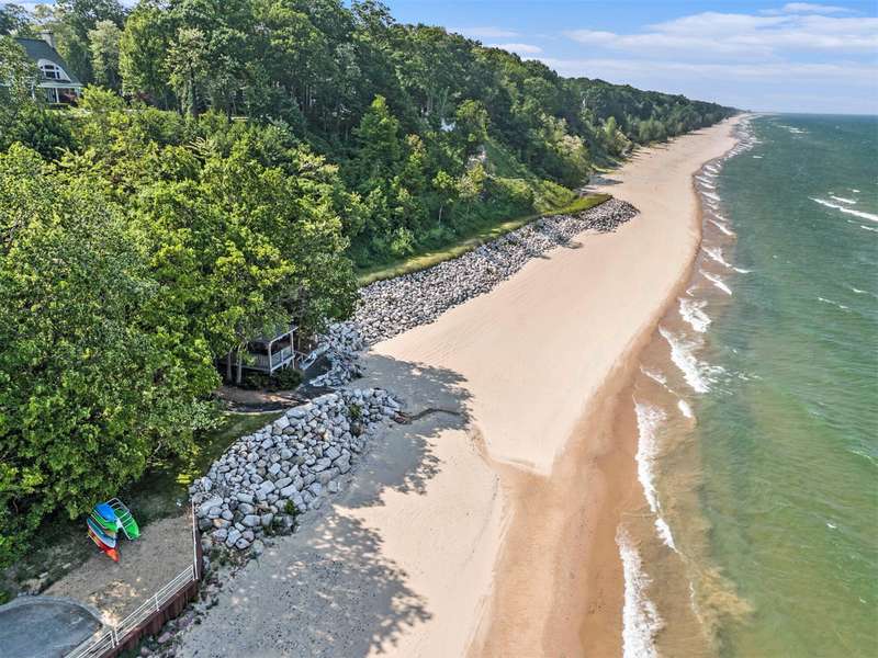 Take Lake Michigan living to the next level with this impeccable 5 bedroom, 3 bath home in the prestigious gated community of Beverly Shores. Enjoy private beach access along with miles of shoreline to explore. Other association amenities include a pool and lakeside gazebo, just a golf cart ride away. Inside you will find soaring ceilings and a striking stone fireplace in the two-story living room. The kitchen offers cherry cabinets, granite counters, and stainless appliances. The main level features formal and casual living spaces plus a flexible office or main floor bedroom suite. Upstairs the primary includes an ensuite bath and ample closet space. The finished basement has a rec room with daylight windows. Enjoy evenings on the screened porch after a fun filled day at the beach!