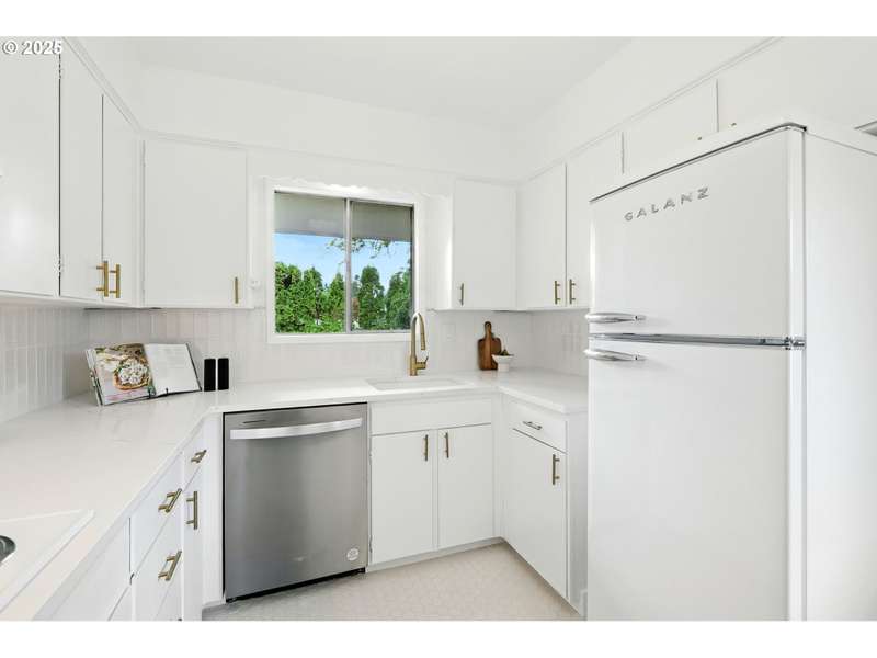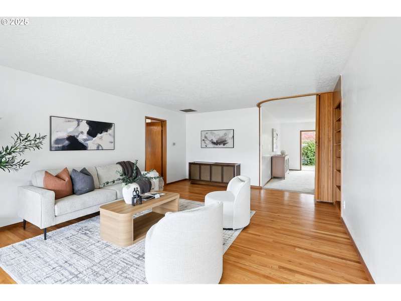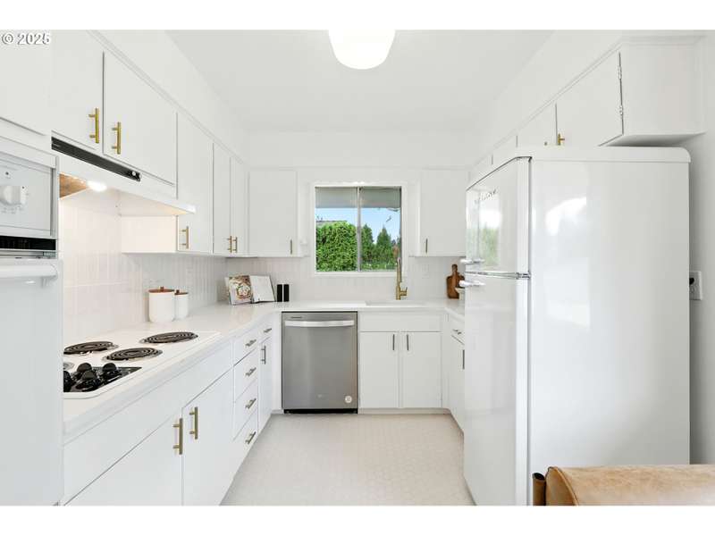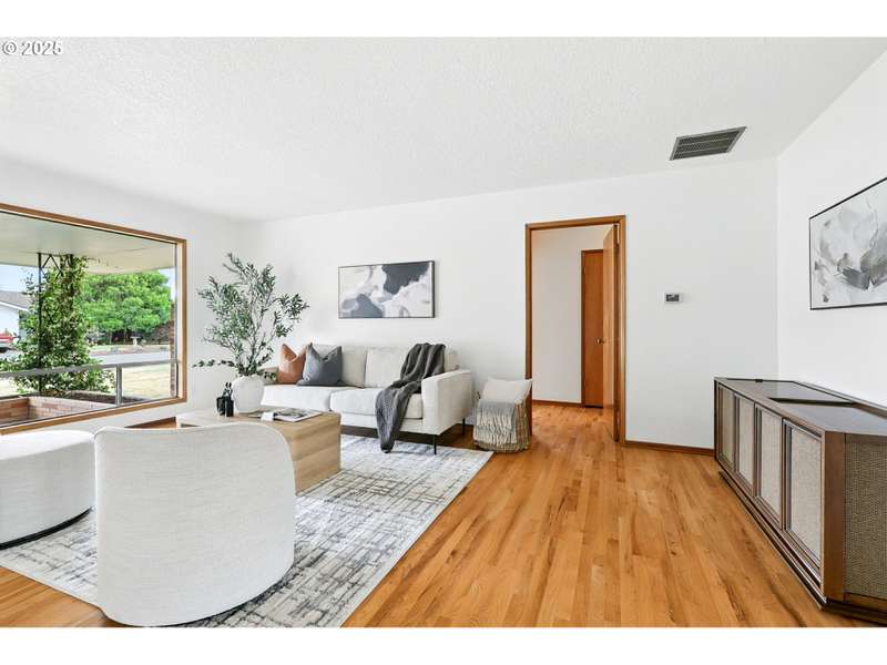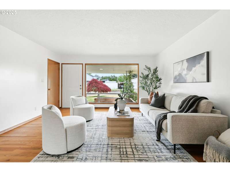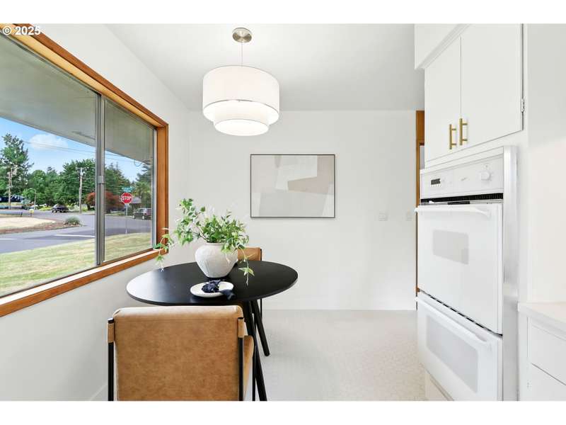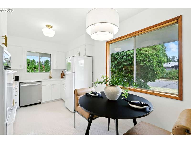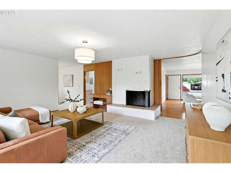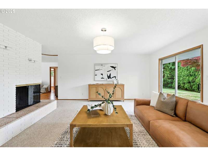 Charming single-level home in the heart of Hillsboro! Step into this beautifully maintained 1960’s gem. Full of character and curb appeal, this lovingly cared-for home leaves no detail overlooked. From the inviting, covered front porch you step into the cozy family room- with hardwood floors and built-in shelves. Follow into the secondary living space, anchored by a classic, wood-burning brick fireplace.The updated kitchen features new quartz countertops, a modern sink and faucet, tile flooring and new trim, freshly painted cabinets with updated pulls, stylish backsplash, and a new dishwasher and refrigerator. Enjoy meals in the sunny dining nook just off the kitchen.This home offers three comfortable bedrooms and two updated bathrooms with tile floors, new trim, sinks and faucets, and updated lighting. The spacious corner lot includes a generous yard, concrete patio, and mature landscaping—perfect for outdoor relaxation, entertaining, or gardening. Additional upgrades include a renovated laundry room with quartz counters and utility sink, new solid core front and side doors, fresh interior paint, refinished wood trim around the doors and windows, a new garage door opener, and updated light fixtures throughout. An unbeatable location—just minutes from growing downtown Hillsboro’s shops, restaurants, breweries, food carts, Hare Field, and the vibrant Tuesday and Saturday farmers markets. [Home Energy Score = 4. HES Report at https://rpt.greenbuildingregistry.com/hes/OR10239119]