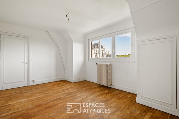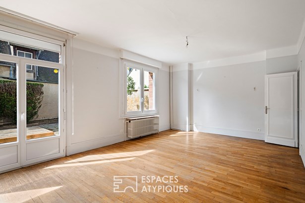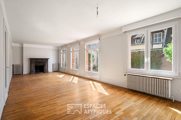 This unique residence, bathed in light and rich in undeniable character, stands out for its exceptional location, its rare volumes, and its potential for transformation. A precious opportunity for lovers of architecture and places to reinvent, looking for an atypical property in the heart of the city, while being halfway between Paris and the Normandy coast.