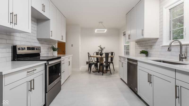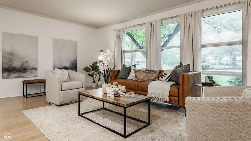 Welcome home to 6234 Tuxedo Street! This beautifully updated midcentury ranch rests on an incredible lot accentuated by gorgeous mature trees. Freshly remodeled kitchen features beautiful 40" height cabinetry, sleek quartz countertops & durable tile flooring. Refinished hardwoods exude cohesiveness and style. Stunning midcentury modern picture window floods the living room with natural light, while providing sweeping views of the sizable front yard. Primary bedroom boasts an en suite bath for ultimate privacy. Partial basement is the perfect place to unwind & provides ample storage for all your needs. Attached rear-load garage maximizes both convenience & esthetic appeal. Spacious backyard is ready to host your cookouts, soccer games & weekend gardening sessions. New roof (2024) eases your worries away. Conveniently located close to shopping, restaurants, healthcare & more - mere minutes to Broad Ripple or Keystone at the Crossing. Now is your opportunity to be the next owner of the spectacular 6234 Tuxedo Street!