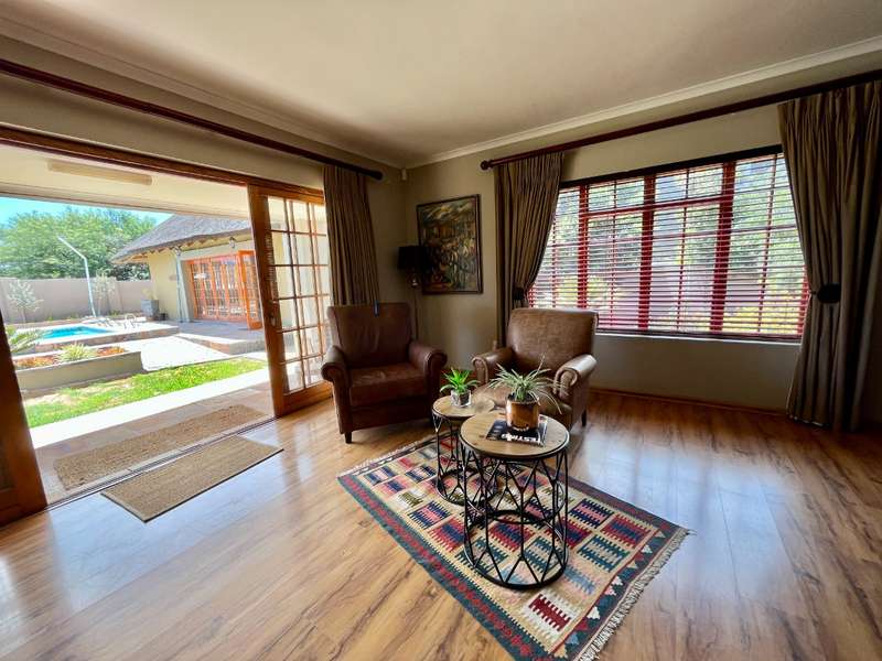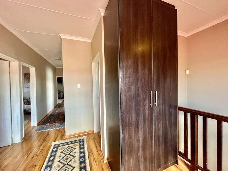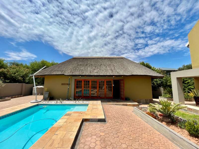 One of the most spectacular designed homes in Oewerzight, Oudtshoorn is available for you to call your own. This masterpiece offers an open plan living, kitchen, dining and tv room. The modern three-bedroom with two guest bathrooms and two full bathrooms, double garage, swimming pool, laundry room and two offices. This home captures the heart of the family. The double storey home also offers a big entertainment Lapa at the swimming pool with shower, toilet and basis, built in bar, kitchenette and braai. Don't miss out on this beauty. Call now to view this property.