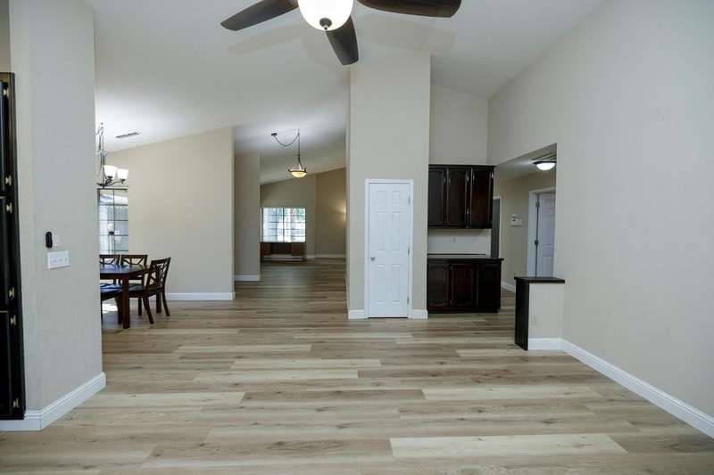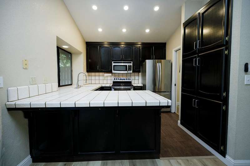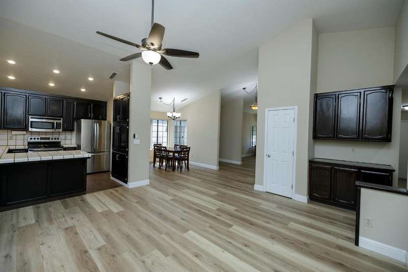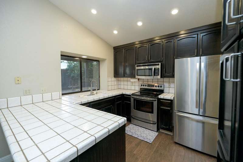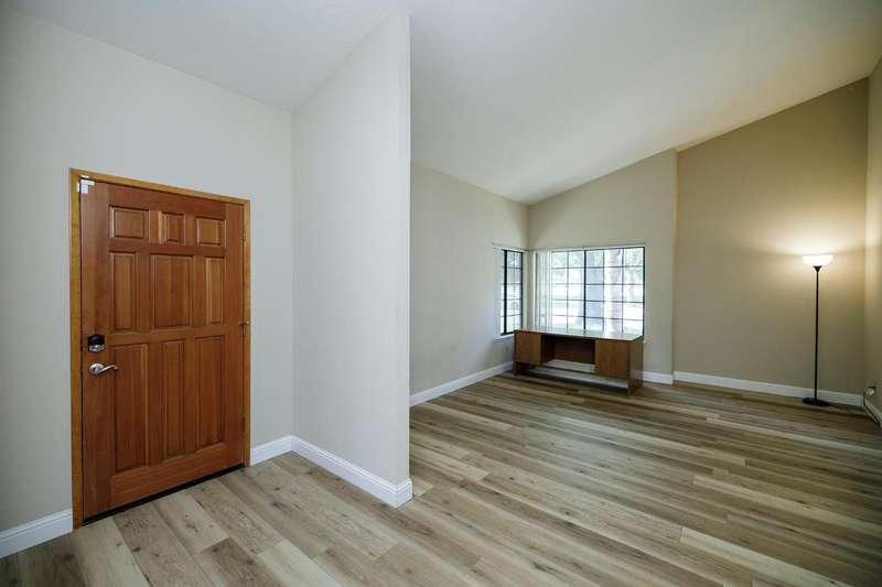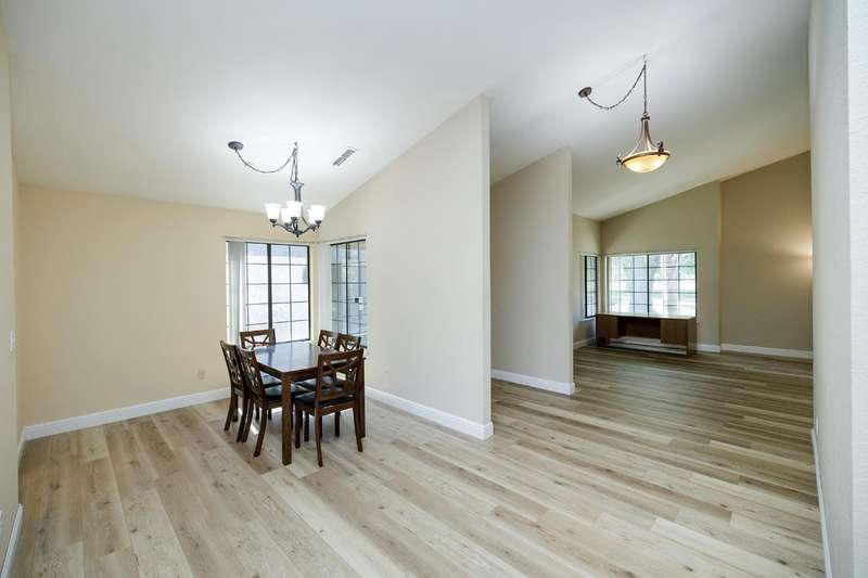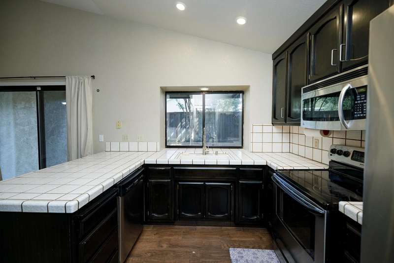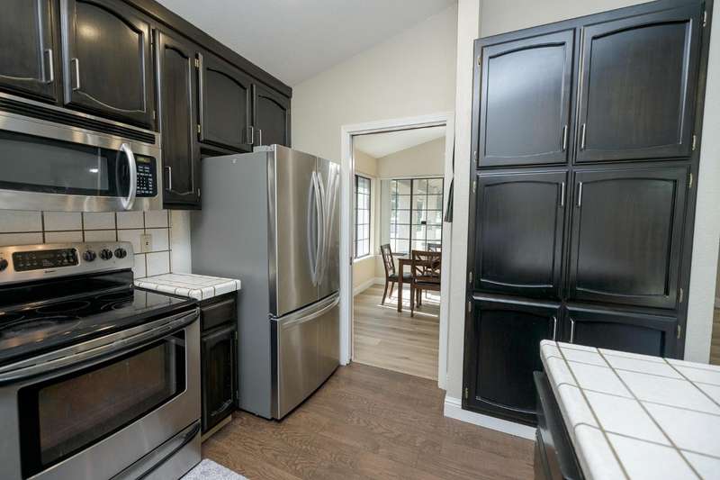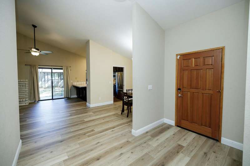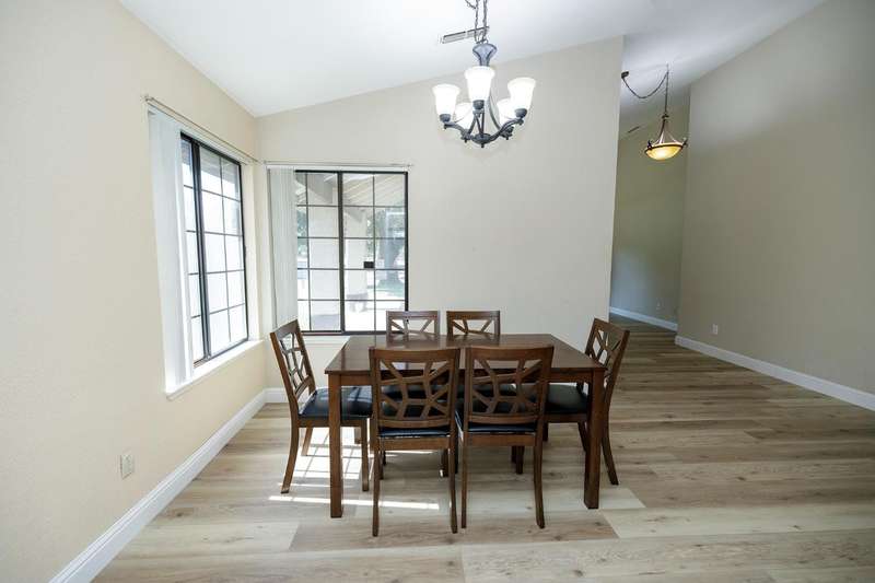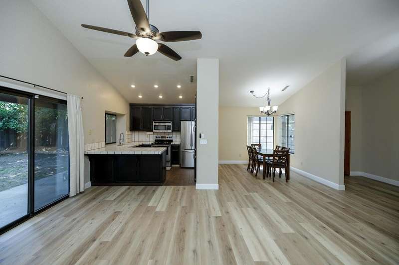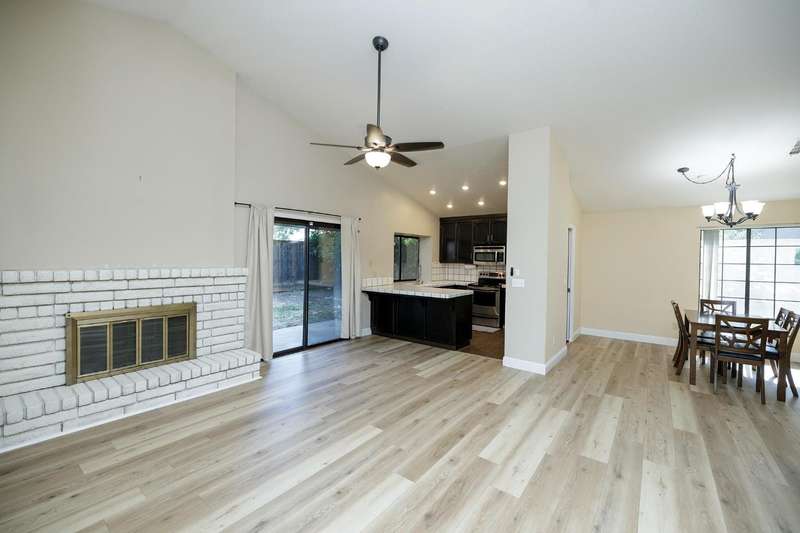 Rare Find! Welcome to this beautifully updated home, ideally situated directly across from a popular community park perfect for walking your pets or enjoying time with family & friends. There are no front neighbors. This charming home features Tudor-style accents adding curb appeal. A long, covered front patio offers an inviting, private entrance. Step inside to a spacious layout featuring a separate Living Rm with vaulted ceilings. The adjacent Family Rm also impresses with vaulted ceilings, recessed lighting, a cozy fireplace. Family Room is open to the kitchen ideal for entertaining or relaxed everyday living. The kitchen features a large picture window overlooking the backyard with fruit trees, ample cabinetry, tile countertops with breakfast bar, & stainless steel appliances. The light-filled Dining Area provides the perfect space to gather around the table. Spacious Master Suite has walk in closet. An indoor laundry room adds everyday convenience. Additional Highlights: Brand new luxury vinyl plank flooring, brand new HVAC system, roof approximately 9 years old, updated fixtures & baseboards, garage door has been replaced. A wonderful opportunity to call this special home your own in the desirable Oakwood Estates!