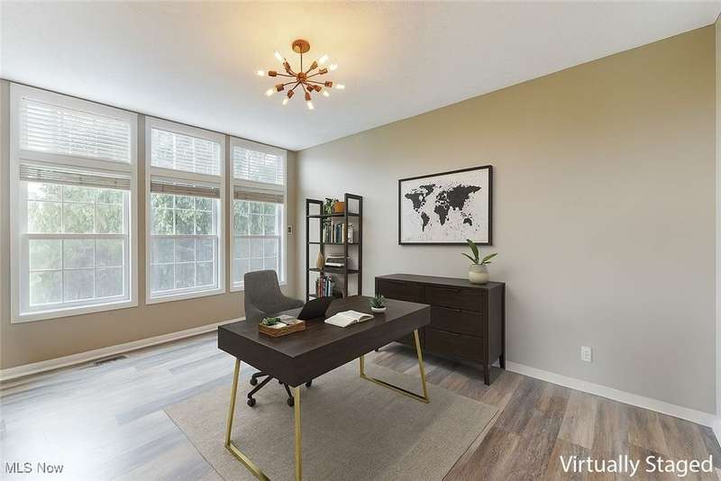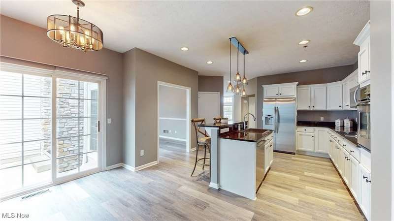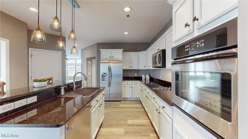 Welcome to this remodeled and beautiful condominium in the best location of the Villas of Orange! The updated chef's eat-in kitchen is perfect for creating your favorite meal with the high-end stainless steel appliances, breakfast island and white cabinetry with granite counters. Stunning Great Room that allows ample light from the wall of windows, high ceilings, gas burning fireplace and French door to the deck with retractable awning that overlooks the pond and water fountain! Also on the first level is the perfect office to work from home with the see-through gas burning fireplace and amazing wall of windows. The master suite features a luxurious glamour bath with spacious dual vanity and granite counters, walk-in steam shower, soaking tub and large walk-in closet. The second level includes two additional bedrooms and a lovely guess bath with dual vanity and granite counters. Easy to entertain guests as the finished lower level walkout has the perfect recreation area with wet bar, theater surround sound and full bath! Many more updates throughout including newer flooring on every level, newer light fixtures, newer plumbing fixtures and more! Call listing agent for viewing appointments of this TURN-KEY unit.