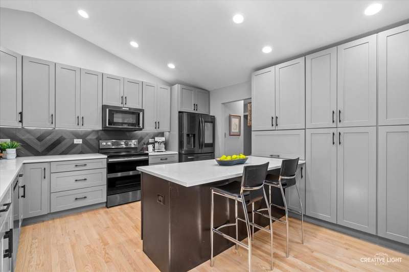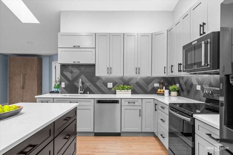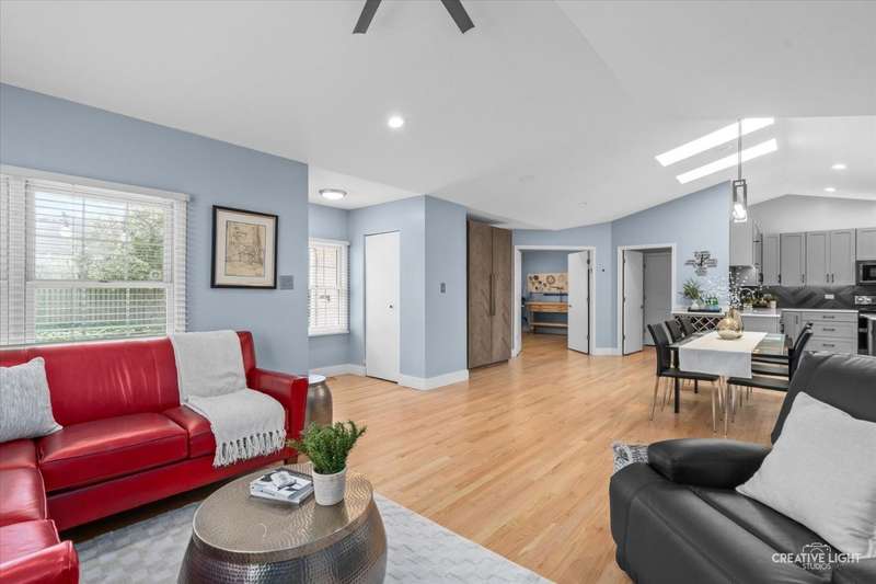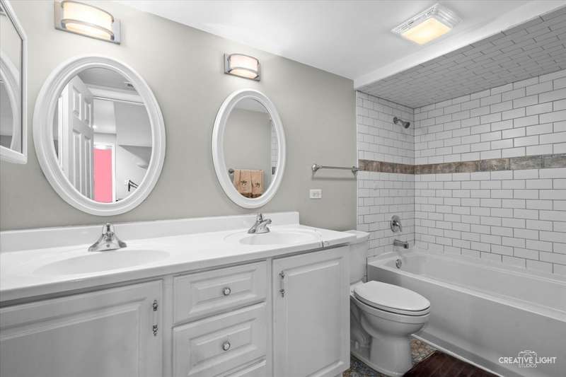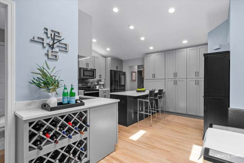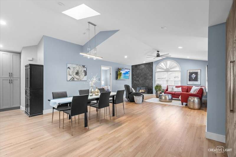 Are you looking for a beautiful home in Naperville that features a first-floor primary suite? Your search ends here! This stunning home, boasting over 2,300 square feet plus a fully finished basement, is packed with custom upgrades that are hard to find! The first floor was expertly re-designed by an architect and remodeled in 2019, showcasing elegant hardwood floors, exquisite lighting, and eye-catching sculpted designer tiles on the fireplace. The chef's kitchen has been enlarged with lots of cupboard space including everything a master chef or baker could desire! Most lower cabinets have back-saving pull-outs or drawers, and extra canned lighting on dimmers make for a bright and light space that includes a spacious 7-foot breakfast bar with seating. The kitchen is filled with thoughtful features such as a stunning black backsplash, huge appliance garage, extra outlets, a silverware drawer, Lazy Susans, a 22-bottle wine rack, state-of-the-art black stainless appliances, oversized stainless steel sink, a touchless faucet, and more! The open concept living room is large and airy with skylights, extra lighting and a ceiling fan on dimmers and remotes, and a dining area that easily fits 10+ guests. The powder room features a Toto Washlet toilet and a large linen-storage closet. The first-floor primary suite offers extra canned lights and a lighted ceiling fan, all on dimmers and remotes. The en-suite luxurious bathroom is equipped with double sinks, an expanded shower adorned with designer ceramic tiles, featuring two shower heads, a bench, niches for toiletries, and a Toto Washlet with a heated seat and bidet. You'll love the ample closet space, including a walk-in closet with an amazing shoe rack where you can find shoes at a glance, and a hard to find second closet with storage drawers, a laundry bin and shoe bins. The second bedroom on the main level, currently used as an artist's workshop, includes numerous bookcases and cabinets which are perfect for crafters along with a separate small office space that could serve as a closet. Upstairs, you'll discover a second spacious primary suite complete with a gas fireplace and an ensuite bathroom featuring double sinks. The basement adds incredible living, gathering, and storage space, including three additional bedrooms, a kitchenette, a full bathroom, and a luggage room. Just think, you'll have plenty of room for a dedicated exercise / yoga room - no exercise bike in the bedroom here. And the private lanai has a lovely flower garden and plenty of room for a grill. The location is prime, less than 3 miles from Downtown Naperville! With convenient access to Trader Joes, Costco and Whole Foods and the Springbrook Prairie and walking trails right across the street, you'll enjoy all this on a quiet street within the award-winning Indian Prairie School District and in the #1 Best City to live in America!