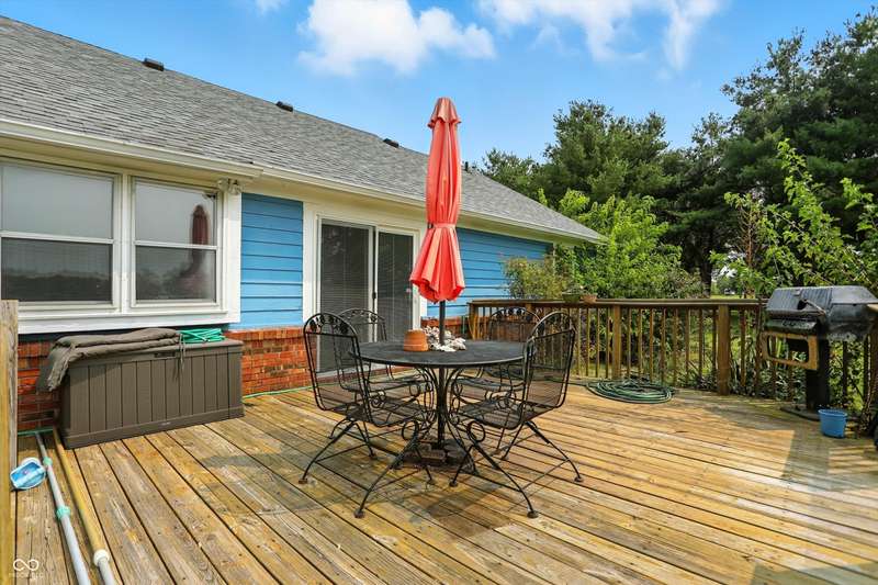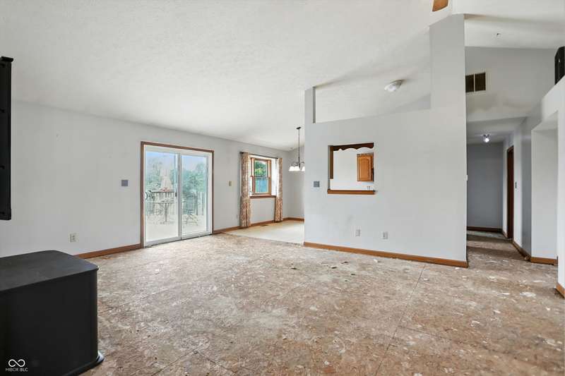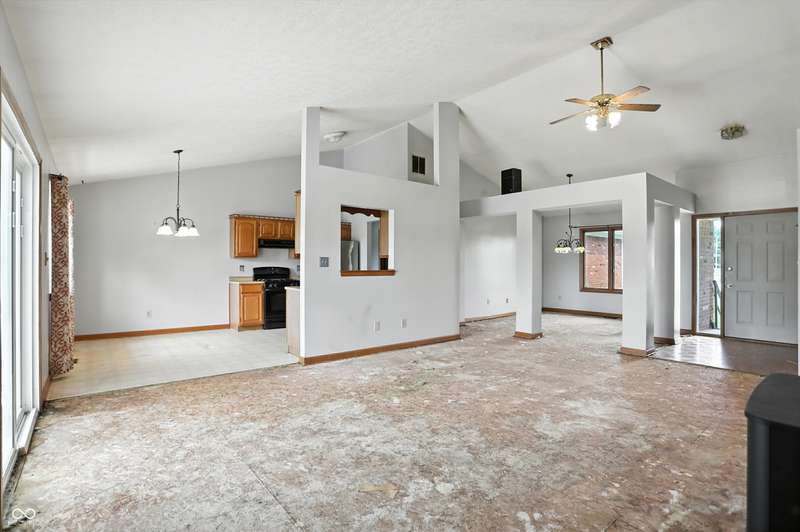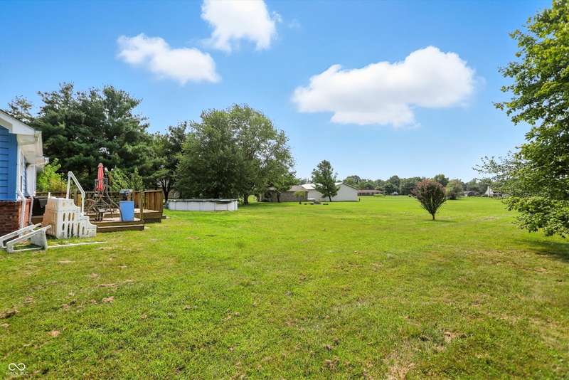 Enjoy wide-open spaces and comfortable living in this charming ranch home. The spacious great room features tall cathedral ceilings and flows seamlessly into the kitchen and breakfast nook. Host gatherings in the formal dining room-or easily convert it into a playroom or office! The floor plan offers two bedrooms and a full bath on one side, with the primary suite on the other, complete with a large walk-in closet and en-suite bath featuring dual sinks, a soaking tub, and separate shower. This home is a blank canvas ready for your personal touch-just add paint and your choice of flooring to make it truly your own. Recent updates include a newer roof, newer garage door, and a furnace replaced last year. Plus, summer fun awaits with the above-ground pool! A storage shed in the backyard adds extra convenience. New roof, paint and gutters in 2021; HVAC 2019. Estate Sale - Home, Pool, deck, outbuildings are Sold As-Is.