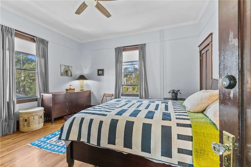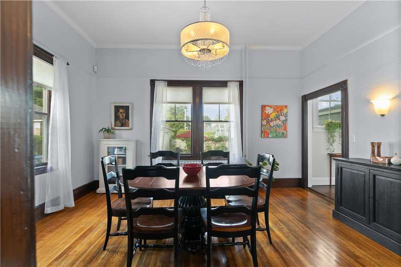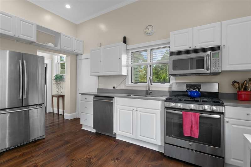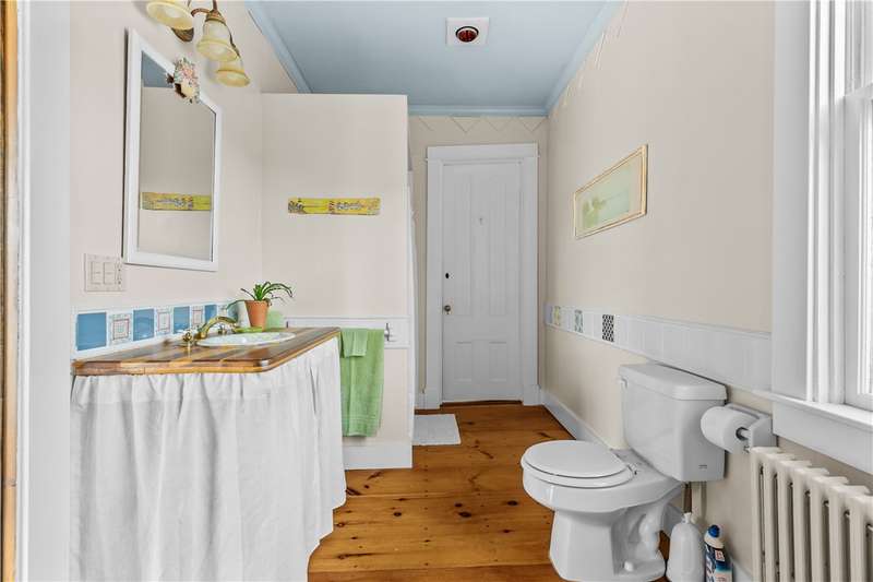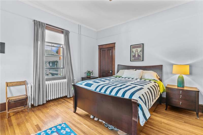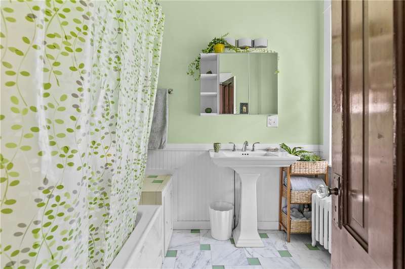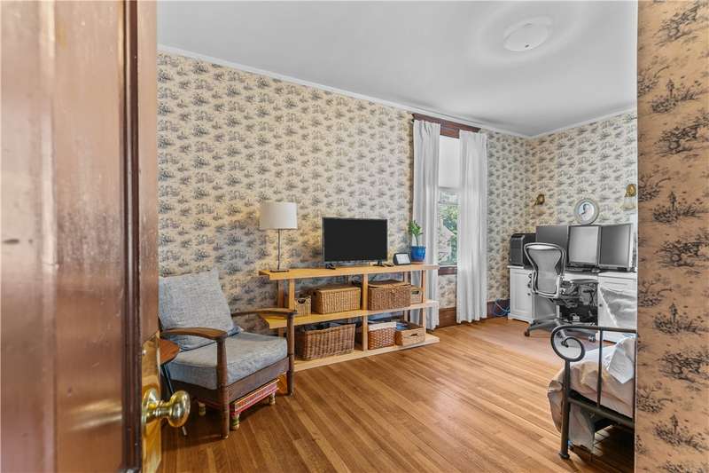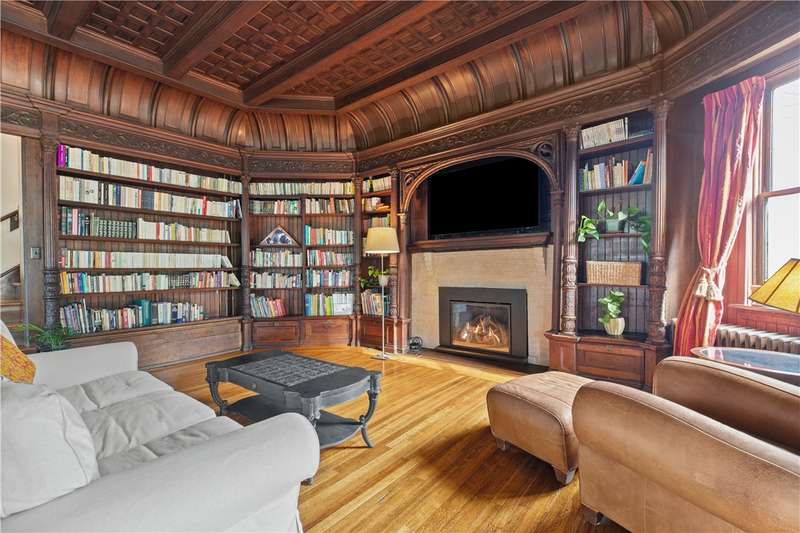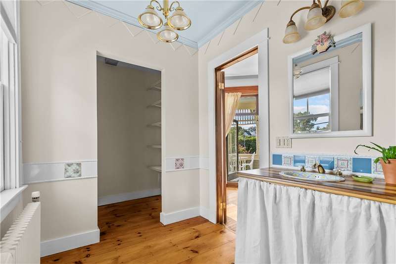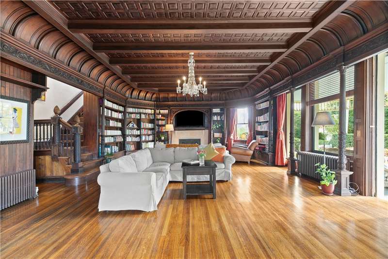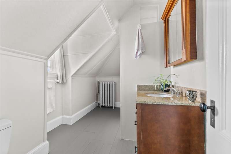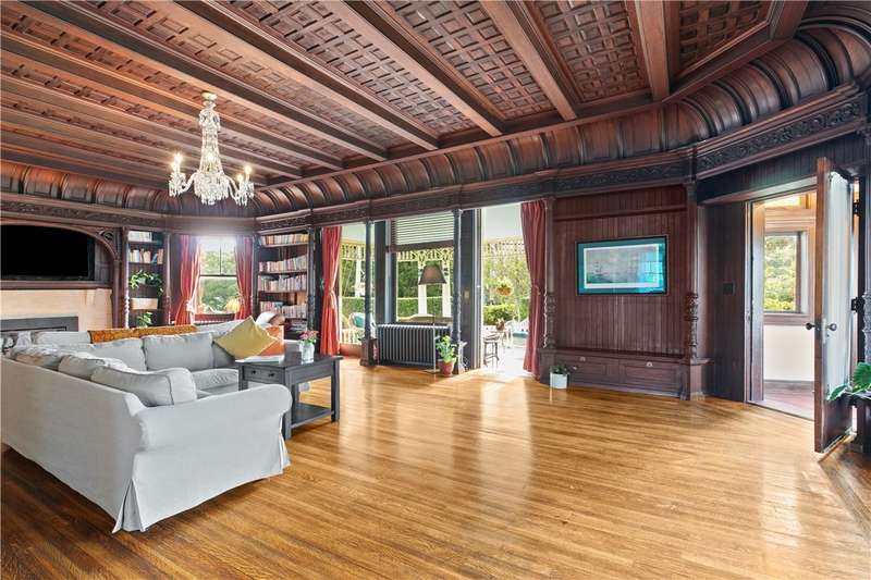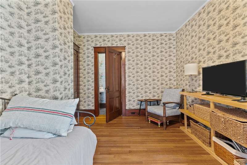 The Hawkhurst estate was built in 1882 by architect Dudley Newton. In 1929 the estate was reimagined as four separate homes, one of which is 68 Kay St. This Queen Anne style home features the original estate's library as its great room. With hand carved coffered walls and ceiling. It also boasts a curved plate glass bay window and plate glass pocket doors that lead to the inviting semi circular porch. Just above on the second floor, a smaller semi circular balcony is shared by two generous bedrooms. 2 more bedrooms and 2.5 baths complete the second floor. The third floor has 2 bedrooms, a full bath and walk in storage. Updates include a recent roof, gas fireplace, generator, renovated kitchen and baths. There is a two car garage, fenced in yard with a patio and raised garden bed. This 6 bedroom, 4.5 bath Gilded Age home in the historic Kay/Catherine neighborhood is within close proximity to Bellevue Avenue, Newport's waterfront and Broadway.