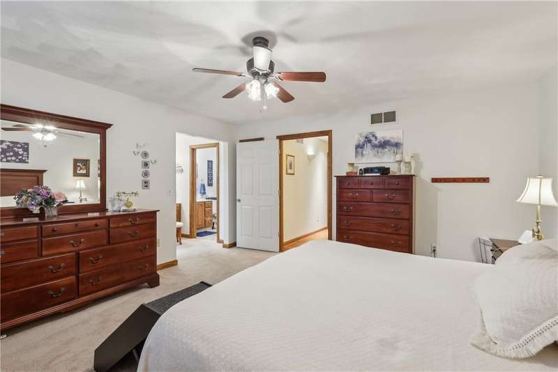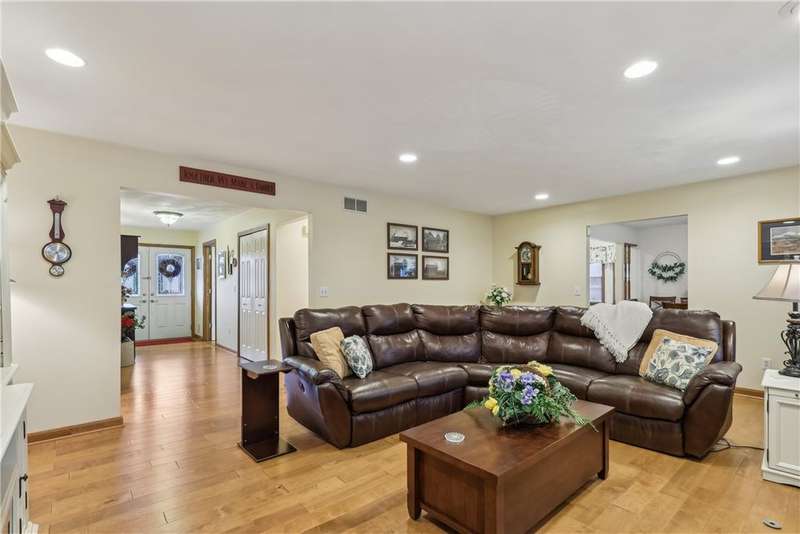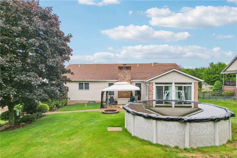 This beautiful meticulously maintained custom ranch home offers an impressive 5 bedrooms and 3.5 baths. Located in a desirable neighborhood in Center Township. Step inside to discover elegant pecan hardwood flooring throughout. The spacious owner's suite features a large walk-in closet and an updated shower. The main level includes a living room, kitchen, dining room, breakfast nook, 2 additional bedrooms, and a laundry room. The dry, finished basement is a standout, boasting two more bedrooms, three bonus rooms, & a full bath. Outdoor features include a cozy sunroom, patio, and a fenced backyard with a pool, all nestled in a private setting. The home has ample parking with both a 2-car garage and a 1 car garage, which includes workspace and storage galore! With modest curb appeal that belies its size, this home is conveniently located near Clearview Mall, local dining and shopping. Only 11 minutes from I-79 & Moraine State Park, making it a prime choice for comfort and accessibility.
