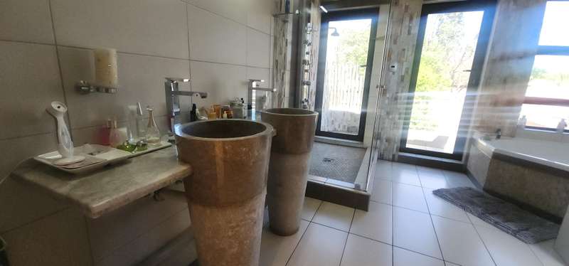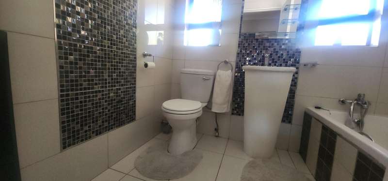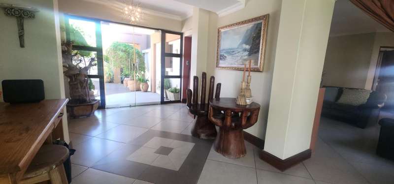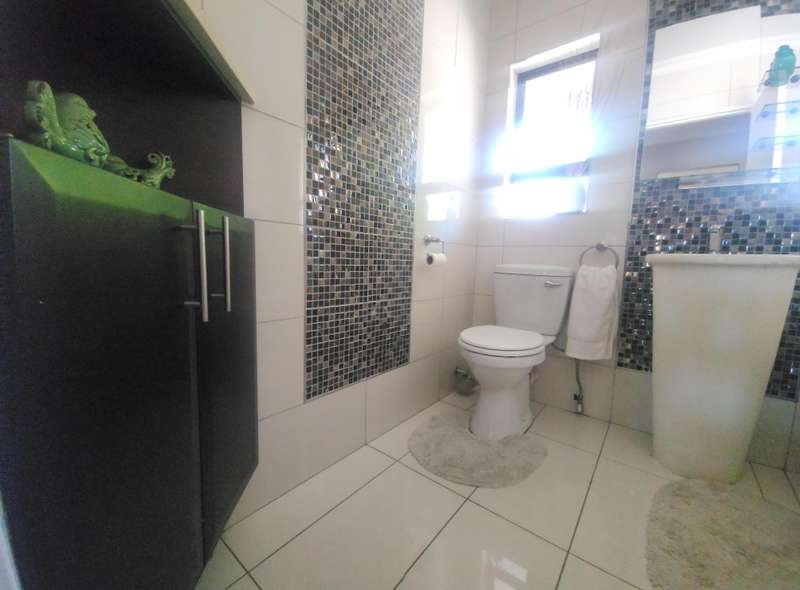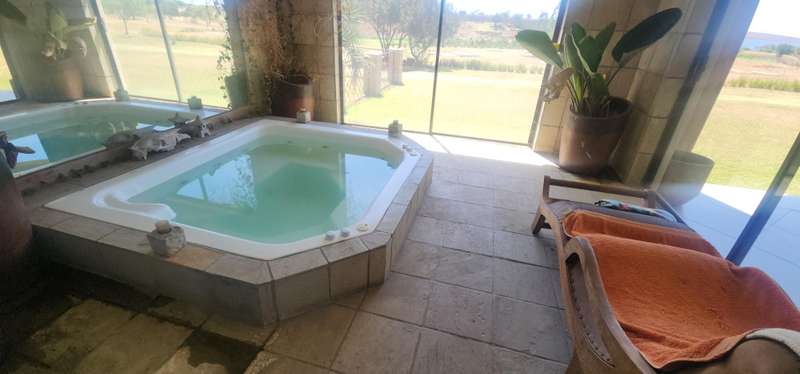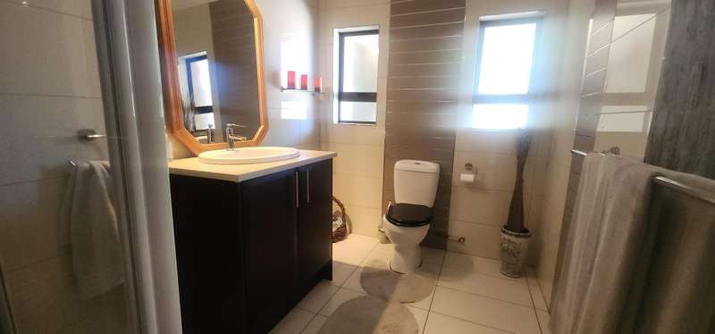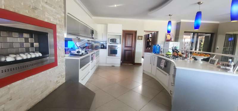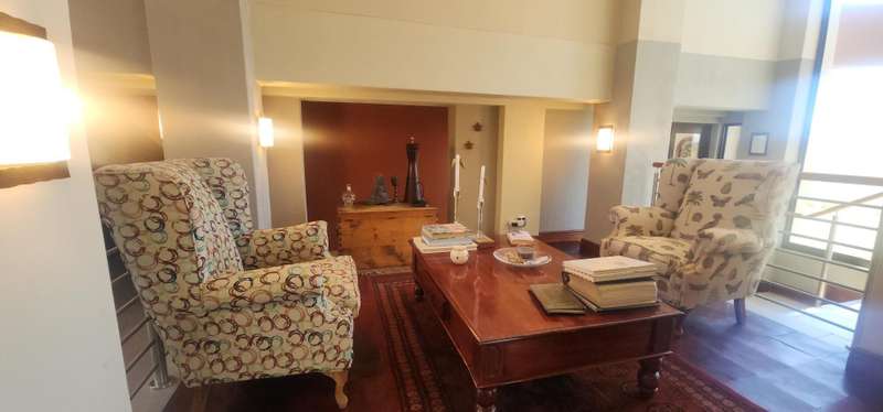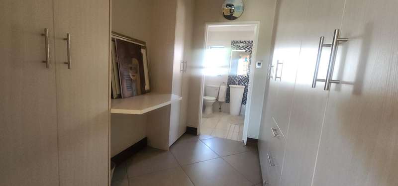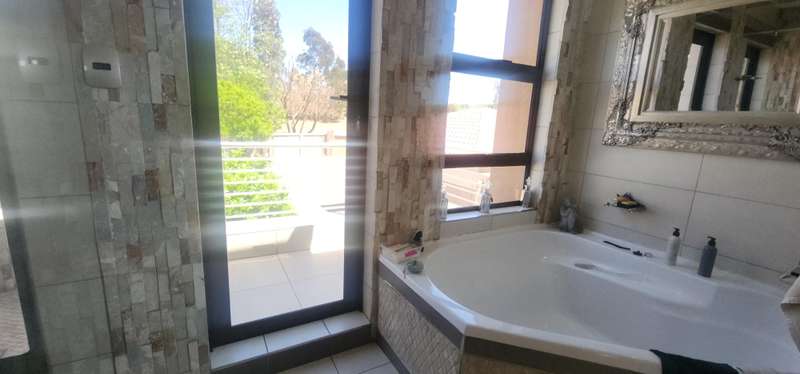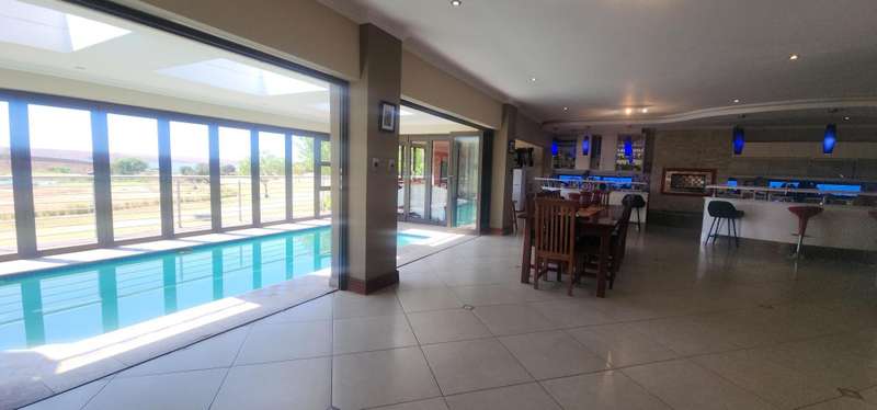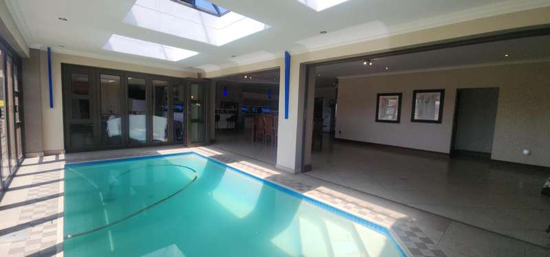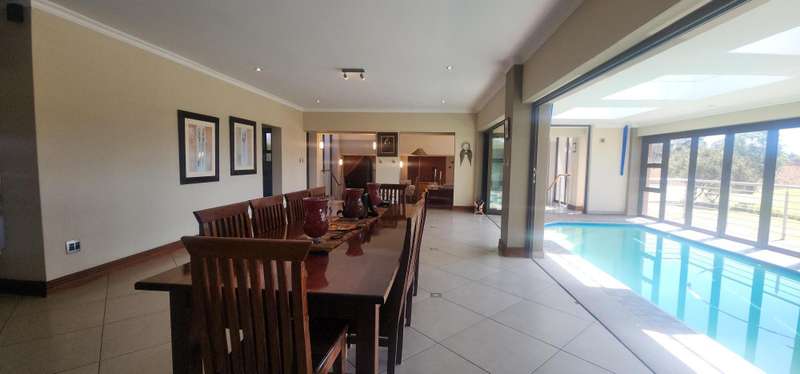 This beauty consists of 5 spacious bedrooms, with the main upstairs. Main bedroom with underfloor heating in the bathroom only 4 Bathrooms and 1 guest bathroom 2 Lovely sitting rooms, one with a gas fire place, 1 dining room and a study. Linen cupboard with ample space. Modern kitchen and laundry Jojo tank, enclosed garden/pond. Indoor pool and braai Dont miss out, call me now