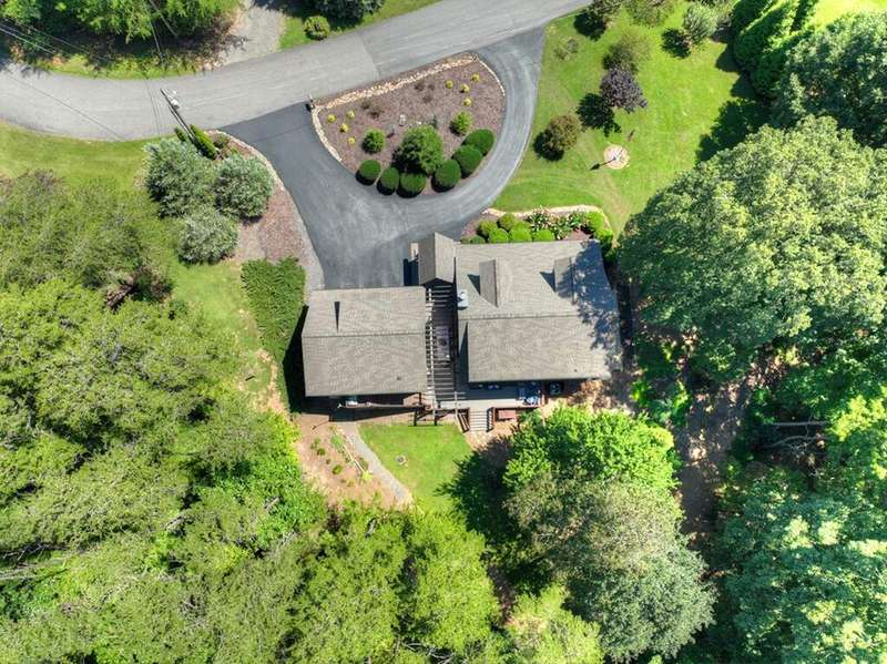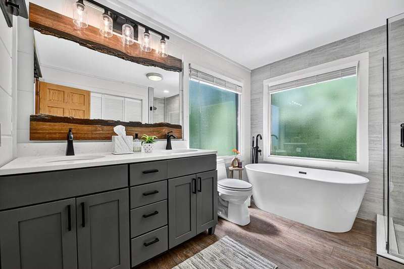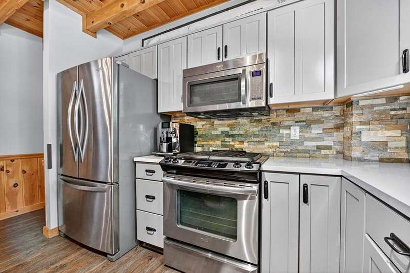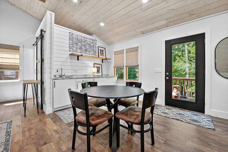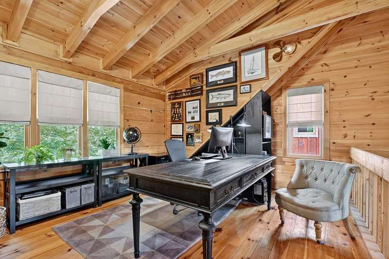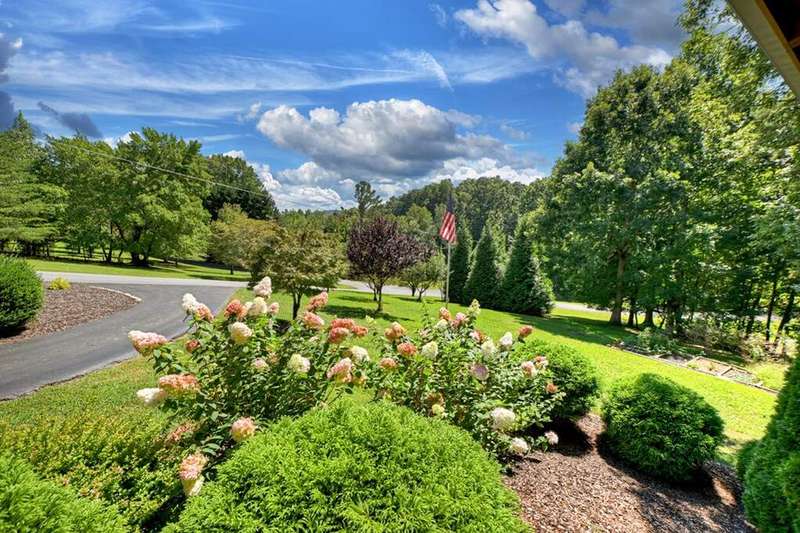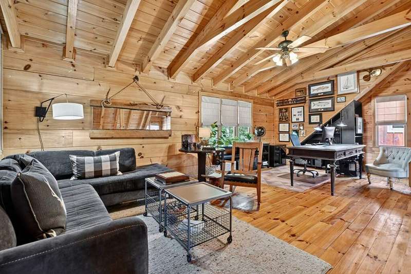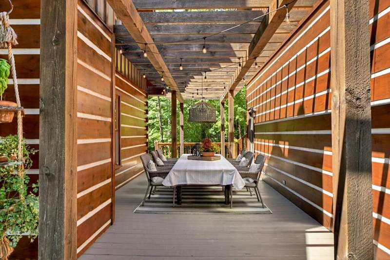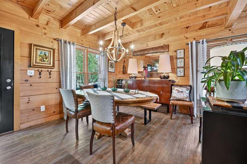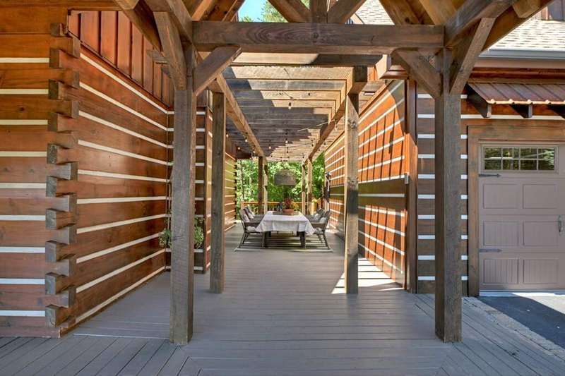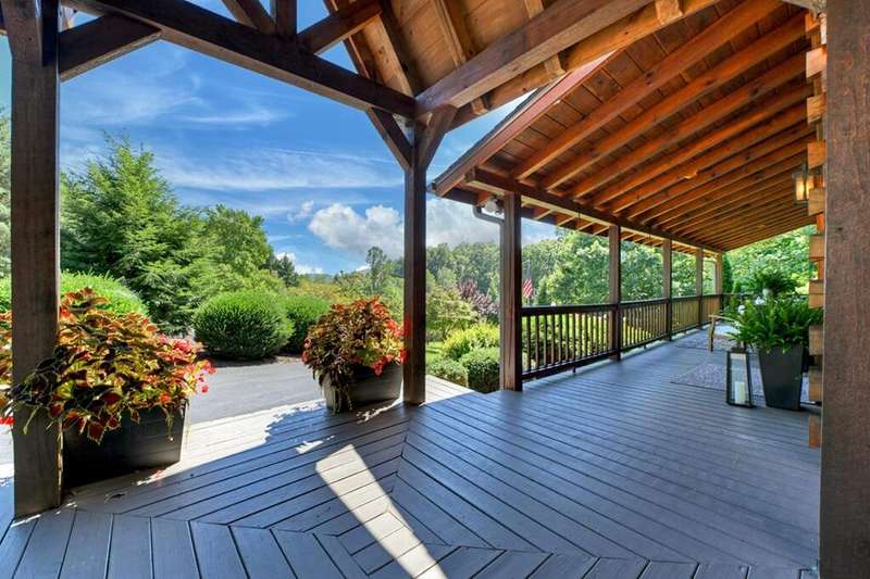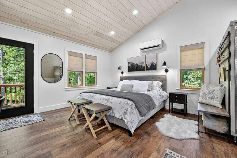 This stunning 3BR/3BA luxury log cabin is the perfect blend of modern rustic elegance and mountain charm, just 5 minutes from downtown Blue Ridge and steps from Lake Blue Ridge. Set on a level, beautifully landscaped lot with exceptional curb appeal, the home features paved access, a circular driveway, and an oversized 2-car garage with a fully finished guest suite above. Between the garage and main home, enjoy a cozy veranda ideal for outdoor entertaining, complete with seating and an inviting fire pit area. Inside, the newly renovated interior boasts soaring natural light, a gourmet kitchen with quartz countertops, a large island, and stylish finishes throughout. The main level includes a king suite with double vanities and a soaking tub, plus a queen suite for guests. Upstairs, a spacious loft provides additional living or sleeping space. The semi-finished basement is stubbed for an extra bathroom and can easily accommodate a bedroom, game room, or home theater. Featuring log chinking for authentic character, this home offers both timeless appeal and modern convenience with a newer roof and HVAC. If you are looking for a charming cabin retreat, this turnkey property is a rare gem in one of Blue Ridge's most sought-after neighborhood.