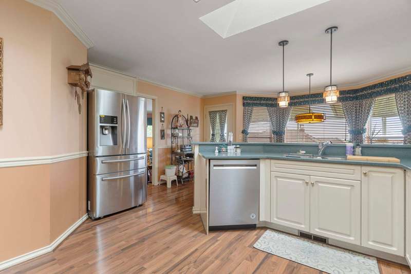 CENTRAL AIR-CONDITIONING! Rare find! Downsizing or upsizing, or simply looking for main-level living without compromise.This immaculately kept rancher in River Heights offers stunning city and mountain views, perfect for morning coffees or evening sunsets on the covered deck. Cook up a storm in the large kitchen and eating area, you can even close the doors to make entertaining a breeze, and keep your cooking area separate. Primary bed and laundry room on the main level, and a fully finished basement downstairs with wet bar and recreation room ideal for game nights or movie marathons. Huge crawl space plus tons of storage! Worry free low maintenance landscaping. All levels of schools, shops, transit and Mundy Park steps away!