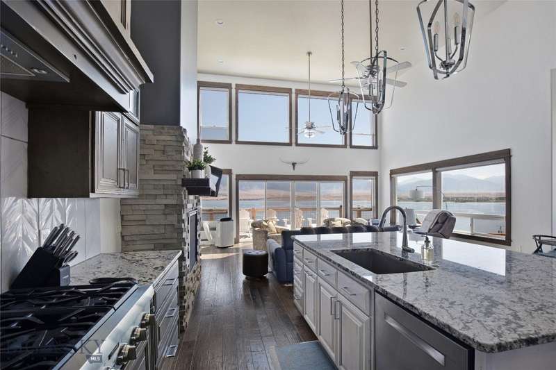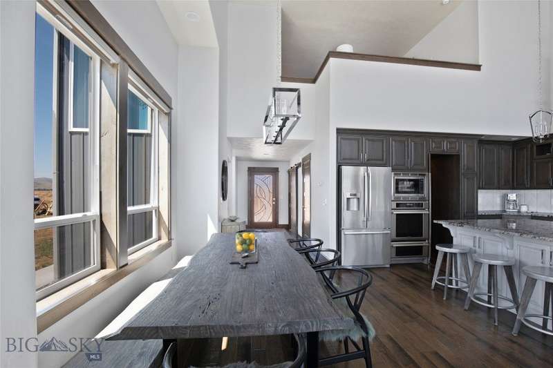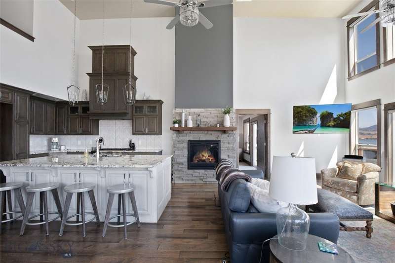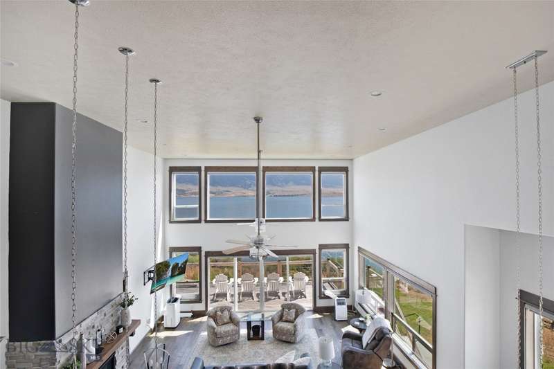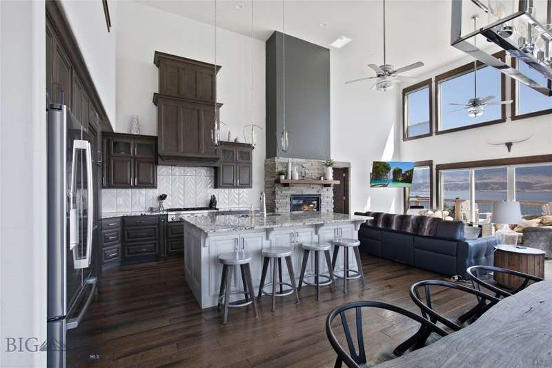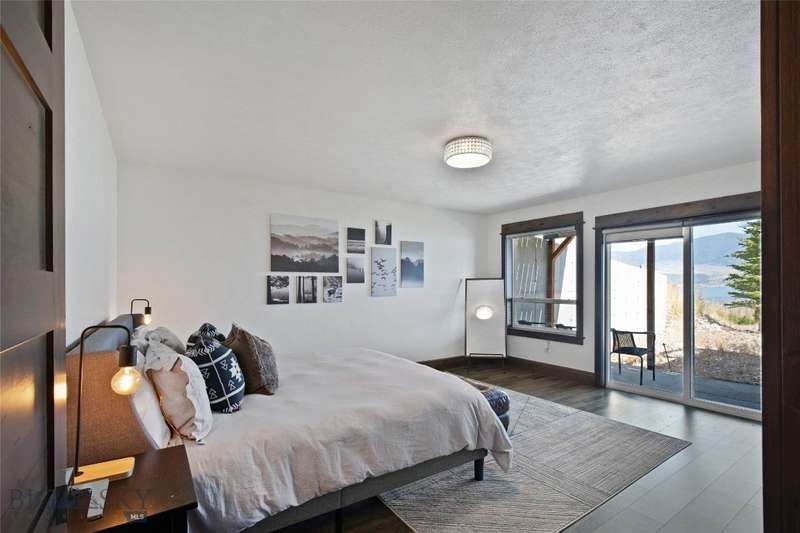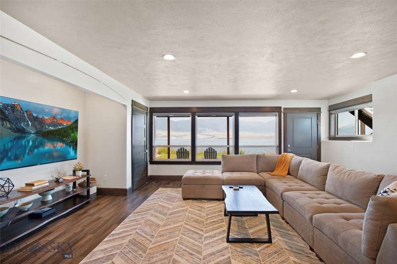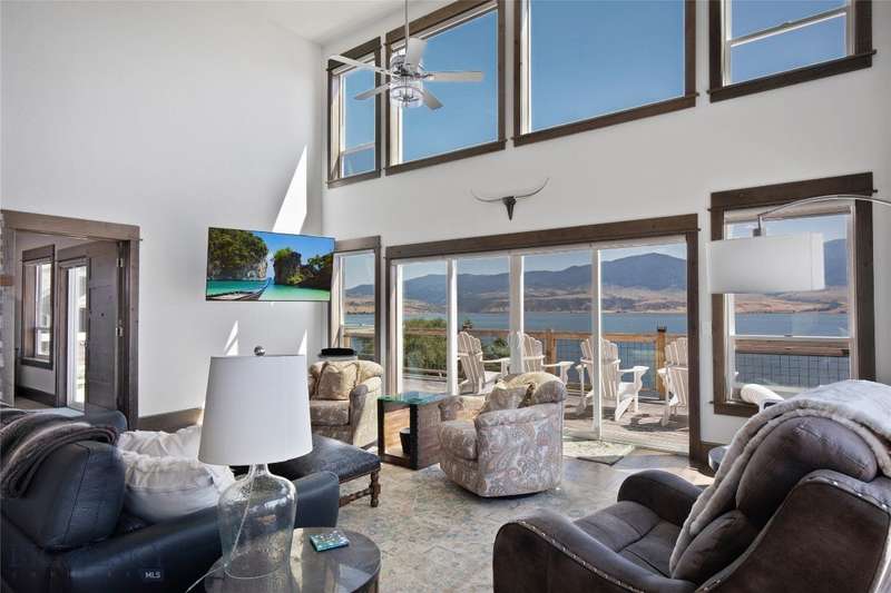Located on the peaceful side of Ennis Lake, 22 Jordan Lane N offers 92.42+/- feet of prime lakefront location with stunning views of the Madison Range, Lone Peak, and the Jack Creek Canyon. This custom-built home features 4 bedrooms, 3.5 bathrooms, and a total of 4,508 square feet of living space, including a 1,700 square foot apartment with 2 bedroom, 1 bathroom, and a full kitchen on the lower level. The spacious open floor plan includes a chef's kitchen with upgraded stainless steel appliances, an impressive island with seating, a large hidden pantry, radiant in-floor heat, unique light fixtures and many custom upgrades. The living and dining areas are perfect for entertaining, with a cozy modern propane fireplace as a focal point when you are not looking out the floor-to-ceiling windows to the immense view of the lake and mountains. Connect with the views even better from the wide deck that runs the width of the home. The large master suite is located on the main floor and features a soaker tub and walk-in closet and opens to the deck overlooking the lake. A second bedroom with a private bath is located on the upper level. The lower level is ideal for guests or family members and has two additional bedrooms, a full bath, and a second full kitchen, all with direct access to the outdoors and a private entrance. A spacious patio and sidewalk area provide ample space for outdoor living and recreation at this level. The property offers private lake access on a path from the house, and the potential for a dock to be added for water access. There is extra gravel parking for guests. Enjoy a peaceful lakeside retreat with fishing, boating, and breathtaking mountain views. Additionally, the property allows for short-term rentals, making it a versatile investment or recreational property. This home lives well as a primary residence or as an investment property with income potential and is being offered furnished.