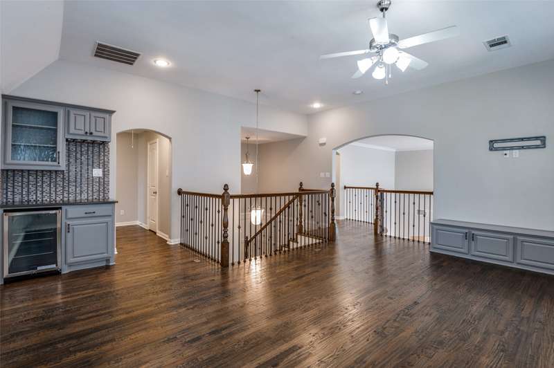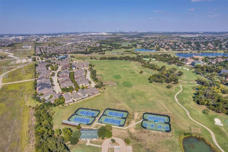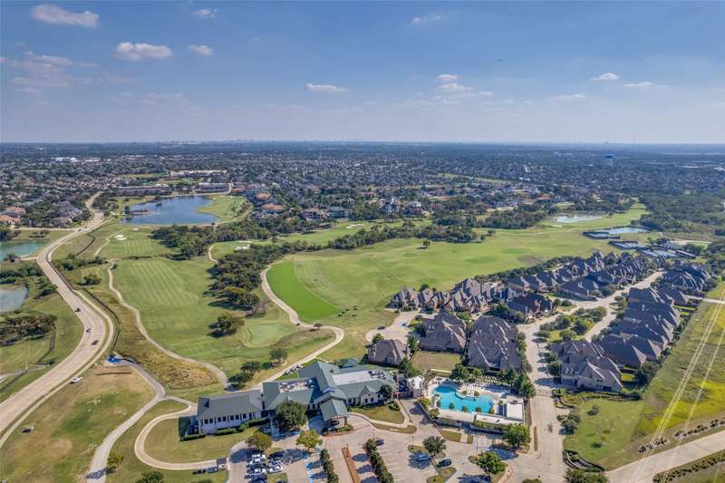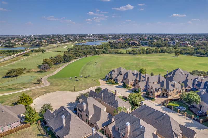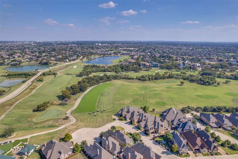 Situated in one of the most sought after Villa communities! This exceptional residence is situated on a cul-de-sac e lot and views the 18 hole Championship Golf course that is nestled in one of the fastest growing golf communities. The Lakes is Recognized by Golf Digest as one of the Top 100 Best Courses in Texas. This stunning home is steps from the Premiere Private Club and offers manicured turf, lush landscaping, and expansive covered patio for relaxing and entertaining. Meticulously maintained, custom finishout, refined craftsmanship, and an open floor plan that flows seamlessly for indoor and outdoor living. A private study provides a quiet retreat for a home office, while the open kitchen boasts a large island, 6 burner gas cooktop, and custom cabinets. The kitchen flows seamlessly into the impressive living room with soaring ceilings and a captivating floor-to-ceiling stone fireplace create the perfect setting to create lasting memories. The primary suite is a peaceful sanctuary featuring a spa-inspired bath, spacious shower, dual vanities, and an oversized custom walk-in closet. Upstairs, a versatile game room with a charming bar, two generously sized bedrooms, and two full baths for your family and guests. Additional features include plantation shutters, hand-scraped hardwood throughout, a spacious laundry room with deep sink, a mudroom, and an oversized garage. Golf Villa Residence have access to the Premiere Club, a social membership with access to the fitness center, and pool. This home is Centrally located in the heart of DFWs most desirable area with easy access to major highways, airports, as well as shopping, dining, and entertainment. Toyota Hdqtrs, Legacy West, Grandscape, The Star, and PGA Headquarters and more!