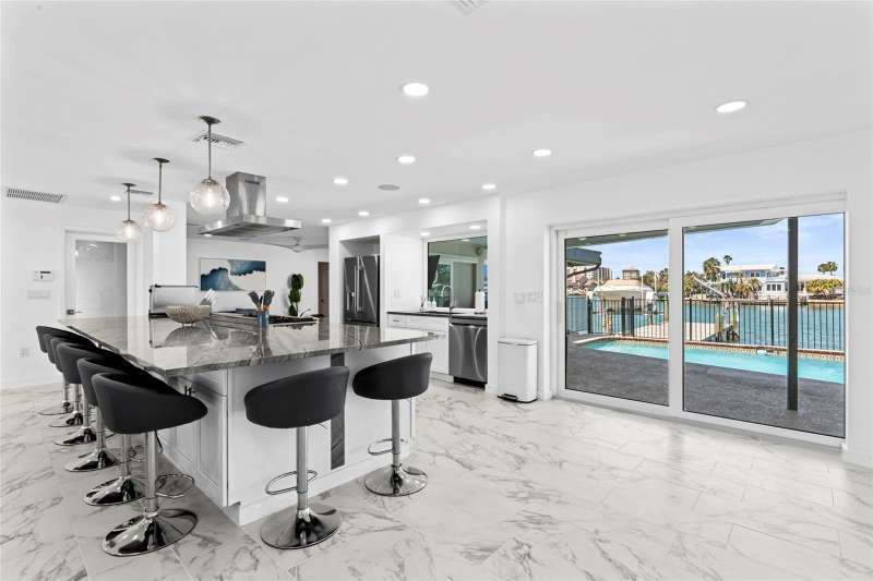 AVAILABLE MONTHLY OR LONGER .Beautiful FULLY FURNISHED Waterfront POOL home in the desirable community of Island Estates in Clearwater. This home offers 4 Bedrooms, 3 bathrooms, pool, 2 car garage and a private dock. Newly renovated with attractive finishes and new modern furnishings throughout. The kitchen feautures a large Island / breakfast bar with ample seating, quartz countertops and stainless steel appliances. Enjoy serene water views through the picture window and sliding glass doors letting in plenty of natural light. The master bedroom is pool side and offers great views and easy access to the outdoor pool / entertaining area with grill. Conveniently located close to restaurants,shopping, grocery stores, local attractions and the most beautiful beaches of Clearwater. Schedule your private tour today! $8k for annual lease , $12k for seasonal or short term .