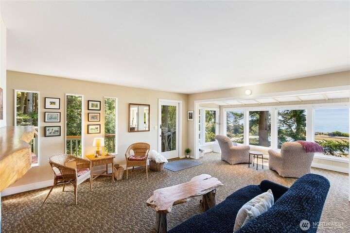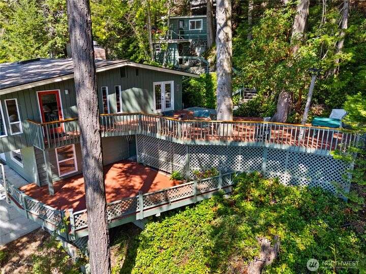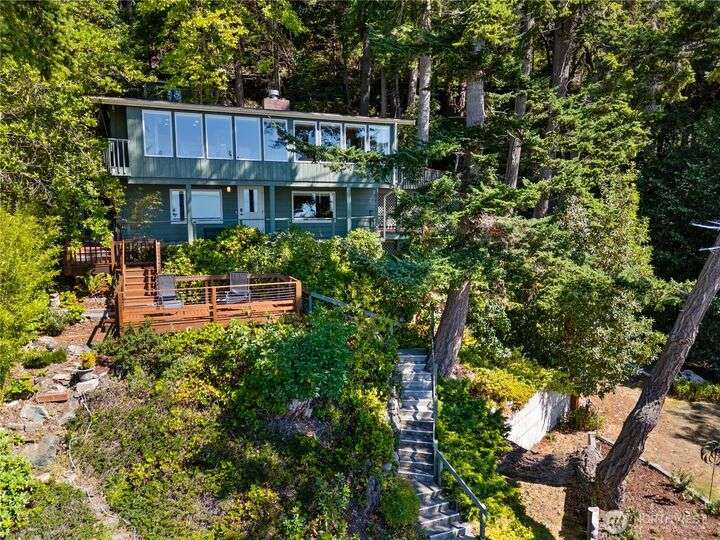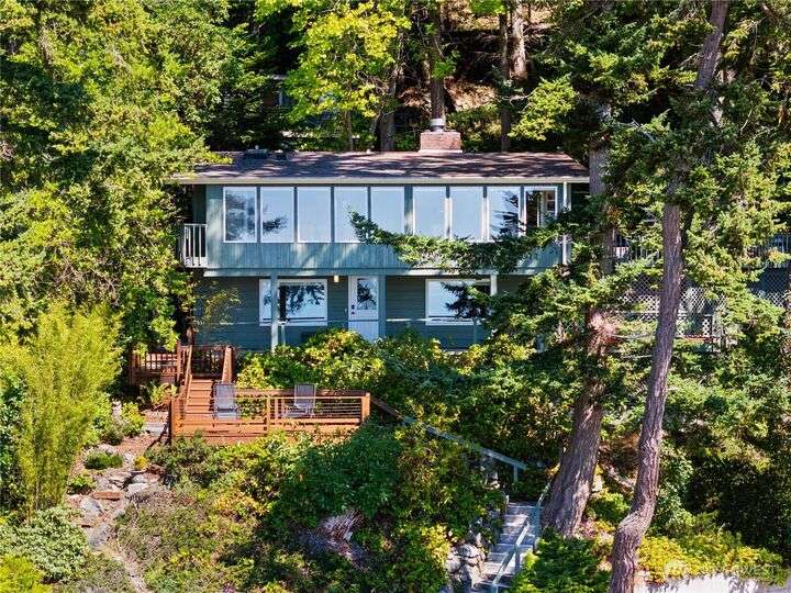 Come see this nature lover’s dream, a rare & serene home at Alexander Beach. Stunning saltwater views from both floors of this, move-in ready beach house. Solid cherry built-ins, and large slate fireplace greet you in the great room. 2 levels of spacious decks to entertain & enjoy the views. 3 large bedrooms & a bunk alcove can accommodate a crowd, but a cozy place for two. Efficient & even hydronic heating keep it cozy. Fully equipped workshop downstairs + outbuildings! Generous 18,295 sqft lot covering 2 parcels of land. Nestled in the woods & overlooking the Salish Sea, just steps away from the only private sandy beach on Fidalgo Island. This gated community is 10 min from Anacortes with the kind of tranquility that is rare to find.