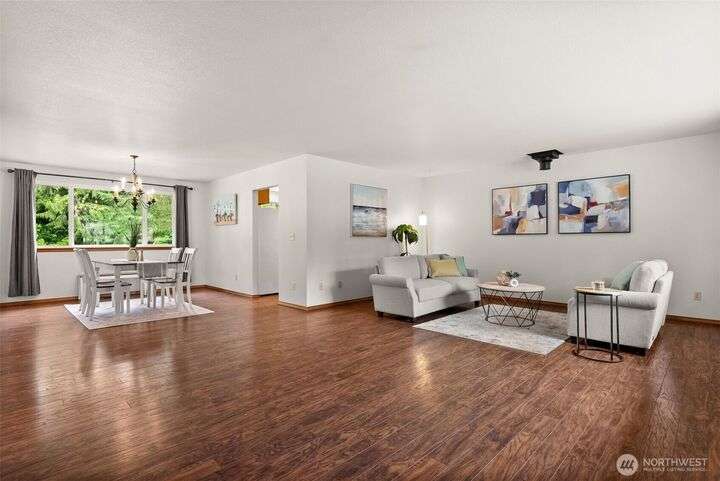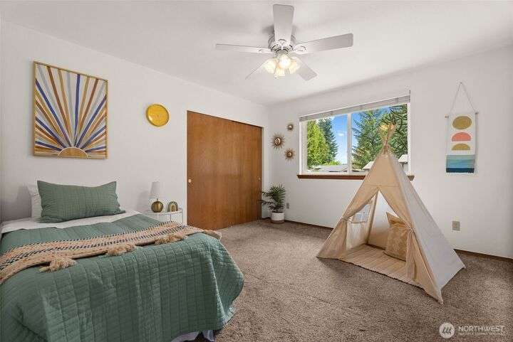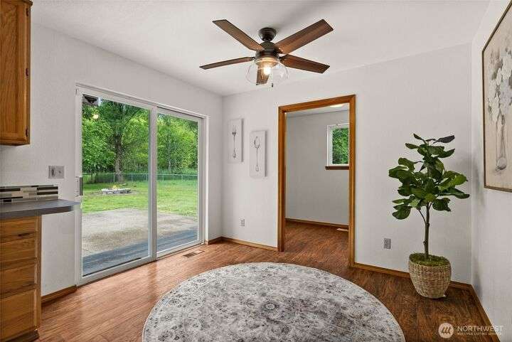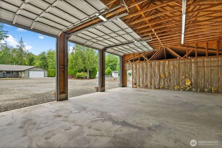 A RAMBLER & MASSIVE SHOP/GARAGE COMBO on just under 1 acre. Bring your hobby/work vehicles, RV/boat, & build a dream shop all hidden away on a very private dead-end road w/ NO HOA. Inside, enjoy a large natural gas kitchen w/ a huge walk-in pantry, a primary bedroom w/ en suite bath, dedicated laundry room/storage/half bath, room for a wood stove, solar tubes, & fresh paint. A brand-new roof, private artesian well, tankless water heater, backup generator w/ independent propane, vegetable garden & generous fenced backyard add to the home's self-sufficient appeal. W/ a MASSIVE 2400 SQ FT GARAGE w/ 100amps/propane, RV height doors, & shared walking access to Black Lake this property is built for a peaceful retreat, hobby haven, or home base.