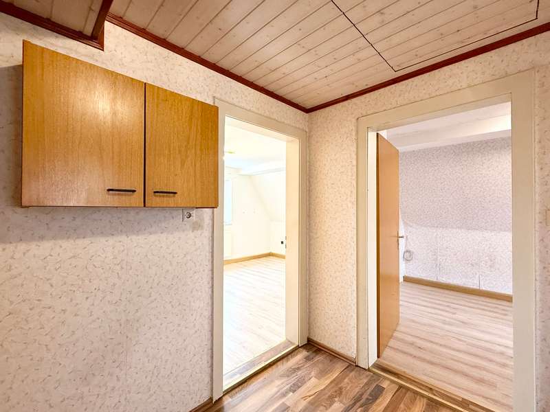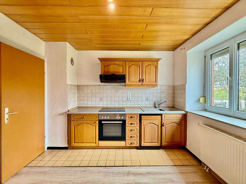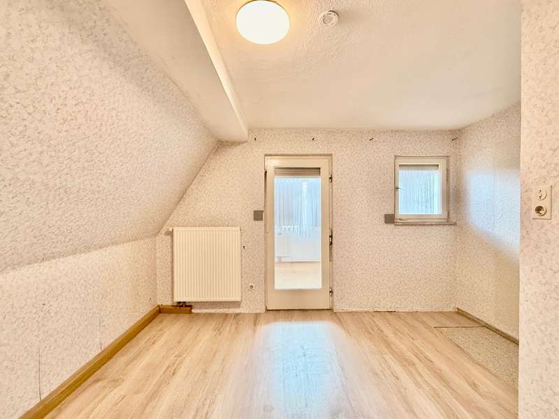 For sale is a detached house that was built around 1924. The property offers a living space of approx. 129.7 m² and is situated on a spacious plot of approx. 1,103 m². The house is currently vacant and is in need of renovation. It has four rooms, including 2 bedrooms, a bathroom and a practical storage room and a conservatory in the attic, which offers additional space and opens up a wide range of possible uses. The house is heated by an oil-fired central heating system. The double-glazed plastic windows ensure a certain level of energy efficiency, although modernization is necessary to meet current standards. The bathroom is equipped with a bathtub and a shower, offering comfort and flexibility for the residents. Outside parking spaces for up to three vehicles and a double garage are available on the property, providing a convenient solution to the parking situation. There is also a practical garden shed, which is ideal for storing garden tools or as a workshop. The size of the plot offers considerable potential for a new development. Clarification with the relevant authorities is required to evaluate the possibilities for future development. This could be of interest to investors or owner-occupiers who would like to exploit the existing building potential. In summary, this detached house impresses with its generous plot area and potential for future development. It represents an interesting opportunity for buyers who are willing to invest in a renovation or who see the value of the property for other building projects. A viewing is well worthwhile to take a closer look at the versatility and opportunities of this offer and to gain an impression of the design possibilities that the property brings with it.