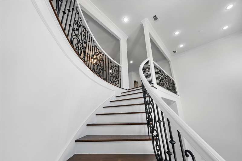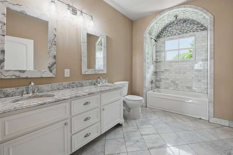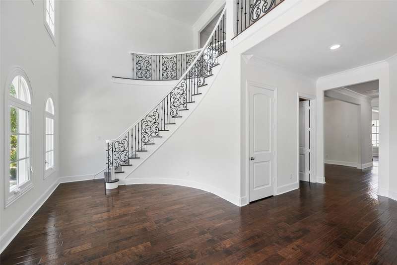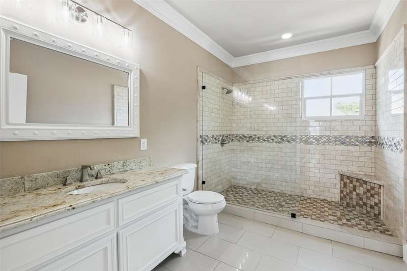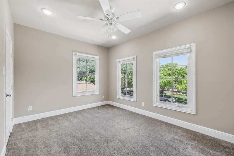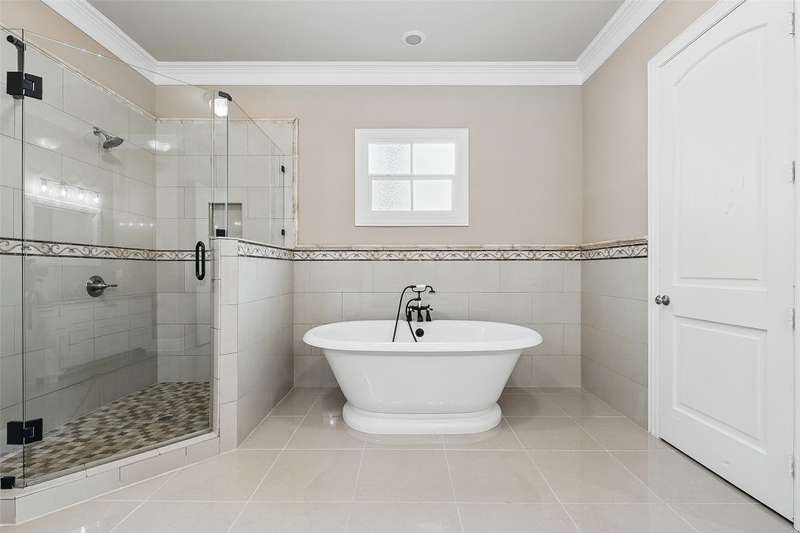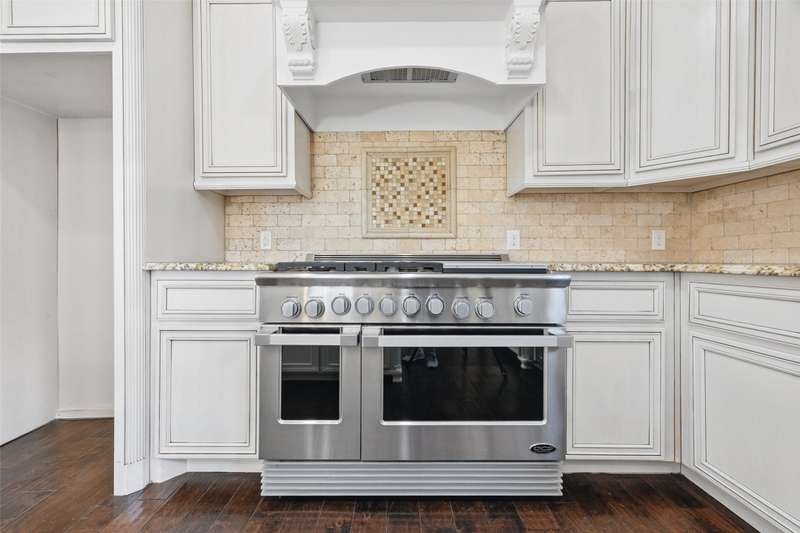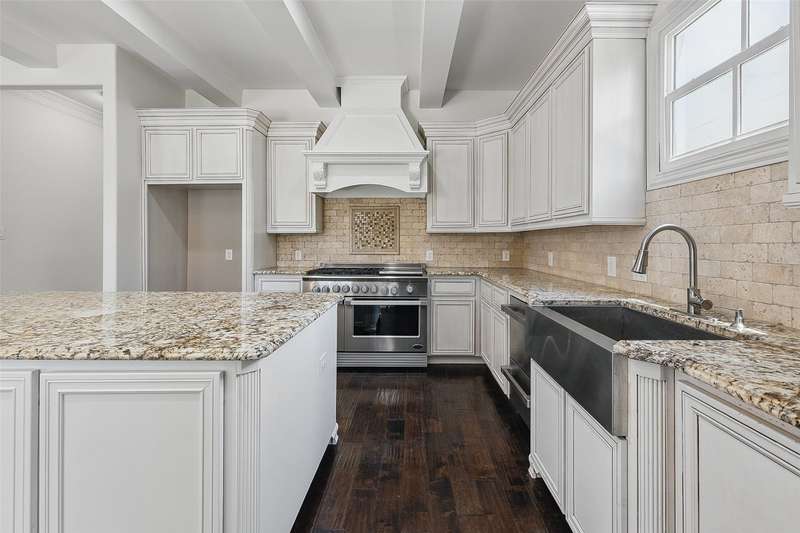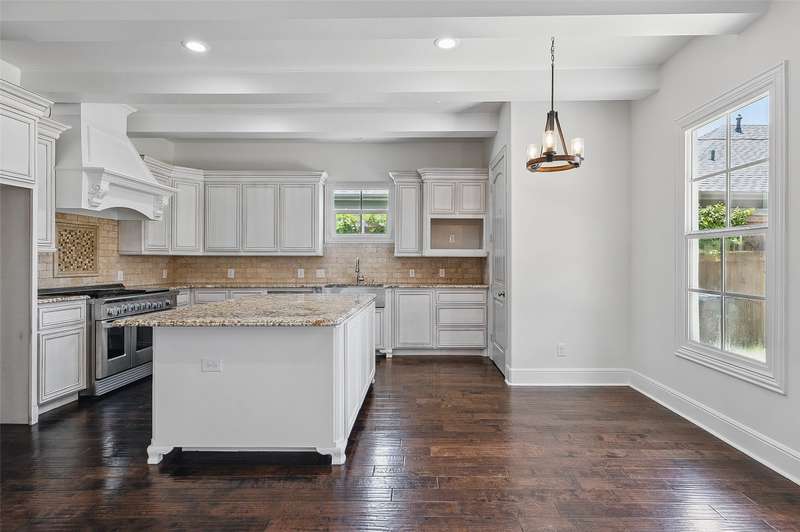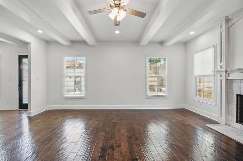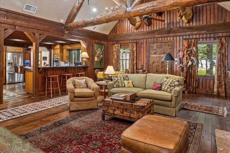 Conveniently located within walking distance of River Crest Country Club, this beautifully designed home features 5 bedrooms and 3.5 bathrooms, offering a layout ideal for both everyday living and entertaining. The downstairs primary suite includes a sitting area, fireplace, and en-suite bath with dual vanities, a soaking tub, separate shower, and generous walk-in closets with built-ins. Throughout the home, you'll find stunning hardwood floors, soaring ceilings with rustic wood beam accents, and decorative lighting. The spacious kitchen is complete with a large island, gas cooktop, farmhouse sink, custom cabinetry, and granite countertops. Upstairs, a large game room or den is accompanied by three additional bedrooms and two full baths, providing plenty of space for family or guests. Charming patio perfect for entertaining, featuring a built-in grill, sink, and outdoor fireplace. The property also includes a detached two-car garage and a front parking pad for additional convenience.