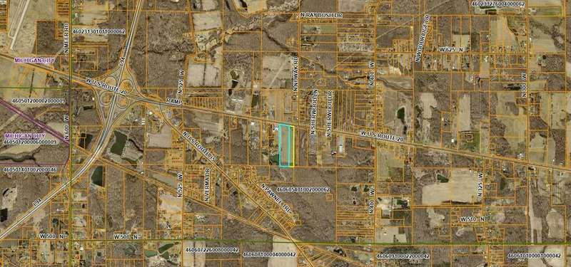 A golden opportunity on 16 Acres of zoned B2 Commercial Land in LaPorte County ! Boasting an ideal location near several booming cities like Michigan City, South Bend and minutes from the Michigan state line interconnected by US Hwy 20, I 94 and the Indiana Toll Road, a gateway that offers unbeatable accessibility and visibility for your enterprise with both locals and travelers. Alongside 480 feet of frontage and over 25,000 daily traffic counts, unlock the full potential of your business vision with general commercial zoning, providing flexibility for various developments. Whether you're dreaming of a retail center, office complex, hotel, or any other commercial project, this property is a blank canvas ready for your creative touch. With most of the land already cleared and sewer line tap-in credits, you can expedite your plans and minimize construction costs.Invest your future in Indiana's business-friendly environment.Your vision, our location - the perfect partnership for success!