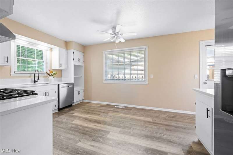 Updated Mid-Century Gem.MOVE IN READY! Current owner has spent thousands of dollars on updates! Well-maintained 3-bedroom, 1.5-bath ranch in the heart of Olmsted Colony in North Olmsted. One-floor living with no entry stairs provides easy entrance. Inside, you'll enjoy a spacious living room with 2024 carpet over LVP flooring. The oversized 2024 sliding door leads to a covered back patio overlooking a fully fenced backyard with shed. The updated eat-in kitchen features vintage white cabinetry with pull-outs for easy access. Quartz/quarzite countertops, stainless appliances, and LVP flooring. Sweet Pet Door! The bedrooms offer fresh paint, 2024 carpet over LVP, and updated fixtures. Bathrooms are fully refreshed with sleek finishes.The attached garage includes an updated door with remote and attic storage.Recent updates to note: windows (2024), roof (2020), gutters (2023), HVAC (2022), carpet (2024), storm doors incl. pet-friendly (2025), rear fencing (2024), gas meter (2024), fresh interior/exterior paint (2024), refinished tub and surround (2024).Close to shopping, dining, highways, and Metroparks. Don't wait - schedule your showing today while it's still available!Back on market at no fault of the seller.