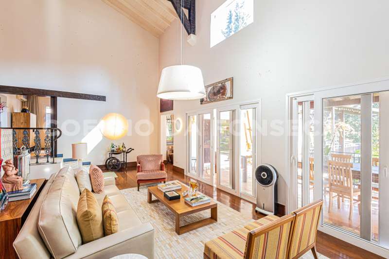 Linda casa com pé direito duplo, com enorme terraço com vista maravilhosa para o verde. Parece que você está numa fazenda. Terraço com churrasqueira. Uma das suítes foi transformada em um escritório. Suítes enormes, todas com vista para o verde. Sala com lareira, no mezzanino. Nos dormitórios, persianas elétricas, e ar-condicionado, assim como na sala de jantar. Casa muito especial!