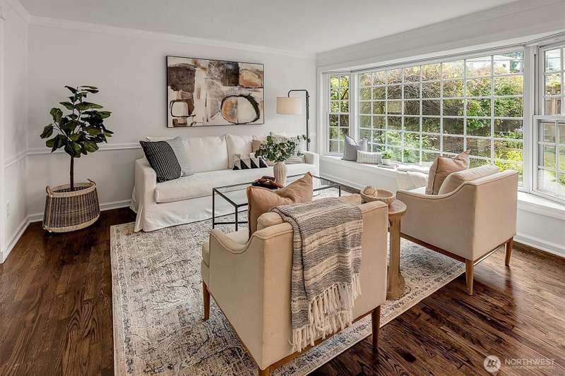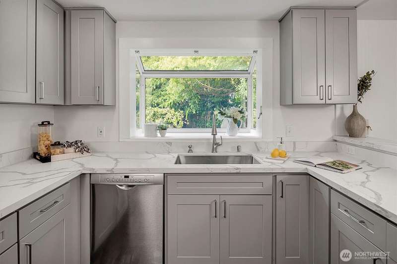 Brimming with charm, this updated cottage offers modern comforts while retaining its cherished character. The living & dining spaces feature a bay window w/a reading nook that overlooks the English-inspired garden. Fully updated kitchen features quartz countertops, new cabinetry and a breakfast nook leading to the spacious sunny deck & backyard oasis. Oversized bedrooms and updated bathroom w/double vanity & wall cabinetry. Great room w/cozy FP, 3/4 bath & den/office. Fresh paint, newer HVAC/fencing/updated windows. Only minutes to Costco, Downtown Kirkland/Redmond, The Village@Totem Lake. EZ access to all major tech hubs, excellent Lake WA SD. Surrounded by luxury homes, this home sits on a sprawling 1/4 acre flat lot w/endless potential!