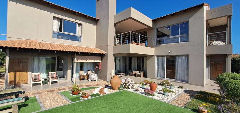 Elegant 4-Bedroom Home with Breathtaking Fairway Views Prime Location | Clubhouse Side | North-Facing | Entertainer’s Dream Tucked away in a quiet cul-de-sac on the highly sought-after Clubhouse side of Langebaan Country Estate, this beautifully designed north-facing double-storey home combines timeless charm, modern convenience and exceptional entertainment spaces. Overlooking the 2nd Tee and fairway, with greenbelts and birdlife on your doorstep, this property offers a serene lifestyle with all the benefits of estate living. Ground Floor Unit– Light, Space & Serenity Two spacious guest bedrooms with built-in cupboards, and a bathroom. This unit can function as a private 2-bedroom flat with its own entrance and patio – ideal for Airbnb or extended family. Main house Seamless open-plan living and dining areas with a feature fireplace Contemporary kitchen with gas hob, breakfast counter and separate scullery leading to a private courtyard Undercover braai patio with all-weather blinds overlooking the beautifully landscaped, irrigated garden and 2nd fairway Double automated garage with extra storage space and direct scullery access Upstairs – Elevated Views & Entertaining Striking staircase with a large picture window framing the greenbelt like living art Double-volume ceilings with exposed beams and abundant natural light Spacious lounge, dining area and kitchenette/coffee bar flowing onto verandas Built-in braai balcony with all-weather blinds – perfect for sunset entertaining Luxurious master suite with panoramic fairway views, built-in cupboards and a full en-suite bathroom Additional en-suite bedroom, ideal for children or guests Additional Features Golf cart space plus off-street parking for 3 vehicles Two 1 000 L water tanks with electric pump Fully irrigated, low-maintenance landscaped garden Alarm system and 24/7 manned estate security Recently maintained – completely move-in ready Lifestyle at Langebaan Country Estate Living here means more than just owning a home — it’s a lifestyle: 18-hole Gary Player Black Knight-designed golf course & driving range Clubhouse with restaurant, bar and panoramic views Gym, wellness spa & heated pool Tennis, padel, bowls and basketball courts Scenic walking, cycling and running trails Abundant birdlife and small wildlife roaming the fairways Close to Curro Private School, Laguna Mall, medical facilities and the Langebaan Lagoon Why You’ll Love It This home offers spacious family living, modern finishes and an unrivalled position in one of Langebaan’s most exclusive estates. Generous indoor and outdoor entertainment areas, spectacular fairway views and a tranquil setting make it a rare opportunity not to be missed. Call us today to arrange your private viewing — the photos simply don’t do justice to the lifestyle this home offers.