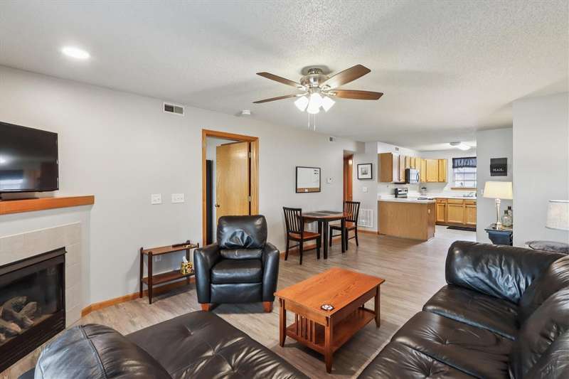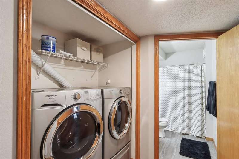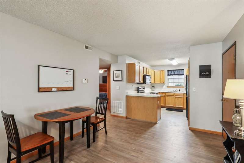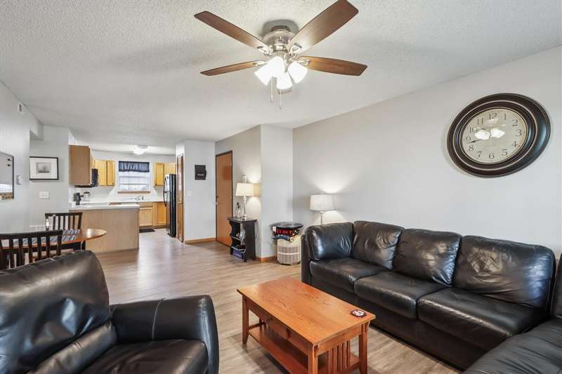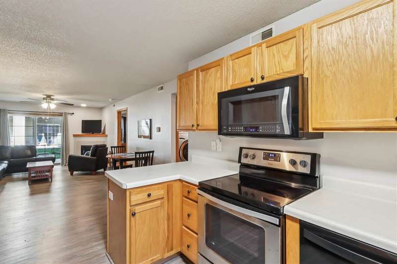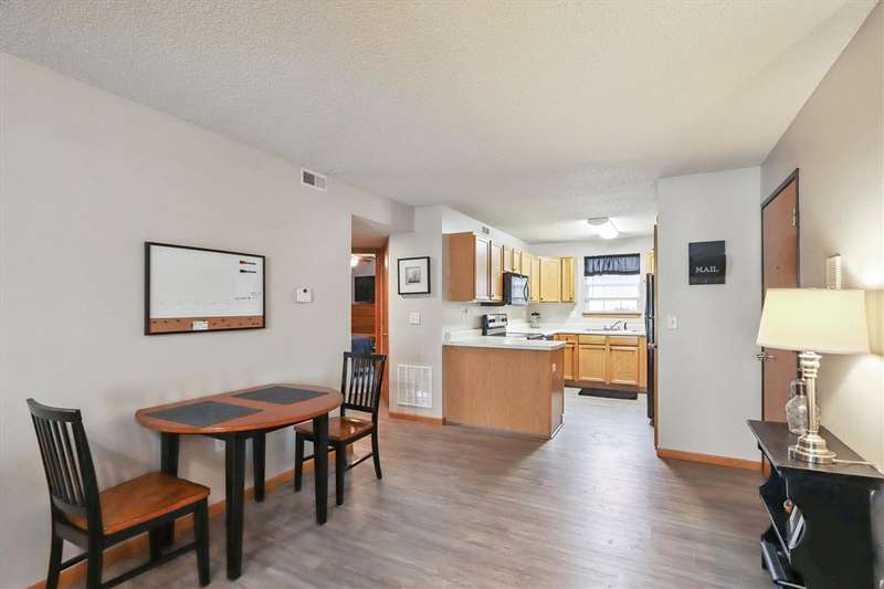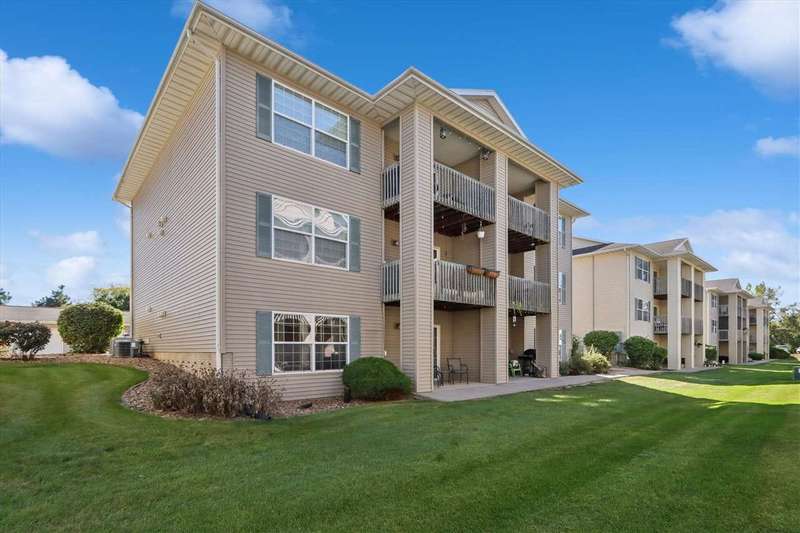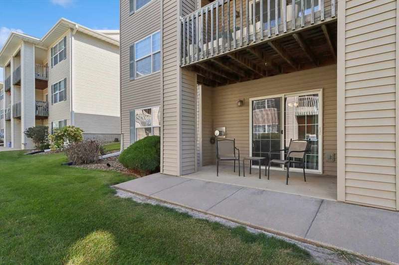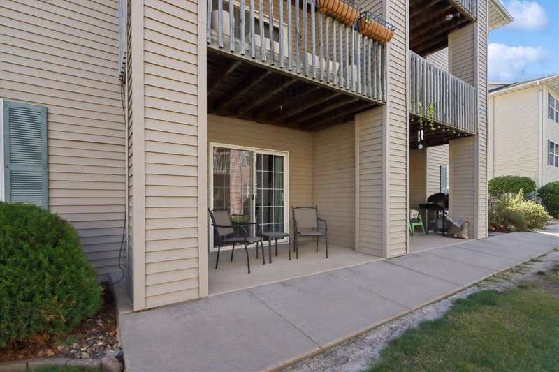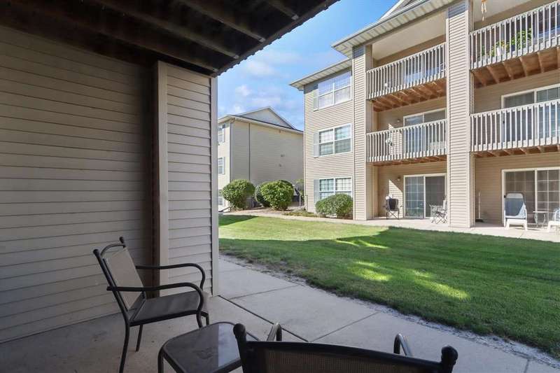 Great location close to restaurants, rec center, coffee shops, convenience store and so much more. Move-in ready! Newer flooring and paint throughout most of the condo. The living room, kitchen and dining area is open and spacious. There's a patio off the living room with a view of the courtyard perfect for outdoor relaxing. This two bedroom condo has a nice set-up with the bedrooms and bathrooms being separated by the laundry room and offers privacy. Great for company or a roommate. A detached garage for both parking and storage and there's one additional assigned parking space.