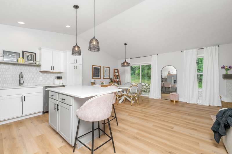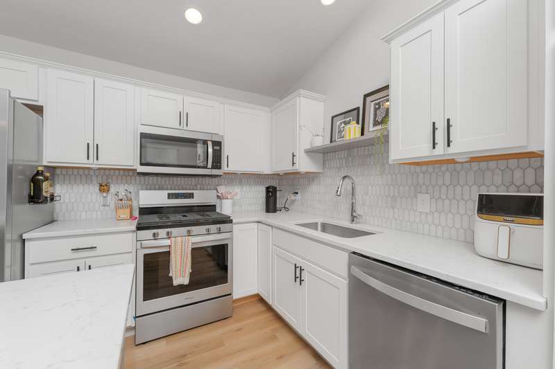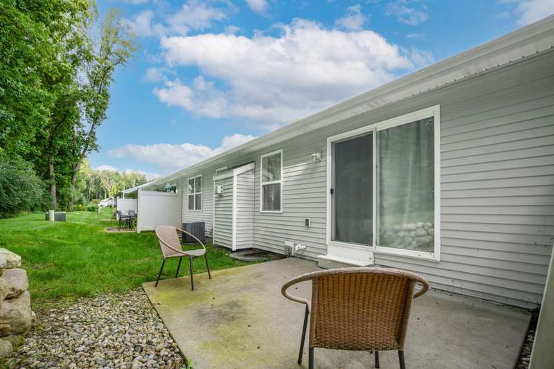 Better than new this gently lived in 3 bedroom 3 full bath condo is ready to go! Move right in and enjoy the space w/ beautiful cabinetry, FP and open vaulted living room, kitchen and eating area. All living can be done on the main floor including the laundry area with a sliding barn door. Great size primary suite w/ large closet with custom custom built in's, and full bath. As a bonus is the 2nd bedroom on this floor that can be a transitional space (currently being used as an office/den), or guest room w/ a wall of built in bookcases which includes the convenience of a pull down murphy bed. The brand new lower level offers plenty of space for everyone an everything. Large family room, bedroom, full bath and plenty of storage. This is a great location backing up to the woods with that small community feel, and lower assoc. fees. No need to worry about building, New home feel, and ready to go! Per seller there is also a 10 year transferable furnace warranty.