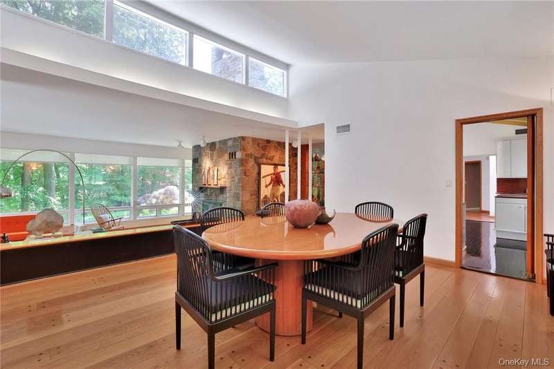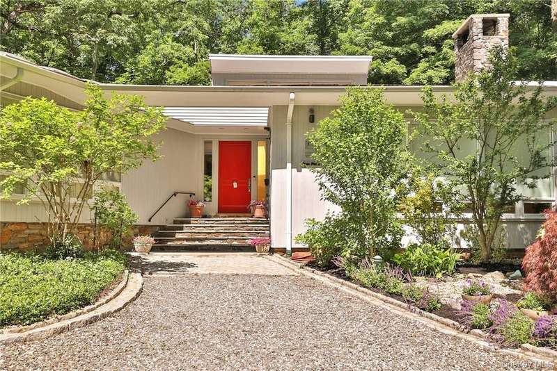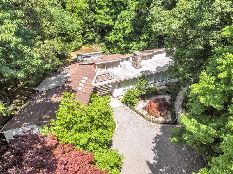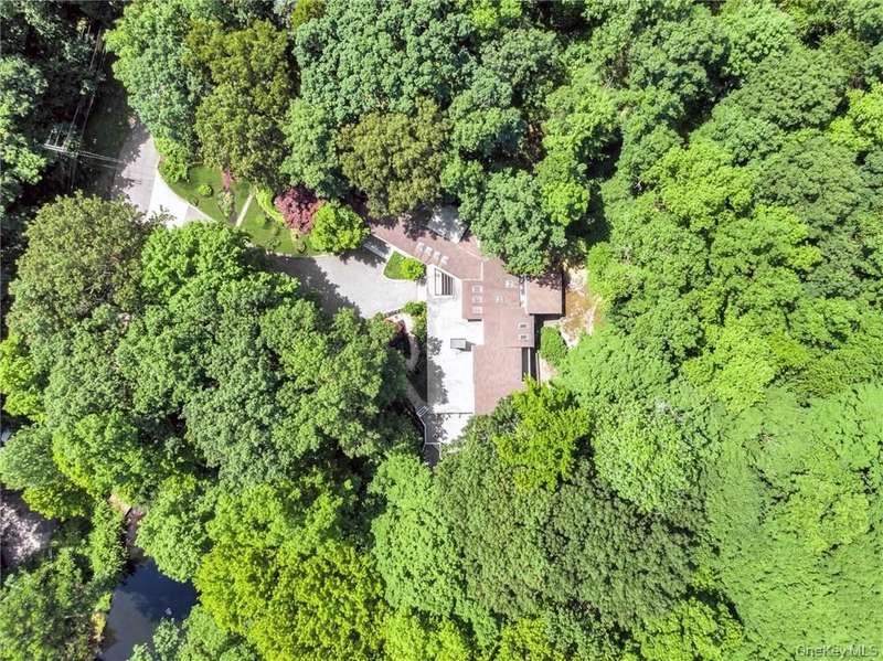 Discover the perfect blend of modern elegance and serene seclusion in this stunning contemporary ranch-style home. Nestled on 3.6 private acres, this architectural gem offers a peaceful retreat surrounded by nature. Oversized windows flood the interior with an abundance of natural light, highlighting the seamless indoor-outdoor flow. Every detail of this home has been thoughtfully designed to provide both comfort and sophistication. Whether you're entertaining or unwinding, this property promises an unparalleled lifestyle of privacy and tranquility. Step into the sunken living room, a captivating space anchored by a dramatic floor-to-ceiling stone fireplace, setting the stage for cozy gatherings and tranquil moments. The family room, complete with a library, offers a perfect retreat for literary enthusiasts. For more formal affairs, the dining room provides an elegant backdrop for entertaining guests, and the eat-in kitchen with gleaming granite countertops and stainless steel appliances. Venture to the game room, a recreational haven overlooking a sprawling two-tier deck that affords breathtaking views of your private pond, ideal for al fresco dining and relaxation. The primary bedroom offers a serene escape, featuring an en suite bathroom for your comfort and convenience. Additionally, there is a private home office, perfect for work or creative pursuits. Lower level offers a bonus room with a full bathroom, a luxurious sauna, and ample space to unwind or host guests. This multi-purpose space is further enhanced by an adjoining laundry room, utilities, and a fully equipped gym, allowing for an active and indulgent lifestyle under one roof. Not only is this property a peaceful haven, but it also offers a practical advantage. Located just a 30-minute commute from the bustling heart of New York City, this residence provides an exceptional blend of tranquility and urban accessibility. Moreover, the land abuts the sprawling 700-acre Saxon Woods Park, inviting you to explore and enjoy the beauty of the outdoors right at your doorstep. A rare opportunity to own a truly unique gem!