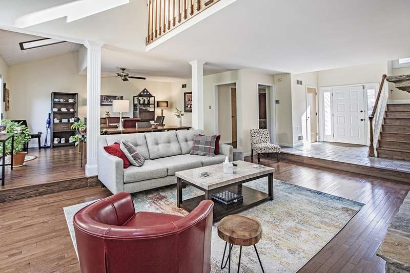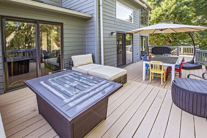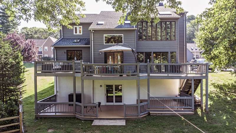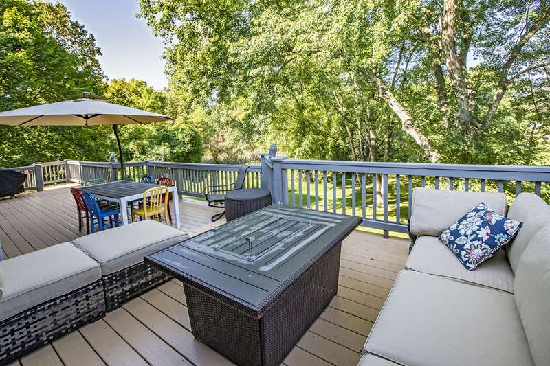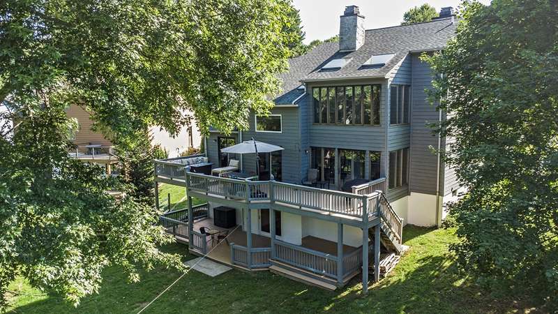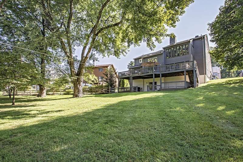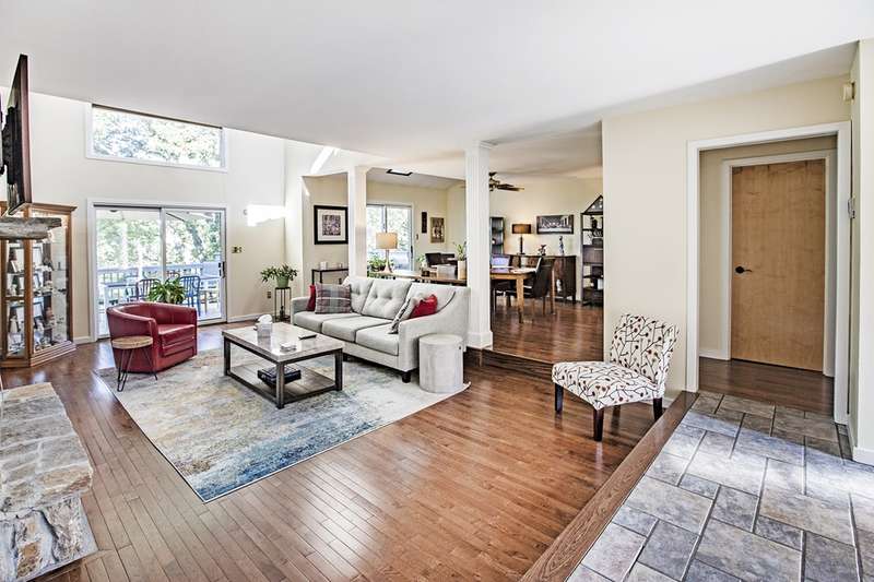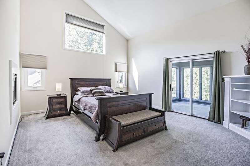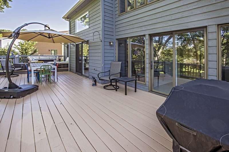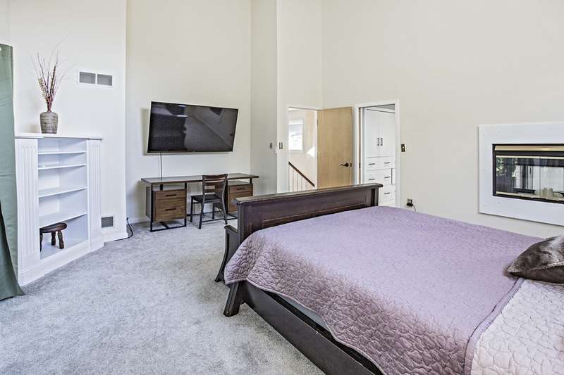 This stunning stone and cedar contemporary home is a true gem located in a premier cul-de-sac location backing to open space. With 3 bedrooms, 3.1 bathrooms, and a 2 car garage, this home offers a spacious and flowing floorplan with soaring ceilings throughout. Upon entering the two-story foyer, you are greeted by a sunken living room that is open to the dining room, perfect for entertaining. The huge eat-in kitchen features a center island and opens to a two-story vestibule that leads to the multi-tiered deck, providing beautiful views of the surrounding greenery. The main floor also includes a laundry room and powder room, as well as a bedroom and full bathroom. Upstairs, a loft/office space separates two primary suites, one of which includes a fireplace, walk-in closet, built-in dressers, and a luxurious spa bath with skylight, fireplace, sitting area, and dual sinks. The walk-out lower level boasts 9' ceilings and features a spacious family room, billiards space, gym area, and plenty of storage. This stylish home backs to trees and open space, providing privacy and serenity. Don't miss the opportunity to own this impressive home in a coveted location. Contact us today to schedule a tour!