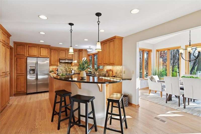 Tucked at the end of a quiet cul-de-sac in Wayzata's Ferndale North neighborhood, this beautiful 4-bedroom, 4-bath home offers peaceful living with a view. Overlooking scenic wetlands, the setting invites you to unwind while enjoying visits from local wildlife right from your light-filled, heated-floor four-season sunroom just off the kitchen. Thoughtfully updated, this home features new carpet, refinished hardwood floors, refreshed lower-level millwork and doors, and fresh paint throughout most of the interior. A bonus is an unfinished area that could become a 5th bedroom in the lower level. Additional upgrades include a new garage floor and apron, plus a long-lasting 50-year transferable roof warranty for peace of mind. Perfectly situated near Wayzata's charming shops, restaurants, and Lake Minnetonka, as well as the Luce Line hiking and biking trail, this home offers the best of both convenience and natural beauty. A wonderful combination of comfort, nature, and care-you'll feel right at home the moment you arrive.