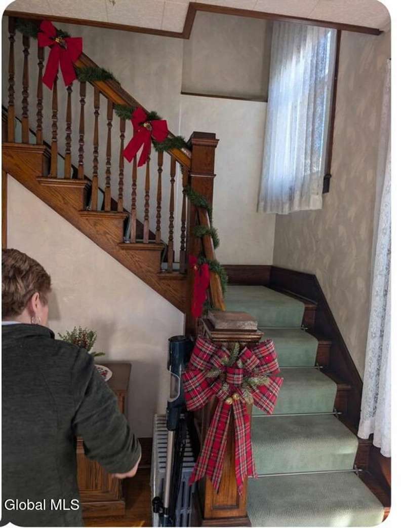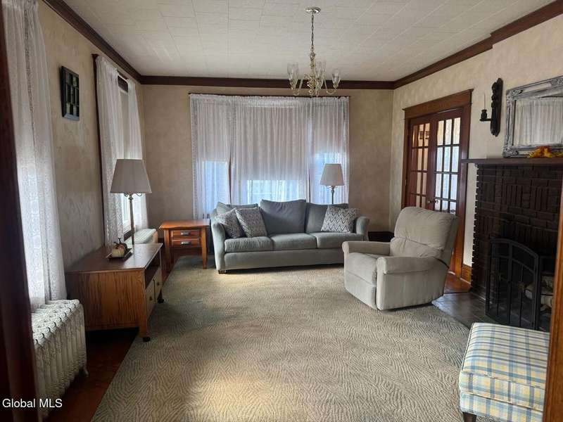 Beautiful 4-bedroom, 2 bath Side-hall Colonial featuring a welcoming foyer, spacious living room with fireplace, and a large formal dining room - perfect for entertaining. Natural woodwork throughout. The eat-in kitchen offers plenty of cabinets, appliances included, a breakfast nook and a convenient computer/work area. Enjoy relaxing on the open front porch. Exterior highlights include vinyl siding, a 2-car garage with electric door openers and a nicely sized back yard.