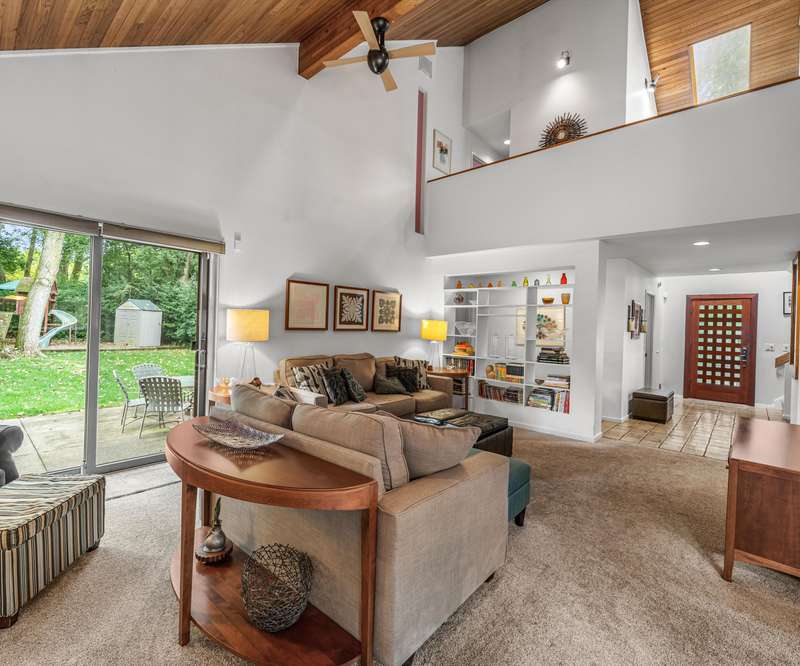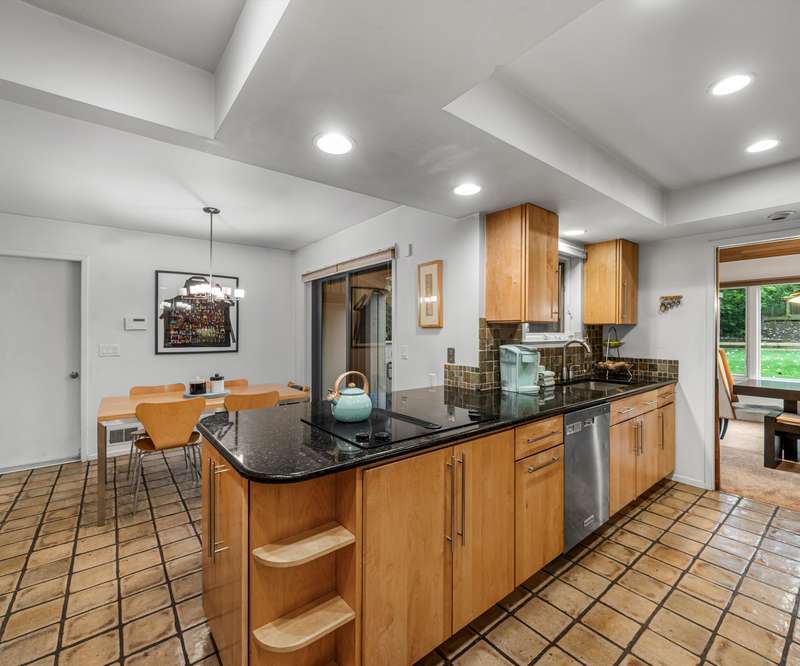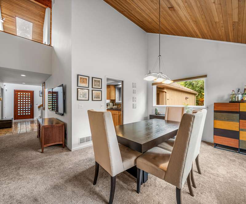 This impressive 2 Story Contemporary in the established Earhart neighborhood is a high-energy breath of fresh air! Its open floor plan is ideal for the active household with expansive living and entertaining areas. Underneath the vaulted and wood-paneled ceiling is the living room with fireplace and adjacent dining area. The updated kitchen is nicely appointed with granite, stainless and custom cabinetry. The large Primary retreat features a custom walk-in closet and perfectly appointed full bath with dual vanities and soaking tub. Upstairs are two additional bedrooms, an updated hallway bath and an office/bonus area with sliding door to a rooftop deck! The lower level is finished with a recreation room with bar area, an additional bedroom, full bath and sauna! Outside are decks and patios for entertaining and relaxing in the private backyard! Walk to King School, Earhart Park, and Windemere Park! Home Energy Score of 1. Download report at stream.a2gov.org.