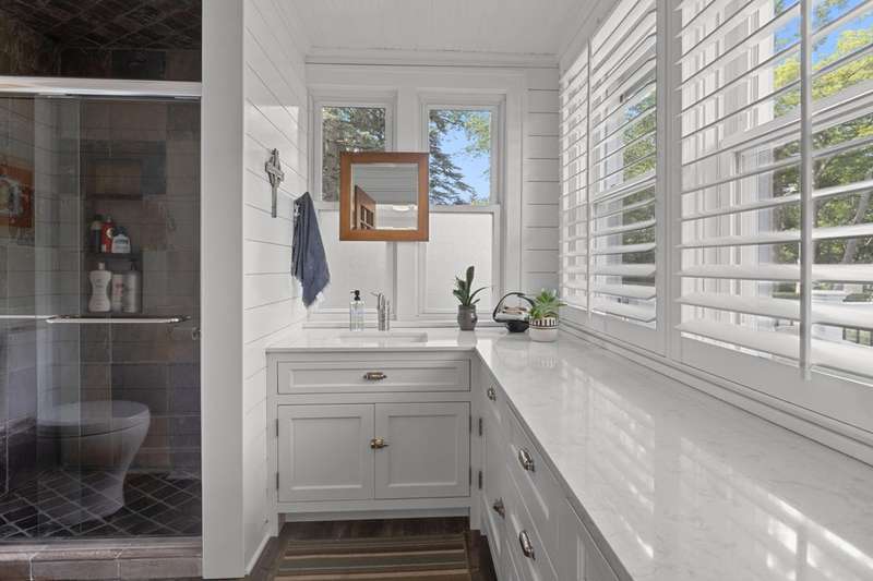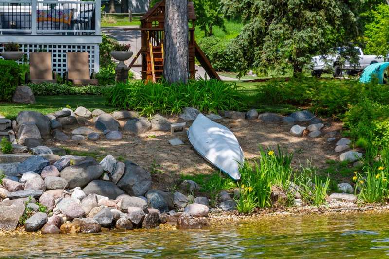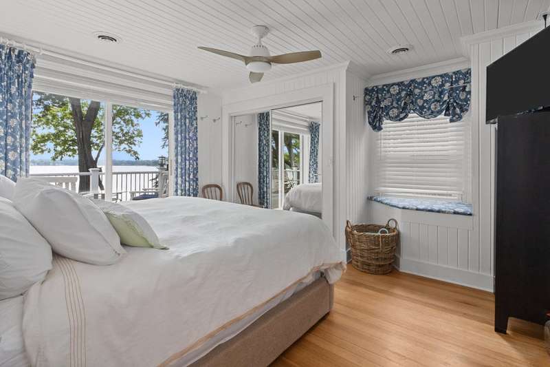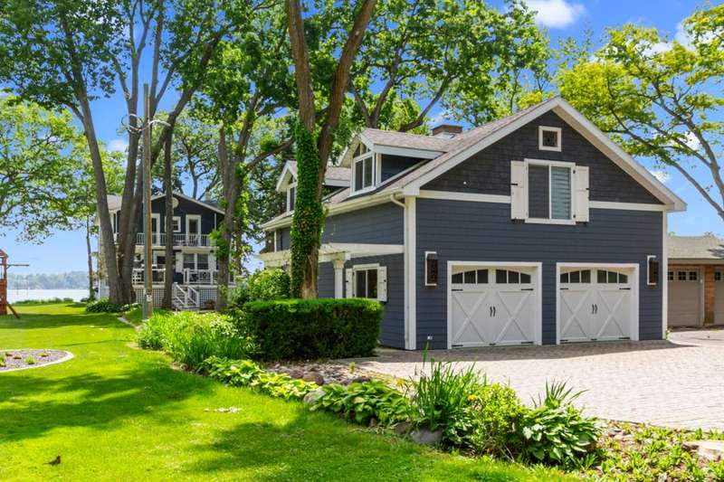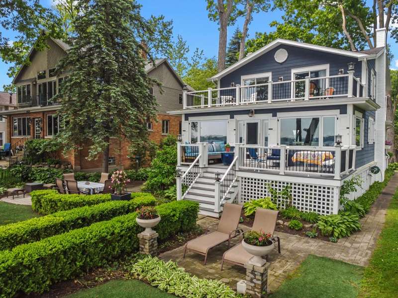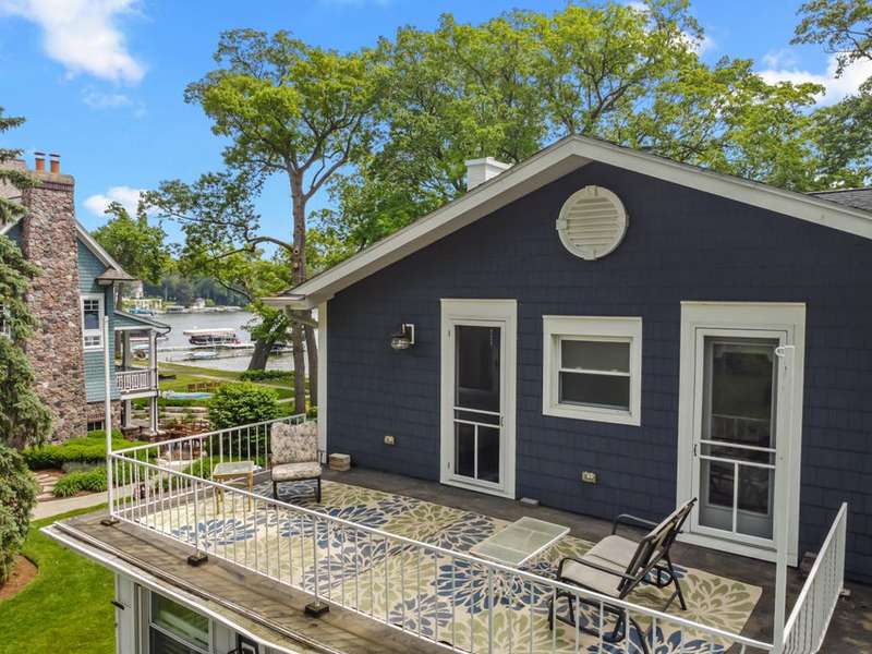 Stunning, thoughtfully curated home on 50 'of level frontage on Powers Lake. From the moment you arrive, it's clear this is a truly special retreat. Main home with 4 spacious bedrooms and 3 full baths. Charming guest house offering 2 bedrooms and a full bath. Enjoy sweeping lake views from multiple decks and patios, ideal for entertaining or simply relaxing. The gourmet kitchen features high-end appliances, marble countertops, and uninterrupted views of the water. The open-concept layout allows natural light to fill the living spaces, creating an inviting and serene atmosphere. A large private pier, sandy beach area, and stone seawall complete the exceptional lakefront experience. Plus, no-maintenance turf grass ensures you spend more time enjoying the outdoors and less time on upkeep.