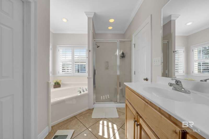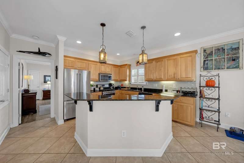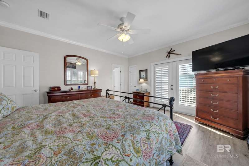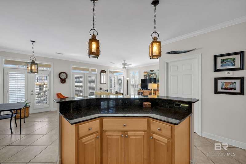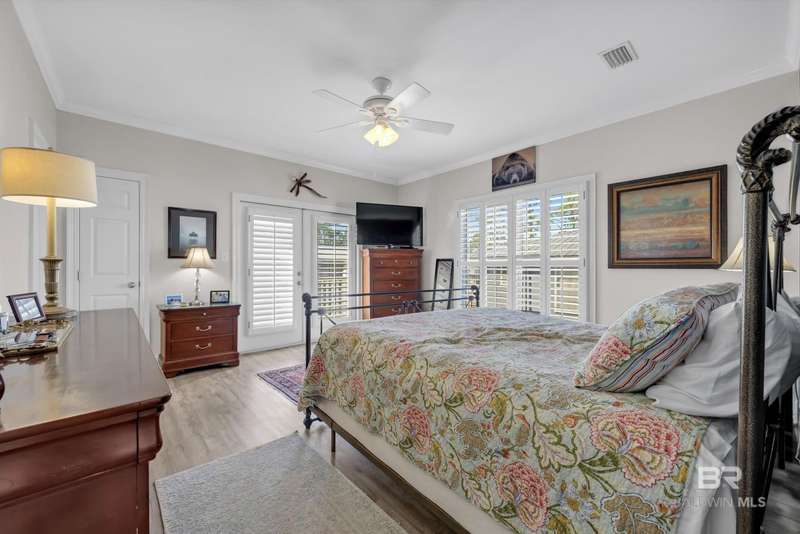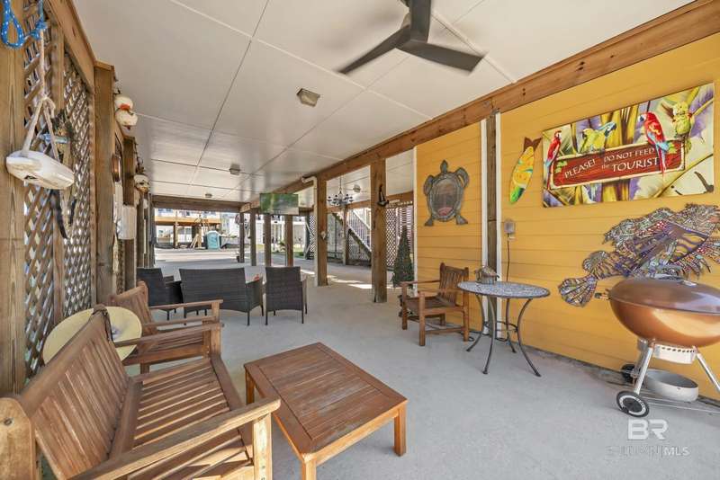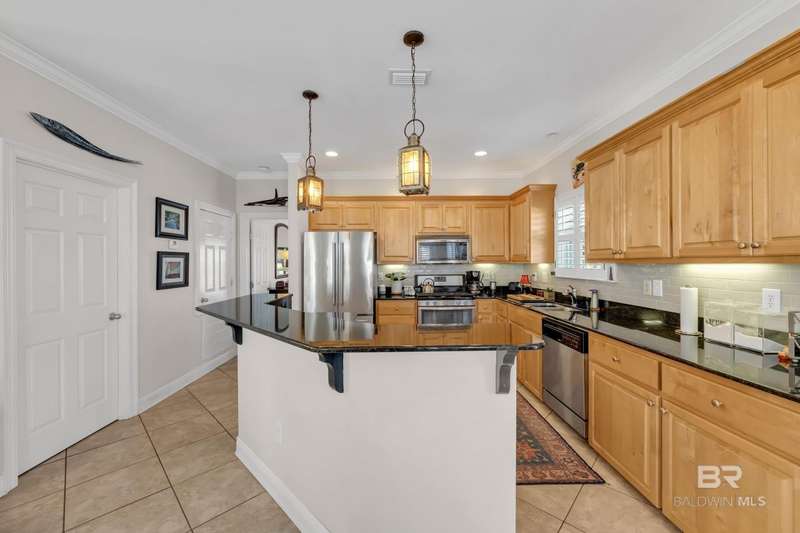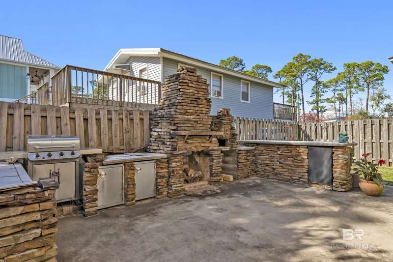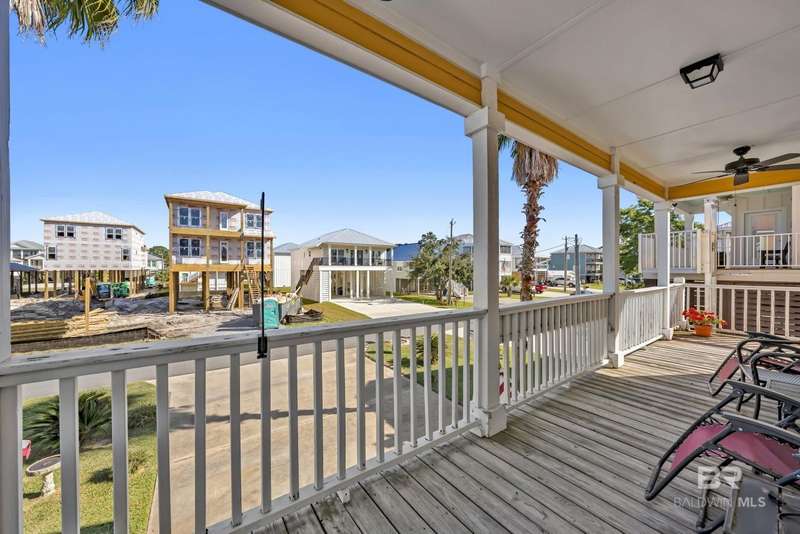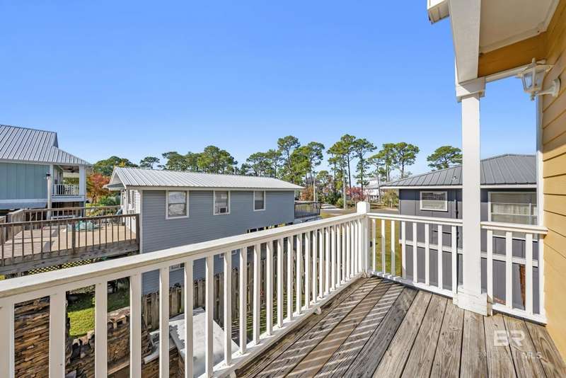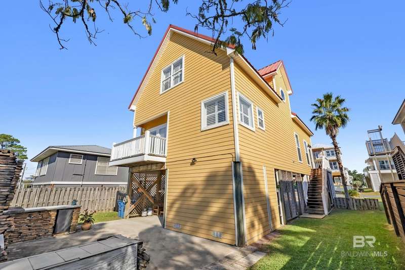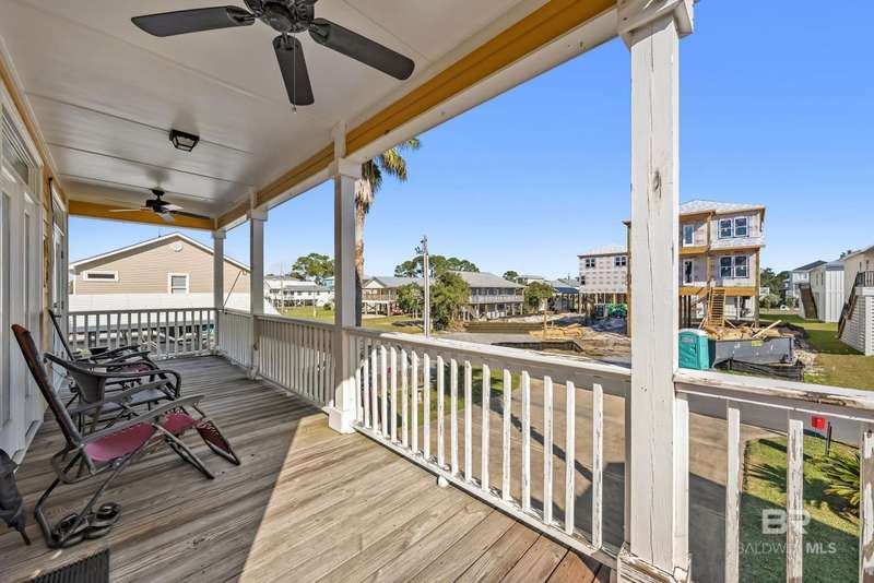 Want to be in the Heart of the Bear Point neighborhood? Well... this is it with water views of Arnica Bay. Primary bedroom includes walk-in closet, double vanities, jetted garden tub & separate shower. Gourmet kitchen with granite and seated bar area with nautical pendant lighting. Plantation shutters thru-out. The second level has 2 bedrooms with double closets. Plenty of storage on each side of house for holiday decorations etc. Crown molding thru-out. Enjoy the breeze & view of Arnica Bay from extra-long & wide balcony to people watch as the cyclists, walkers & golf cart riders pass by. Join the Bear Point Civic Assoc if you like. Under the house is ample parking. Storage room with refrigerator will remain. All outdoor signage under house will not remain. Concrete patio area in the back with outdoor kitchen, mini sink & refrigerator, fireplace & gas grill. Not warranted. Buyer to verify all information during due diligence. Best Buy in Bear Point for the square footage!!!!!!!!