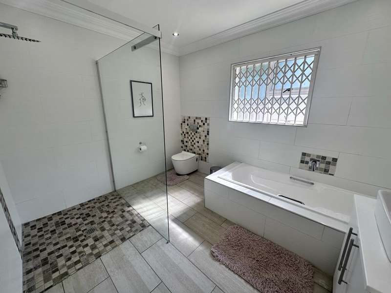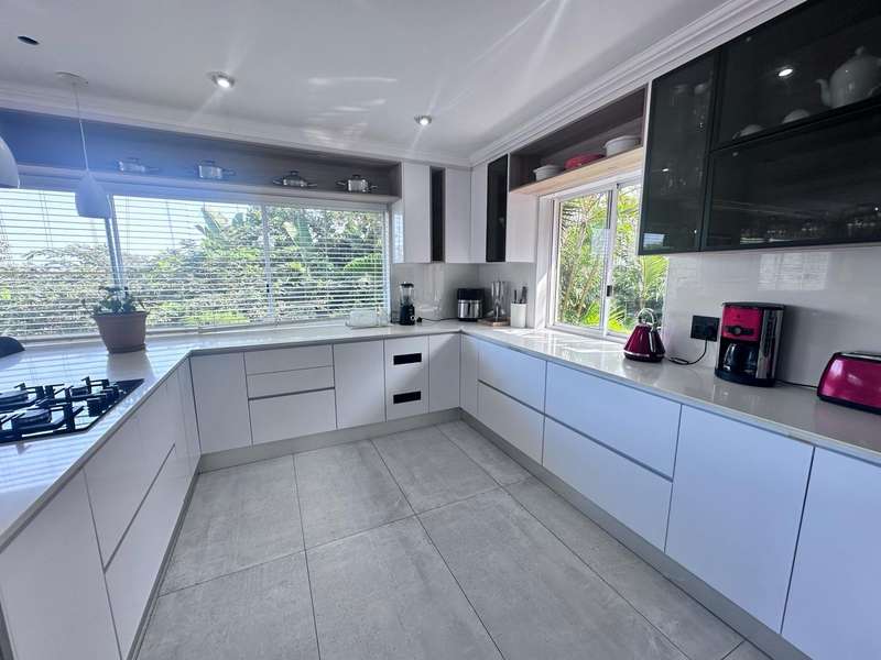 Welcome to an exquisite 3-bedroom, 3-bathroom home in the secure and highly sought-after Milkwood complex. Recently renovated, this residence combines modern elegance with breathtaking sea views and abundant natural light. The main bedroom features an en-suite bathroom, offering a private sanctuary of comfort. All bedrooms are spacious and filled with natural light, creating a warm and inviting atmosphere. The kitchen is designed for convenience and style, complete with a separate scullery. Additional features include a large double garage and a versatile room that can be used as a gym or study, catering to your lifestyle needs. The property also boasts a fully equipped downstairs apartment with its own lounge and kitchen area, perfect for guests or extended family. The expansive balcony is ideal for enjoying the stunning sea views and hosting gatherings. The complex offers a communal pool area, providing a perfect spot for relaxation and leisure. Experience secure, luxurious living in this beautifully renovated home in the Milkwood complex, where every detail has been thoughtfully crafted for your comfort and enjoyment.