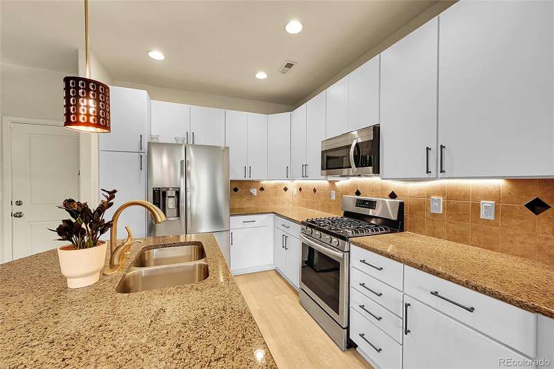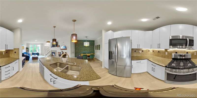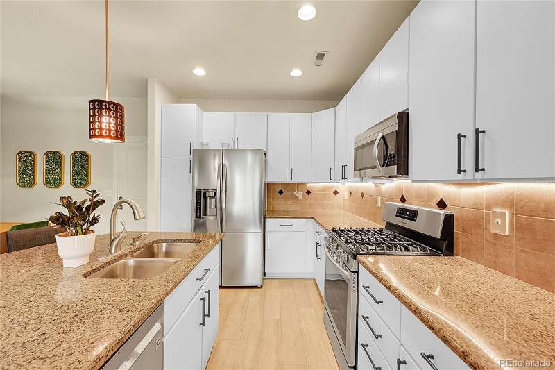 This beautifully maintained townhome is in the sought-after Villas at Highland Park. Offering 2 bedrooms, 2.5 bathrooms, and 1,577 square feet, this home combines thoughtful design with modern convenience in a peaceful setting. Step inside to soaring 10-foot ceilings on the main level, creating a bright and open atmosphere. The living room centers around a cozy fireplace, flowing seamlessly into the dining area and kitchen - perfect for entertaining or relaxed evenings at home. The kitchen features granite countertops, a spacious island, and ample cabinetry, making it as functional as it is stylish. Upstairs, you'll find two generously sized bedrooms, each with walk-in closets, and the convenience of in-unit laundry. The primary suite is a true retreat, highlighted by a bathroom with dual sinks and plenty of storage. Enjoy tranquil views year-round with this home's unique setting overlooking the greenbelt with ponds and streams. Well-maintained and move-in ready, it offers both comfort and peace of mind. Located in the desirable Cherry Creek School District, the community also places you close to Park Meadows Mall, dining, parks, and major routes - ensuring easy access to everything Centennial and the Denver metro have to offer. Don't miss this rare opportunity to own a stylish, well-cared-for townhome in a prime location!