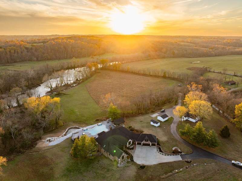 Unrivaled. Unmatched. Unforgettable.This is not just another luxury home--it's your once-in-a-lifetime opportunity to own one of the region's most exclusive and extraordinary estates. Tucked behind a private gated entrance on 28 breathtaking acres with over 1,000 feet of pristine James River frontage, this rare property offers a striking blend of high-end living, natural beauty, and resort-style amenities seldom found in the Ozarks. Expertly designed and crafted with the finest materials and attention to detail, the 5-bedroom, 7-bath main residence is a masterclass in modern elegance. From expansive living spaces and curated finishes to seamless indoor-outdoor flow built for entertaining, every element has been thoughtfully considered. Step outside and discover what truly sets this property apart--rolling pastures, tranquil riverbanks perfect for fishing or floating, a resort-style pool that rivals any five-star destination, and endless space to gather, relax, and enjoy life in total privacy. Whether you're hosting a sunset dinner on the terrace, gathering around the firepit, or launching kayaks into the water, this home was made for exceptional living. The estate also features a 2-bedroom guest house or caretaker's quarters, a spacious barn/workshop with endless potential, a detached garage for hobbies or toys, mature fruit trees, fenced areas, and open land ideal for horses or recreation. Located in the award-winning Nixa School District and just minutes from Springfield, it offers both privacy and convenience. A true entertainer's dream and an outdoor lover's paradise--this is the ultimate Ozarks lifestyle property. There is simply nothing else like it.
