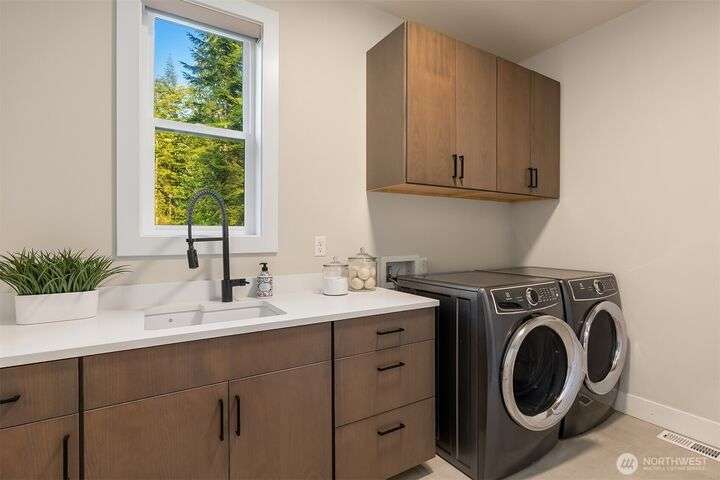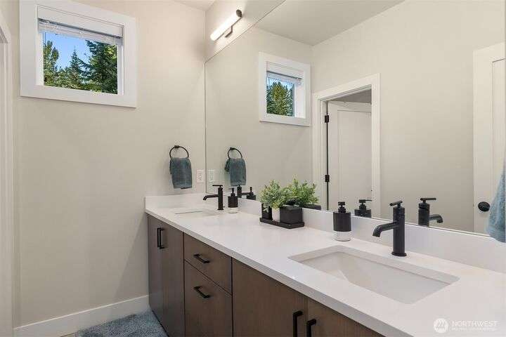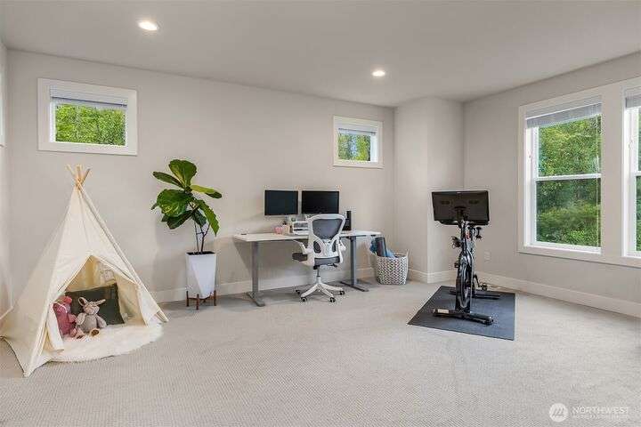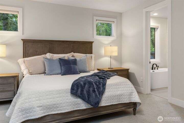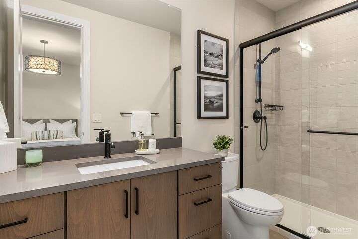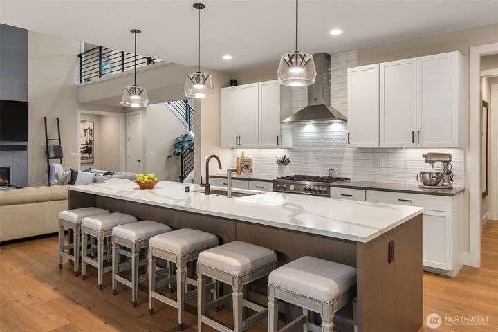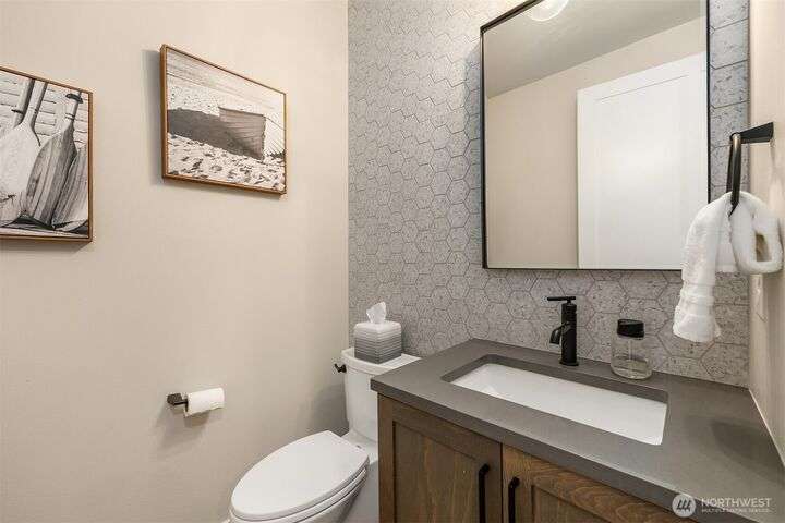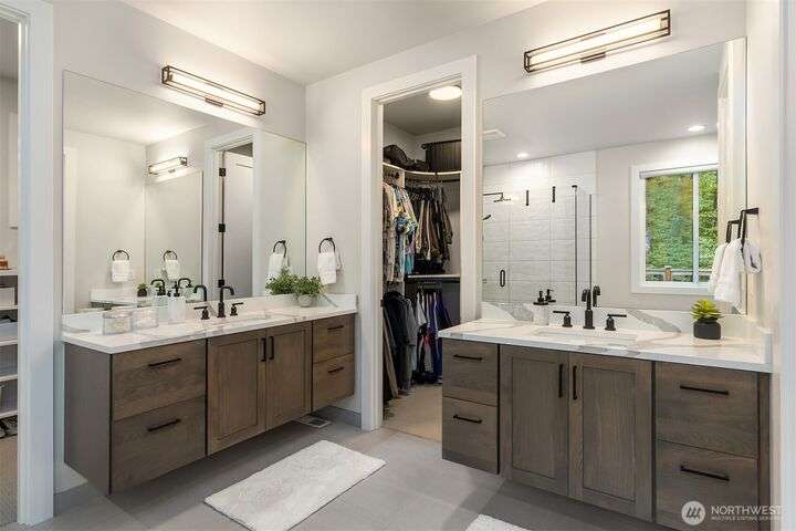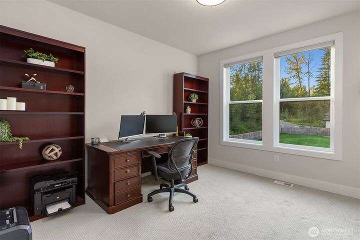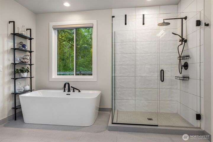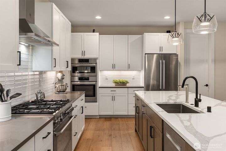 Tucked away in a private enclave, this stunning retreat sits on 1.25 acres—offering room to dream. Built just two years ago with high-end finishes, gorgeous hardwoods, and top-tier appliances, every detail is stunning. Thoughtful floorplan features an impressive great room with a floor to ceiling fireplace, spacious main-floor primary suite with a 5-piece spa bath and a junior suite, plus three additional bedrooms and a large bonus room upstairs. Soaring ceilings, designer lighting, and a gourmet kitchen create an open, airy vibe. Great room flows effortlessly out to the covered patio with fireplace—perfect for year-round enjoyment. With total privacy, level fenced yard, and space to relax, this home offers the best of Northwest living.